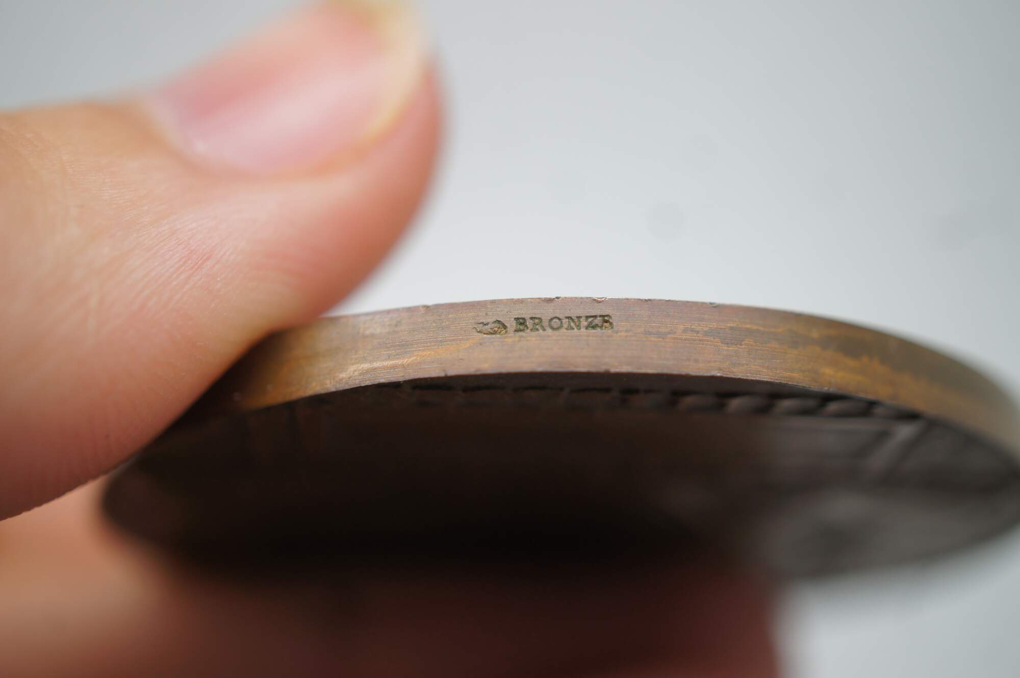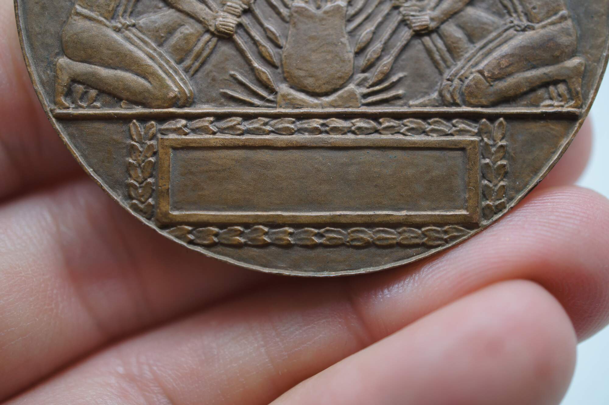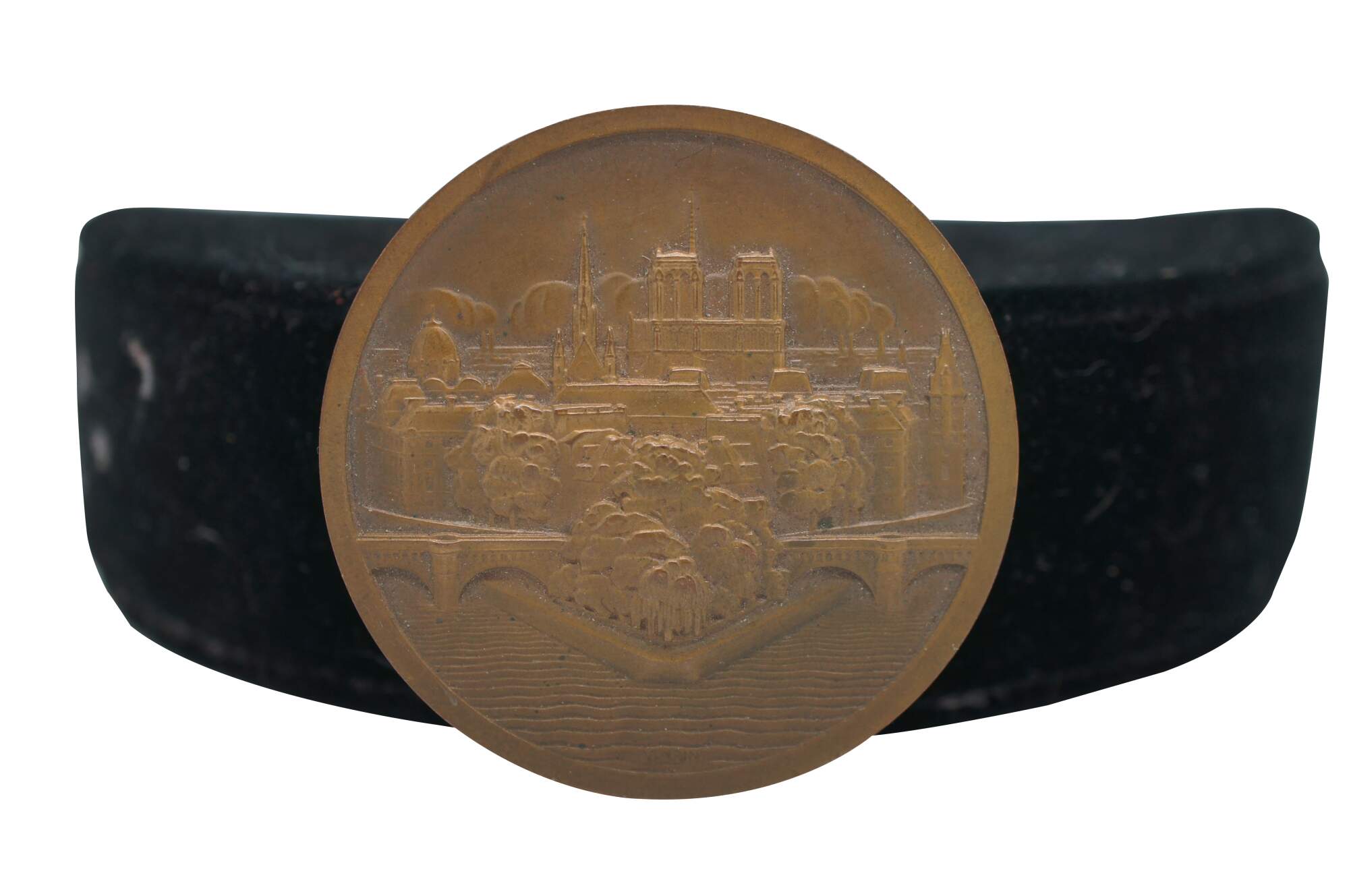 Mid to early 20th century Pierre Turin bronze medal featuring the Societe Francaise de Metallurgie and the city of Paris landscape including Notre Dame