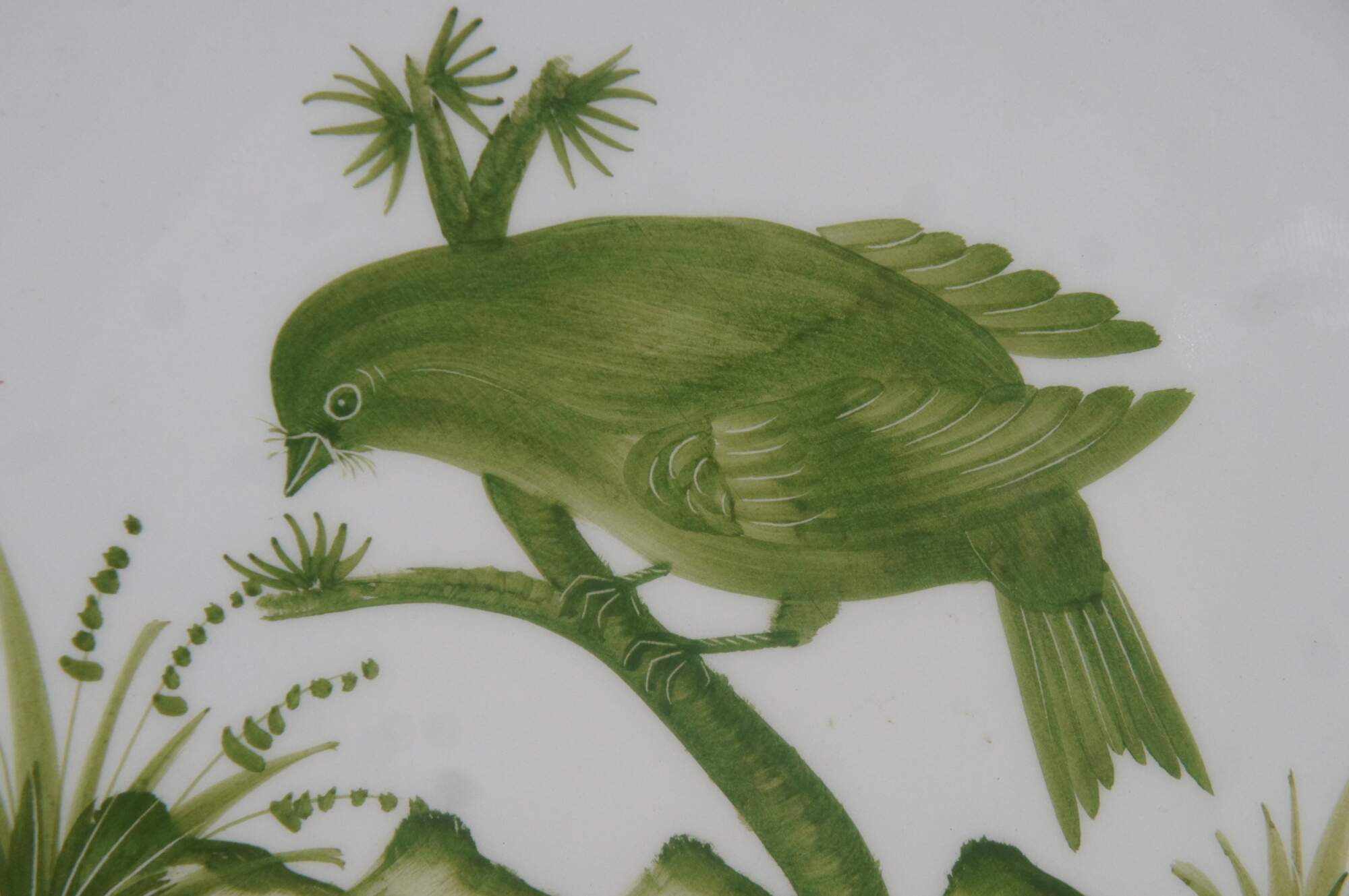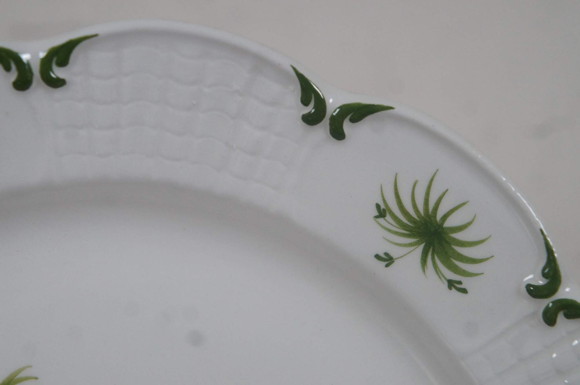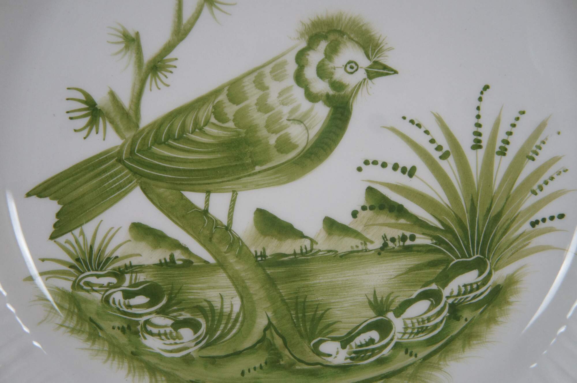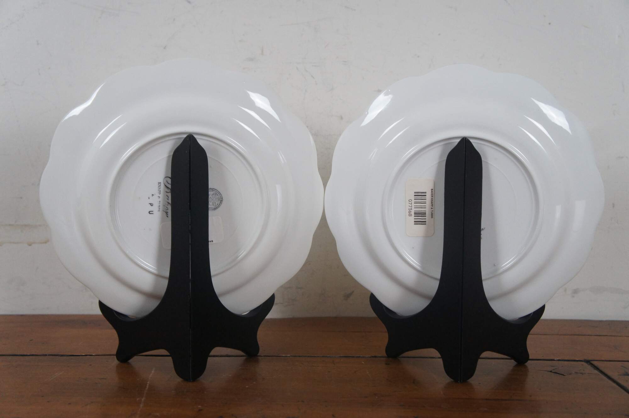 Pair of Vintage Baker Knapp & Tubbs Italian porcelain plates on stands. Each is Hand Painted in green over ivory. Made by Este porcelain for Baker.