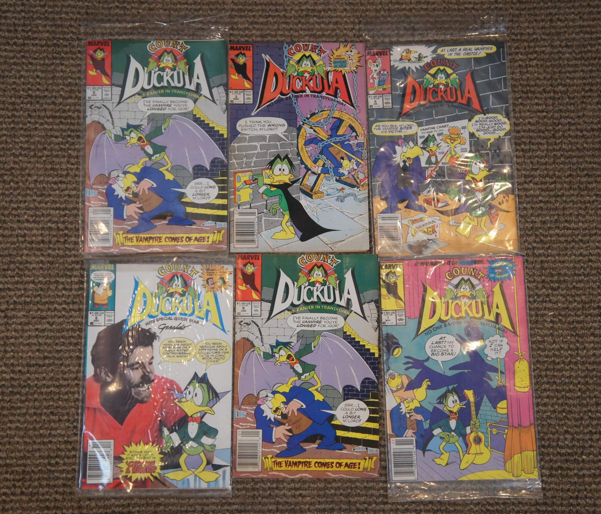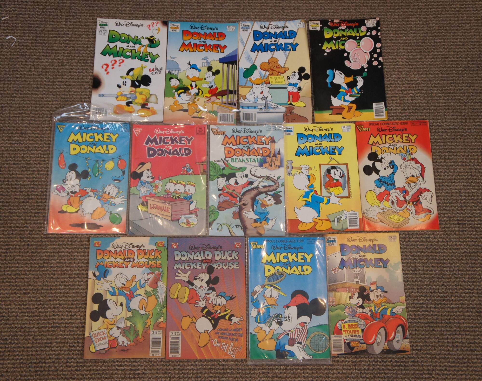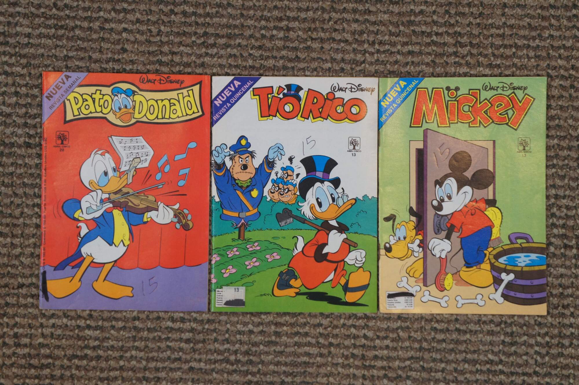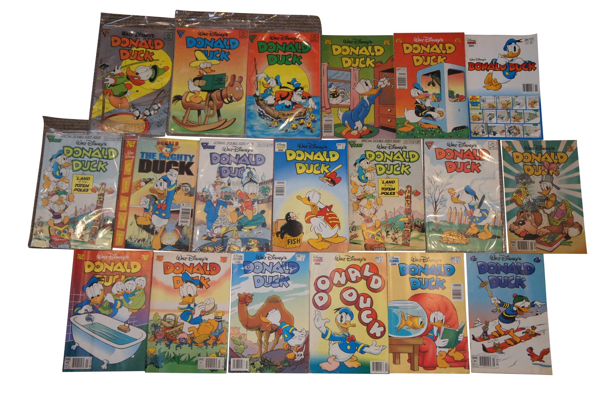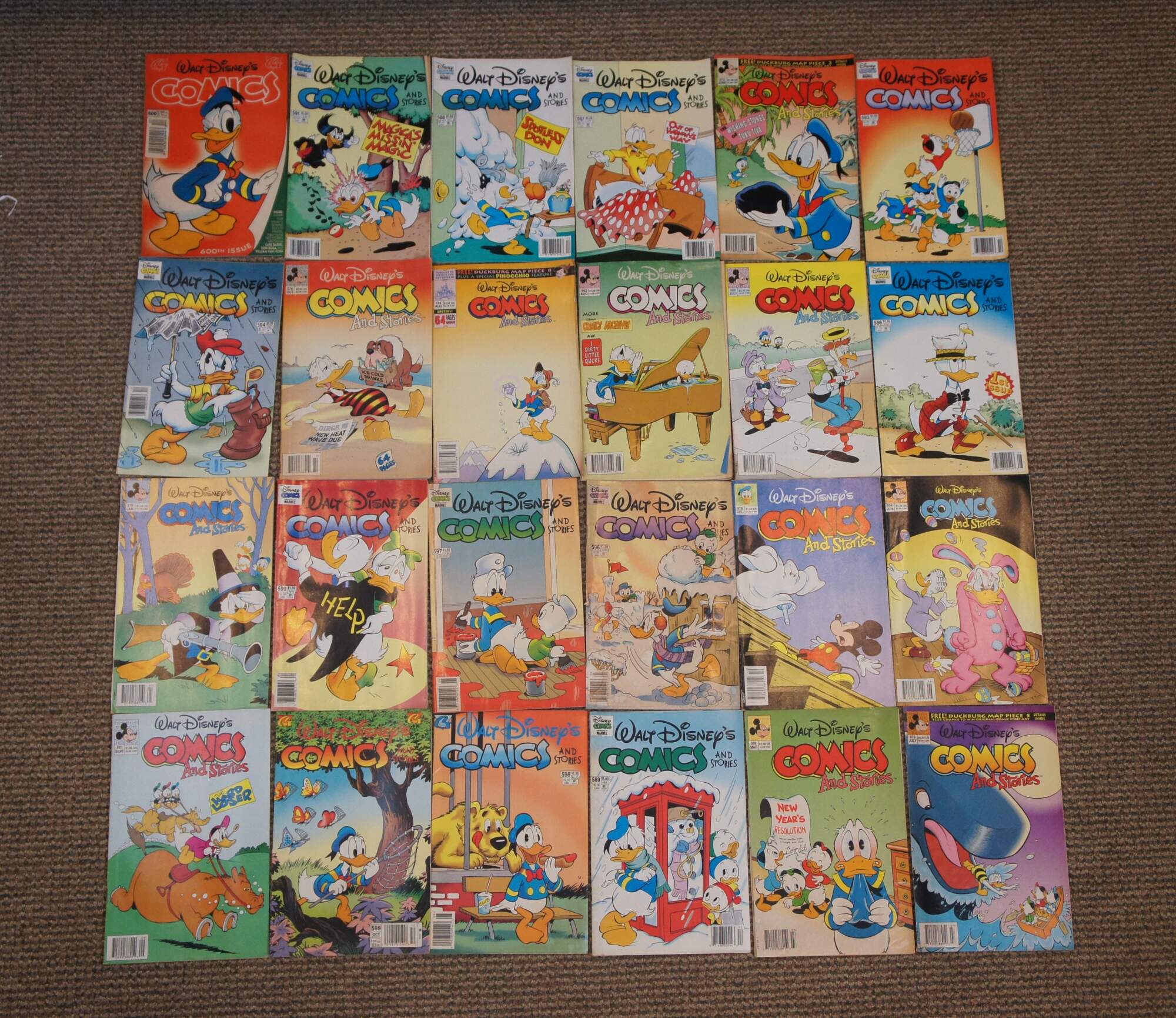 1980s - 1990s Walt Disney comics. 19 Donald Duck, 29 Donald Duck Adventures, 13 Donald and Mickey, 23 Comics and Stories (featuring Donald), 30 Uncle Scrooge, 16 Uncle Scrooge Adventures, 6 Count Duckula, 4 Ducktales, 1 Darkwing Duck, 1 Christmas Parade (featuring Donald), 3 Spanish language mini comics (Pato Donald, Tio Rico, and Mickey), 2 Mickey and Goofy (one 1978), 2 The Adventurous Scrooge McDuck, 1 Mickey Mouse, 1 Chip n' Dale Rescue Rangers, 1 Aladdin: The Official Movie Adaptation