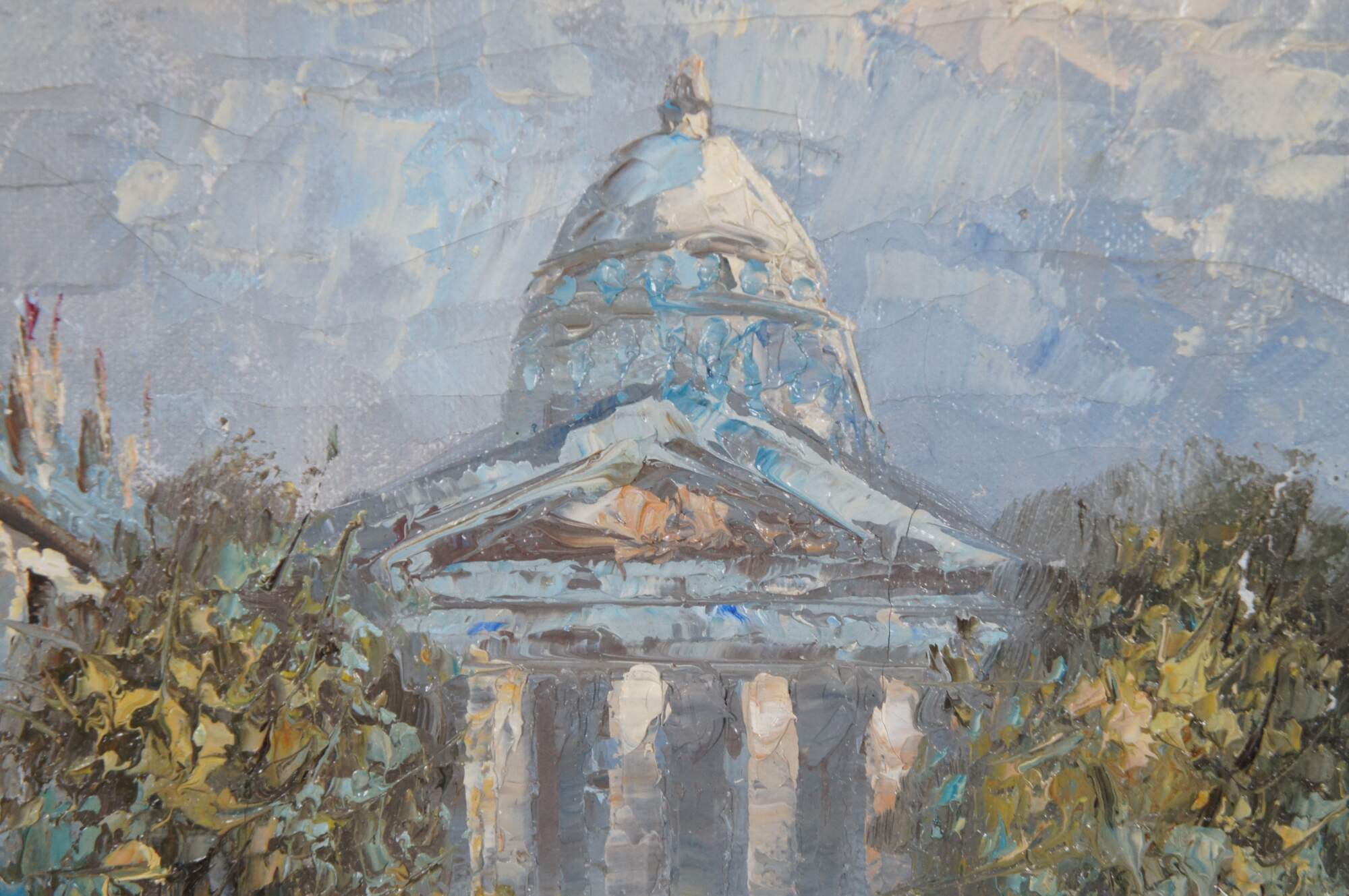 Artist Caroline Burnett was a member of the Societe de Beaux-Arts in Paris, where she exhibited her works in 1898. Using both light and shadow with skill and precision, she painted cityscapes showing each season in Paris. Though her artwork's value is mainly aesthetic, Caroline Burnett oil painting prices are affordable for modern travelers who want a reminder of a place they have visited.
