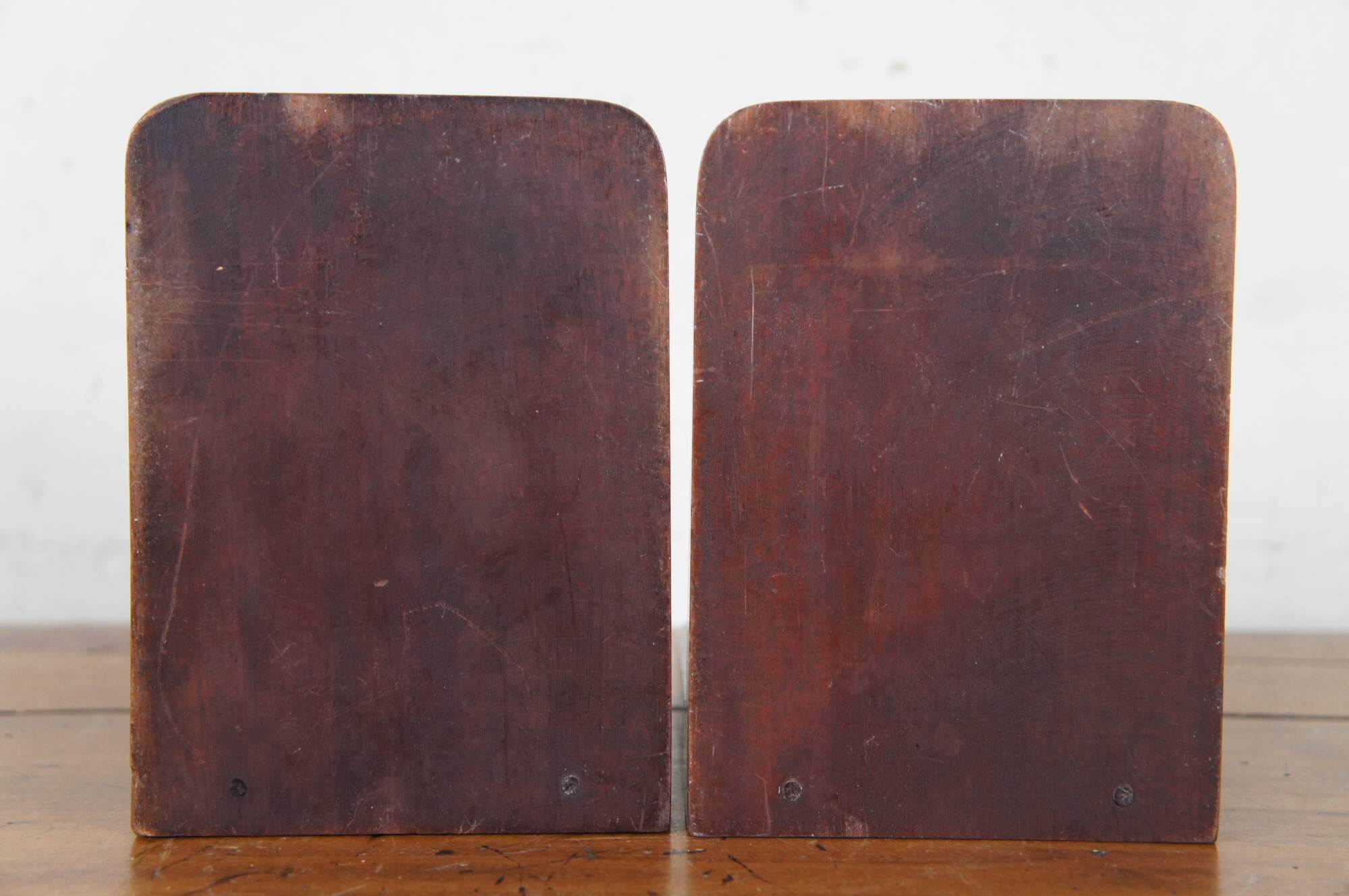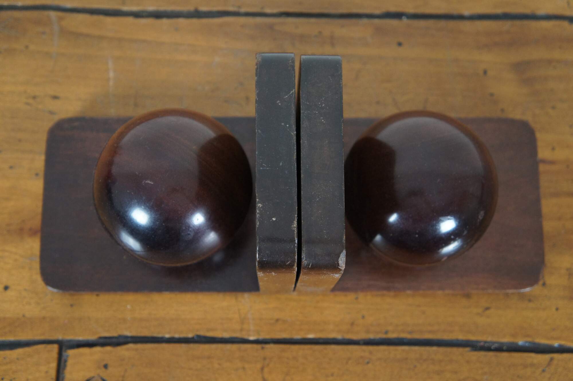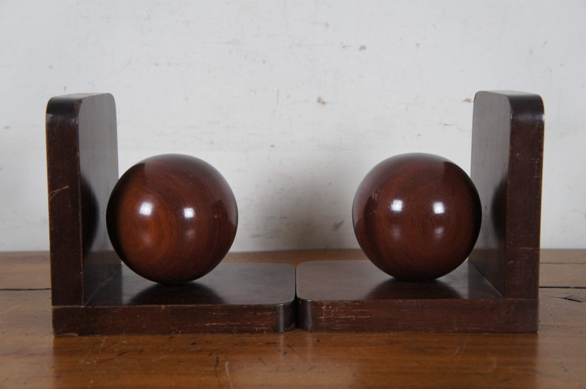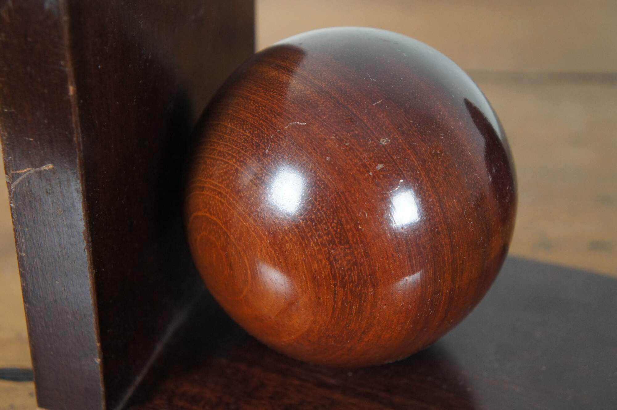 Pair of Art Deco wooden bookends. Made from mahogany with a wooden stand and turned ball.
