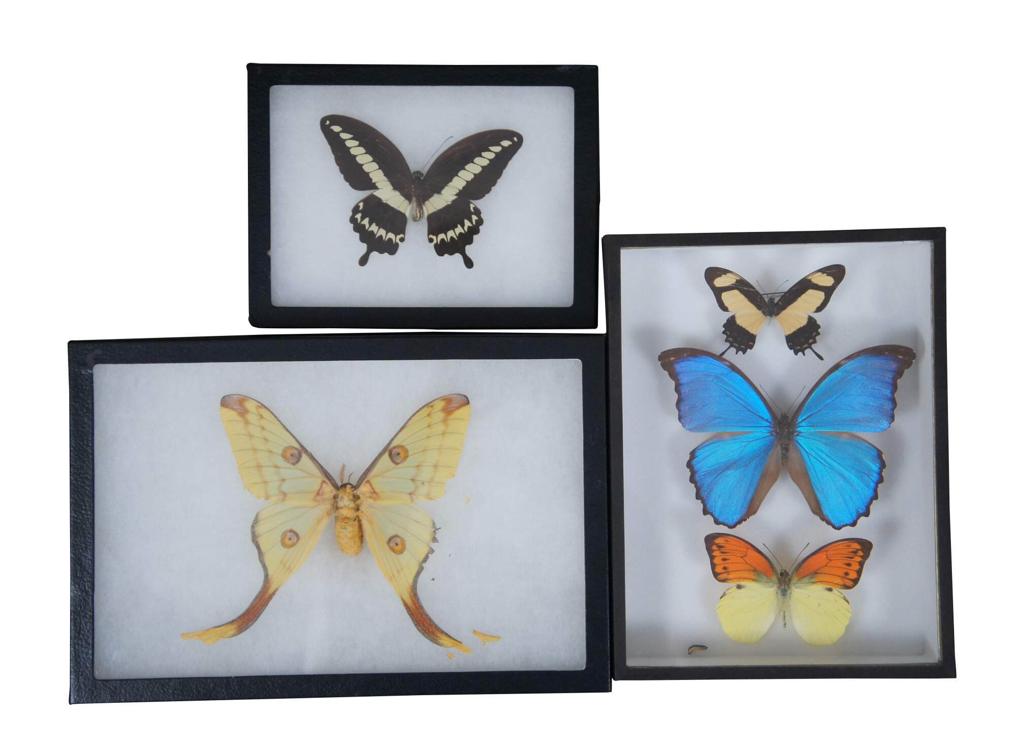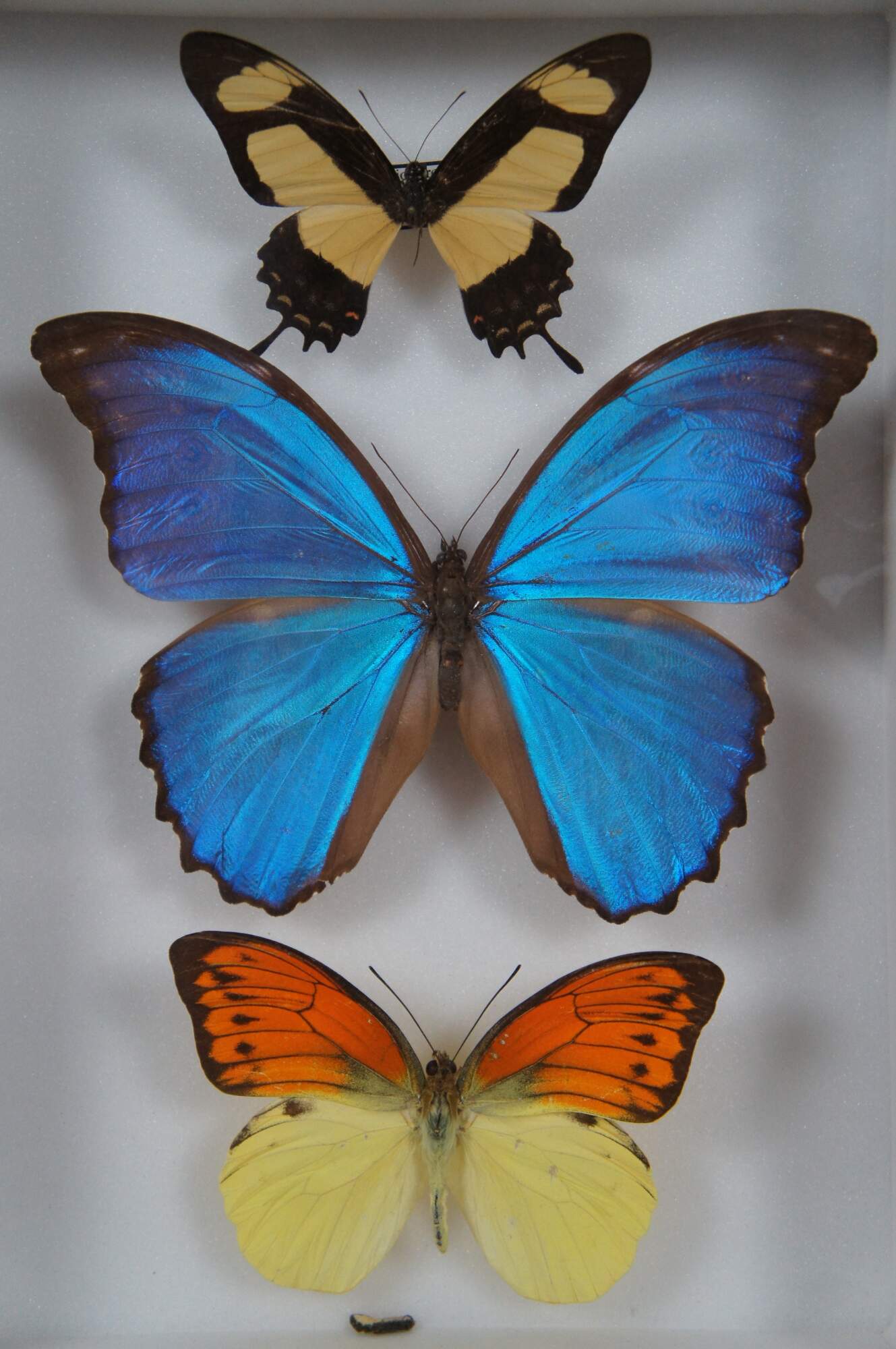 Argema mittrei female - Fanovano, Madagascar / 2 Attacus atlas - Snakehead Moth - West Java, Indonesia / Papilio Torquatus Perou - (Peru) : Morpho Didius - Perou (Peru) : Hebomoia Leuchippe - Ceram / Papilio demolion (Banded Swallowtail)