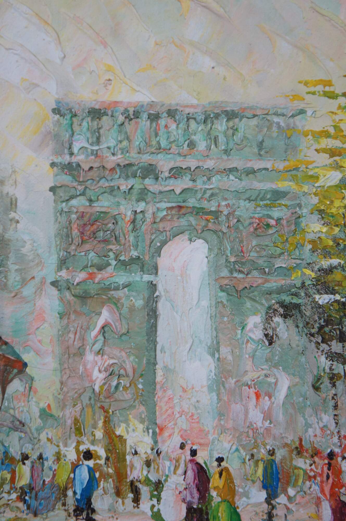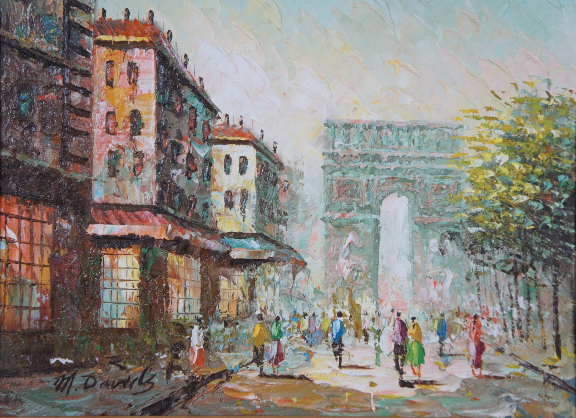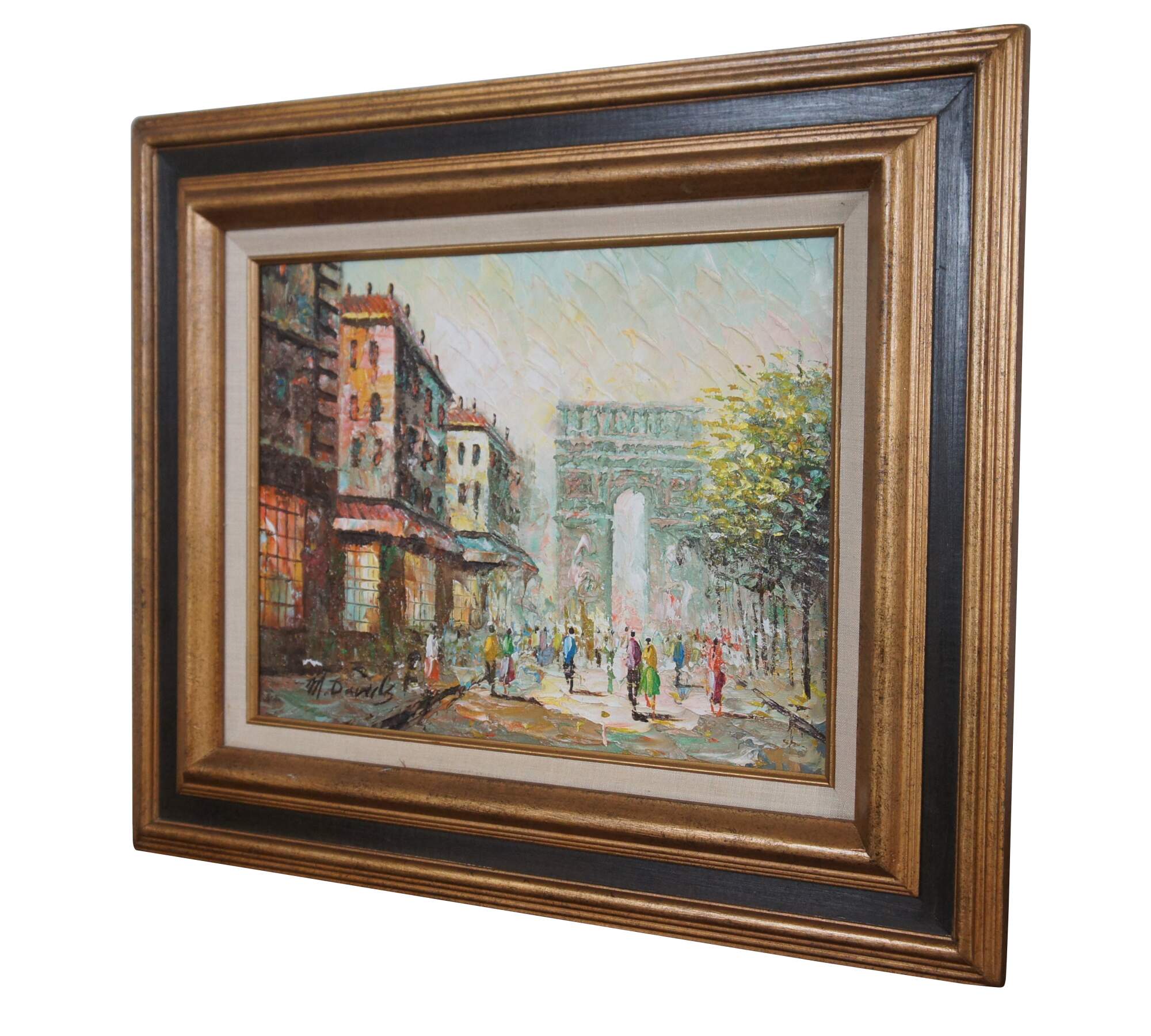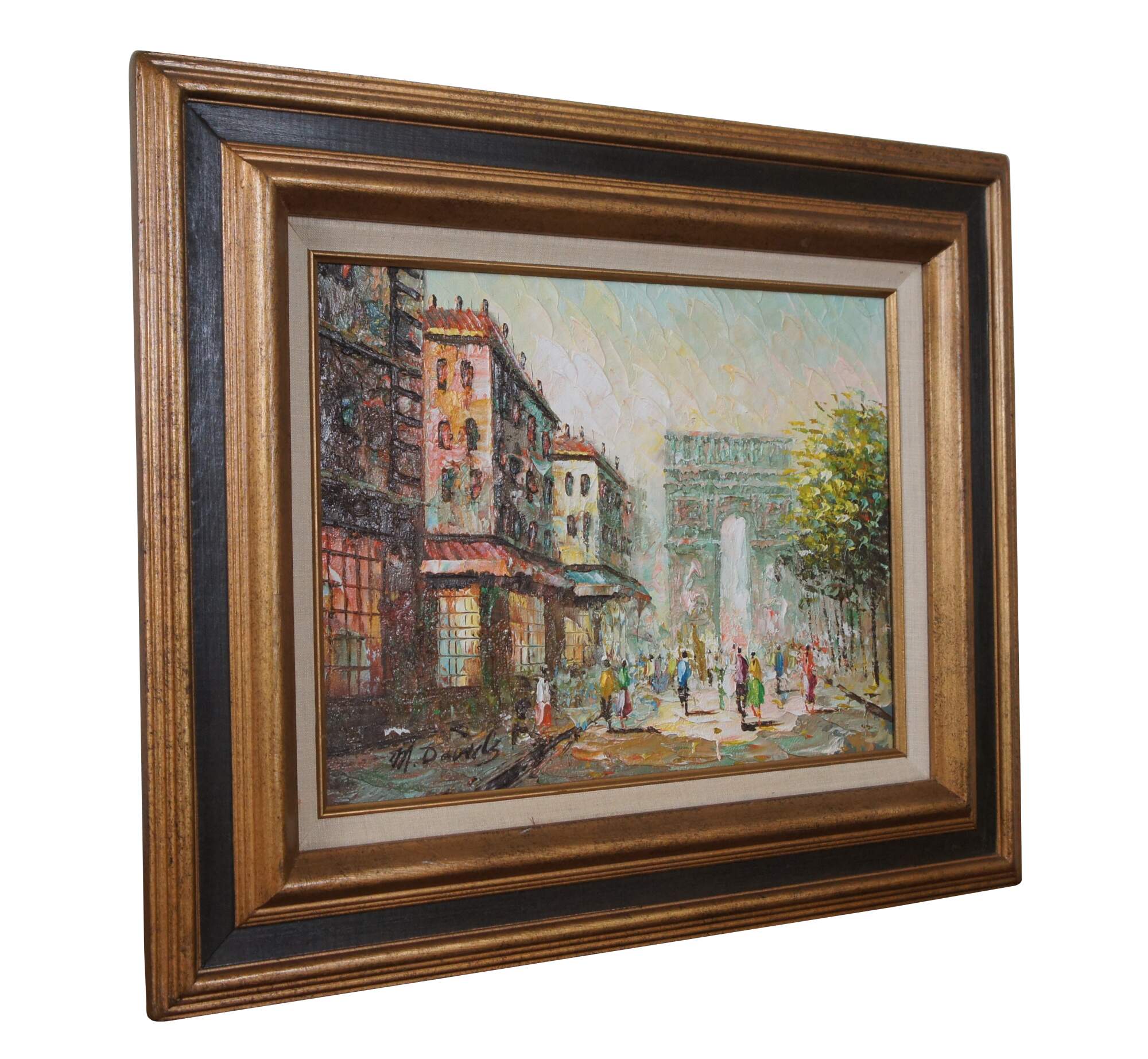Parisian cityscape painting by M. Davids. An oil on canvas by the Arc de Triomphe in Paris. Beautifully painted with exceptional colors. Hand Signed lower left.