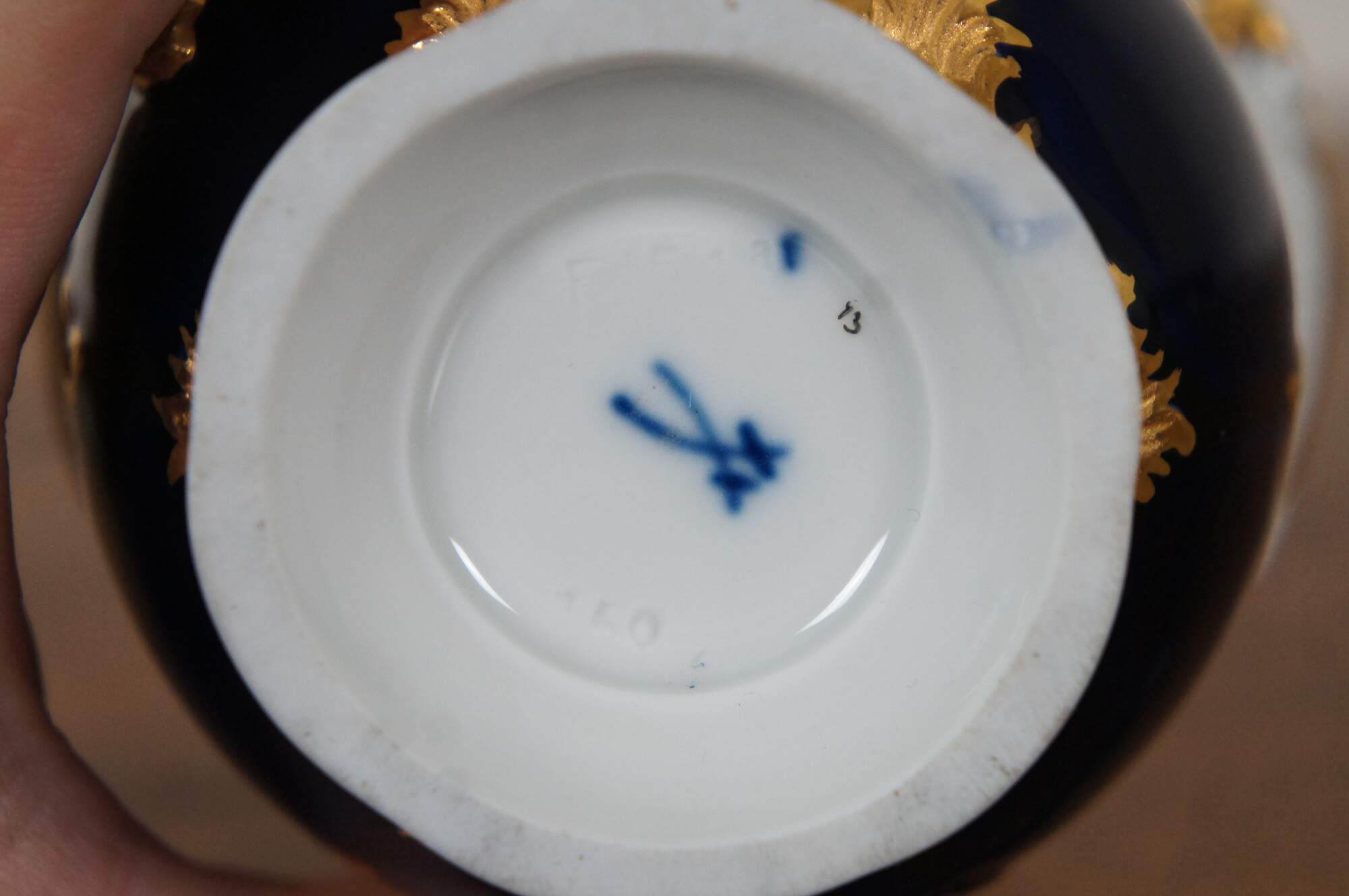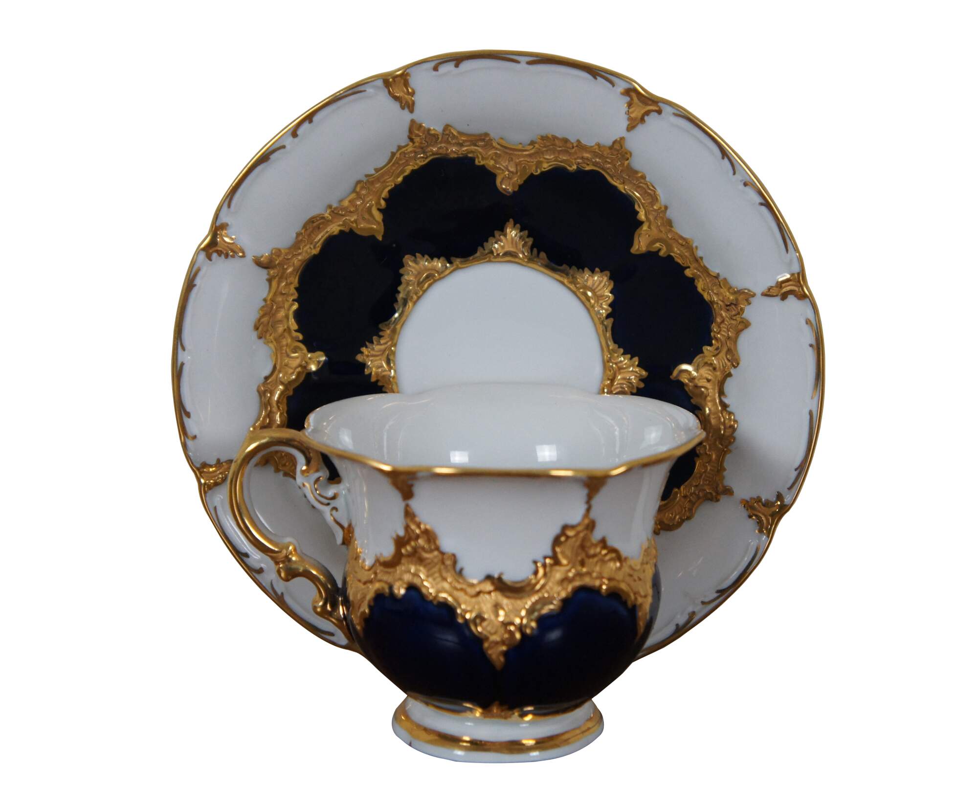 MEISSEN mocha/espresso cup with saucer, ¨B-Form¨, cobalt blue and white background with rich gold decoration and sword mark