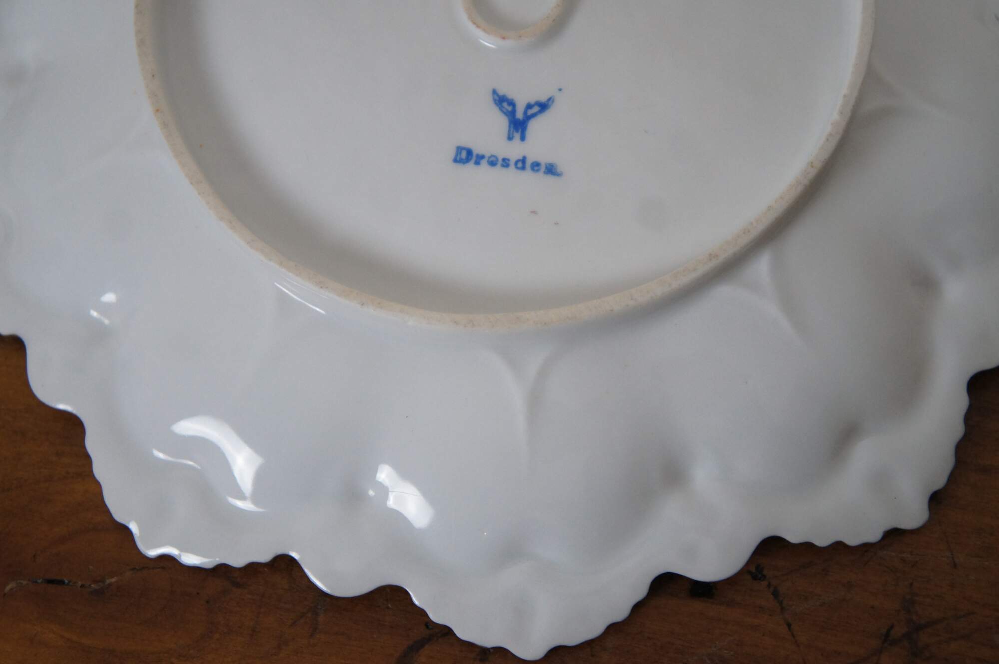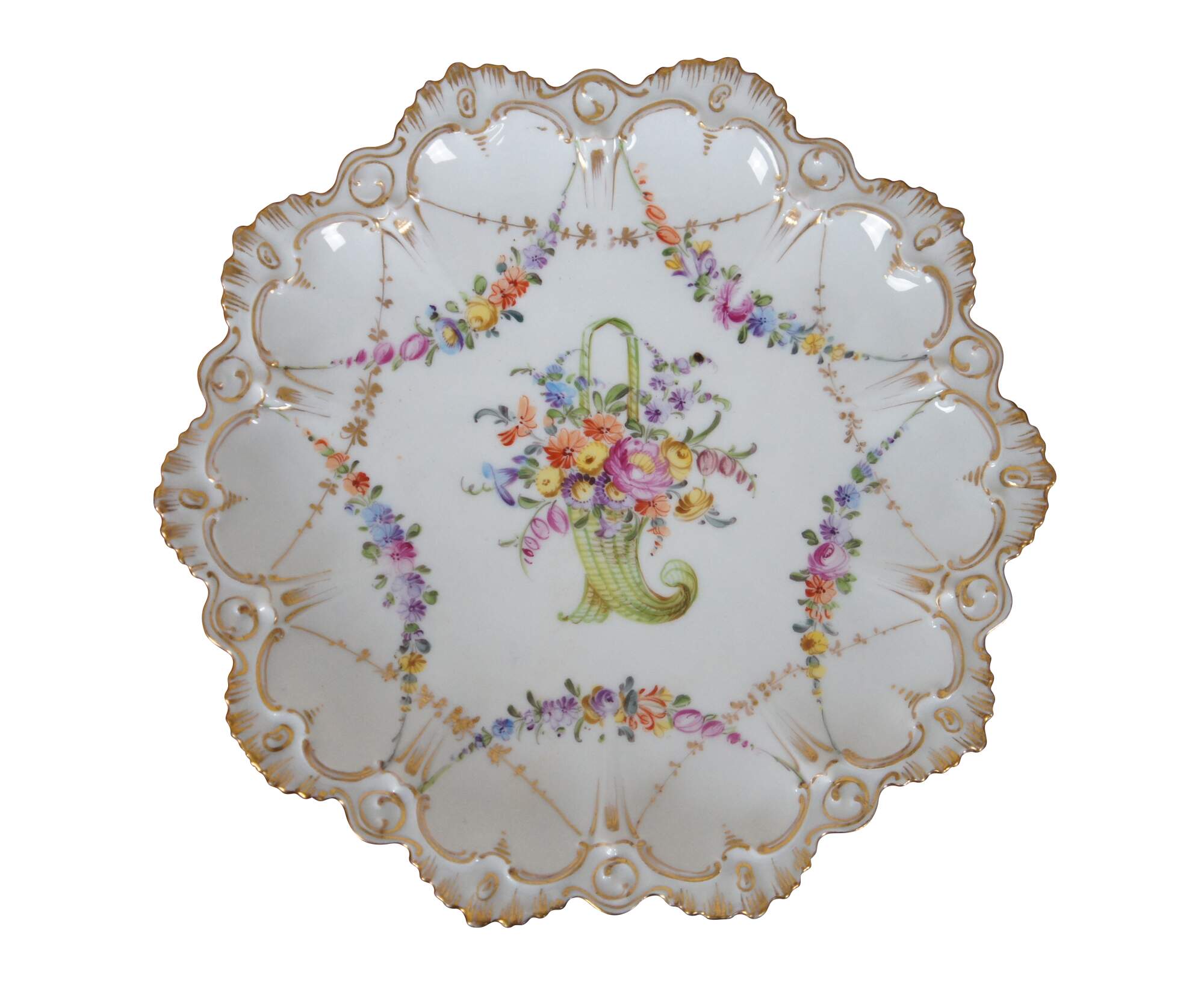 "Franziska Hirsch established her porcelain painting business in Dresden in 1893. The studio gained a reputation decorating the porcelain in the Meissen style. The studio operated till ca. 1930. Dresden H with wings mark used 1901 – 1914."