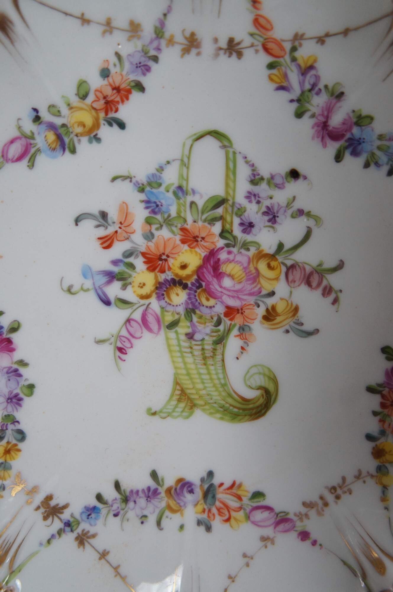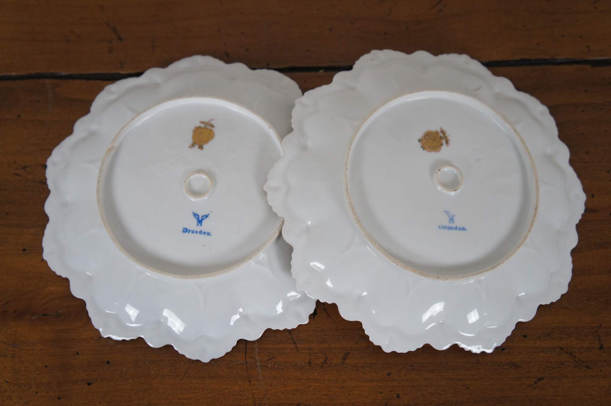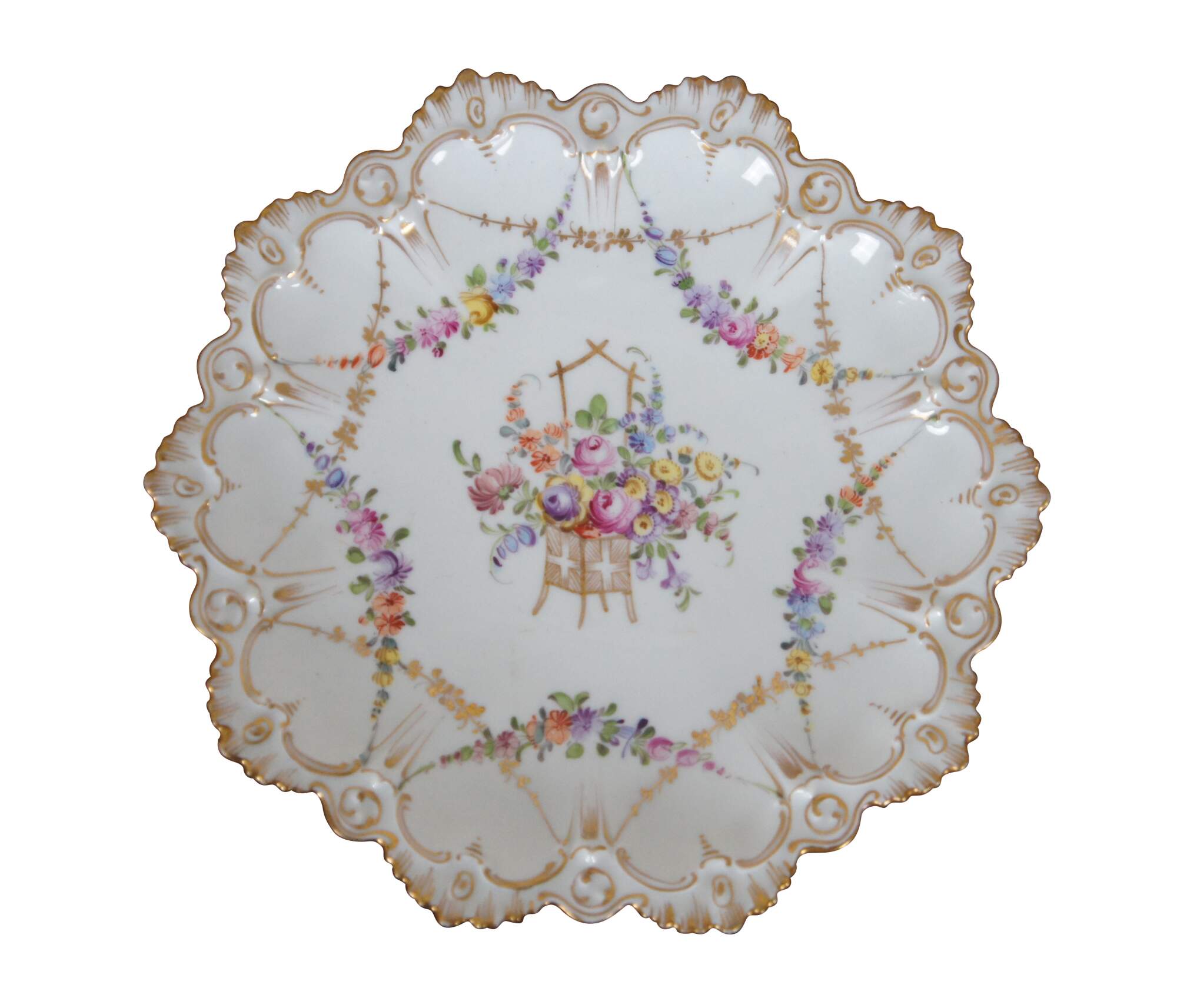 Pair of scalloped edge plates by Hirsch. Features a magnificent polychrome floral design.