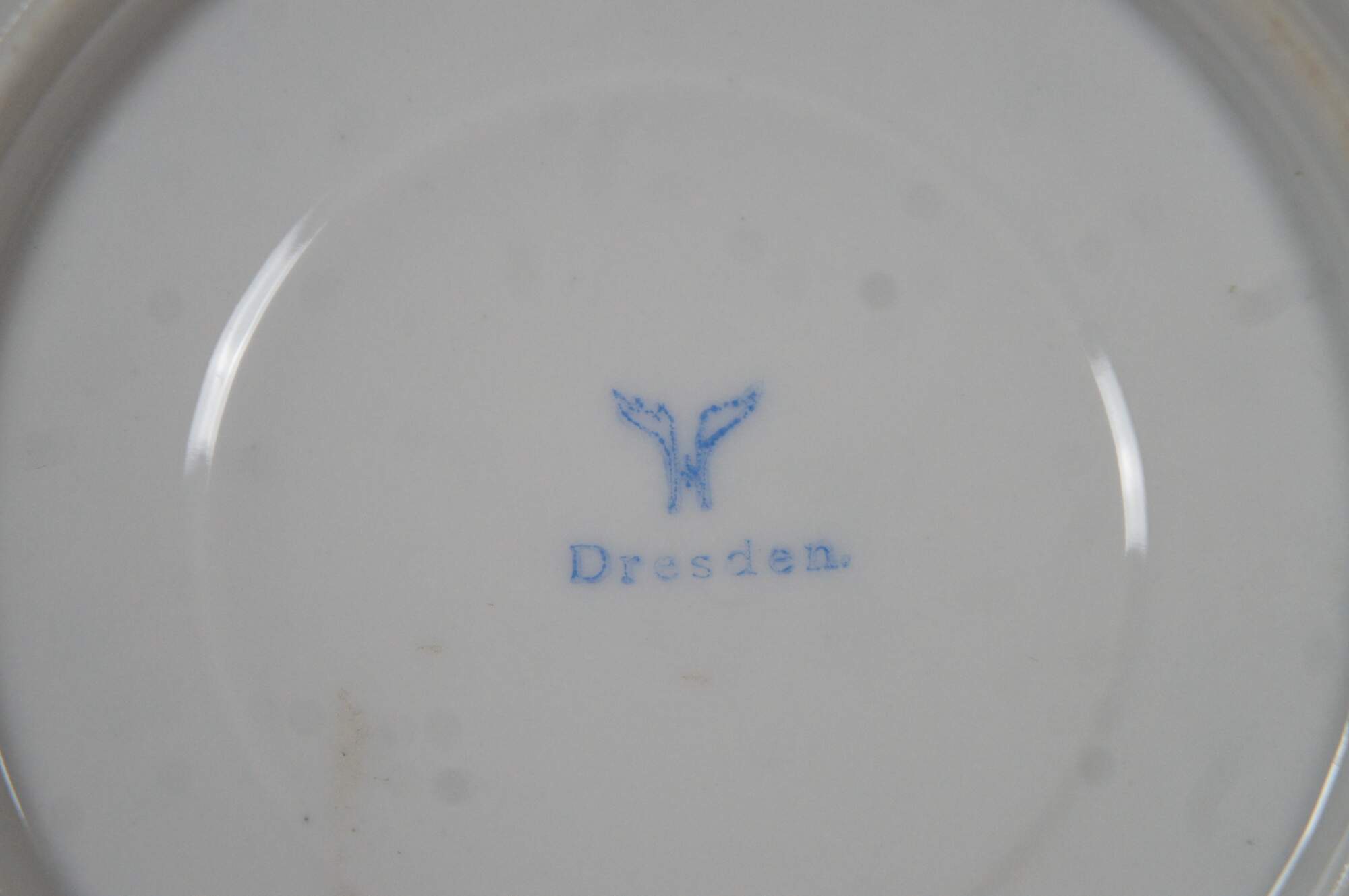 Franziska Hirsch established her porcelain painting business in Dresden in 1893. The studio gained a reputation decorating the porcelain in the Meissen style. The studio operated till ca. 1930. Dresden H with wings mark used 1901 - 1914.