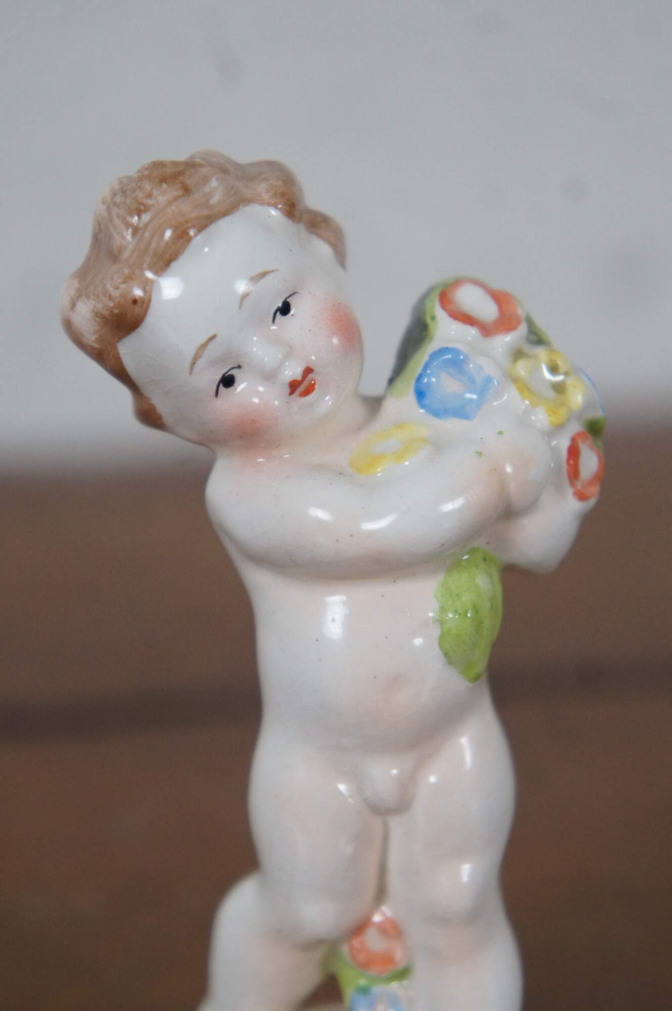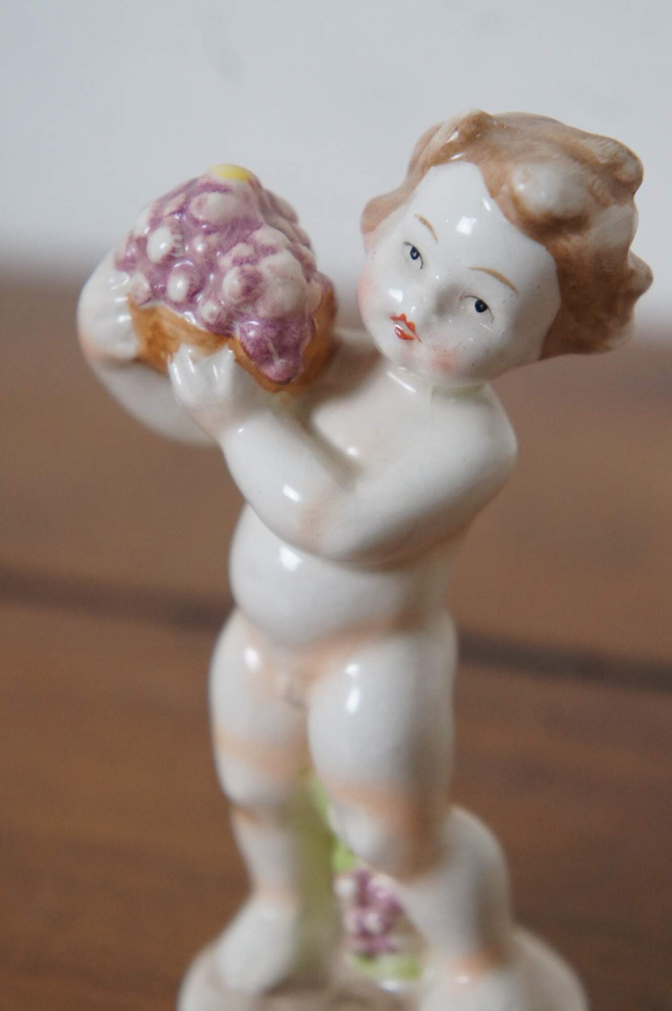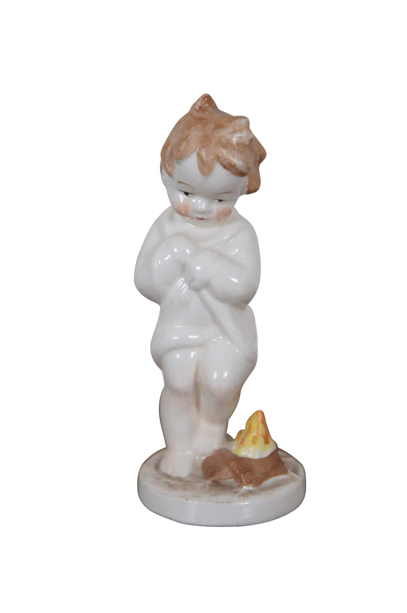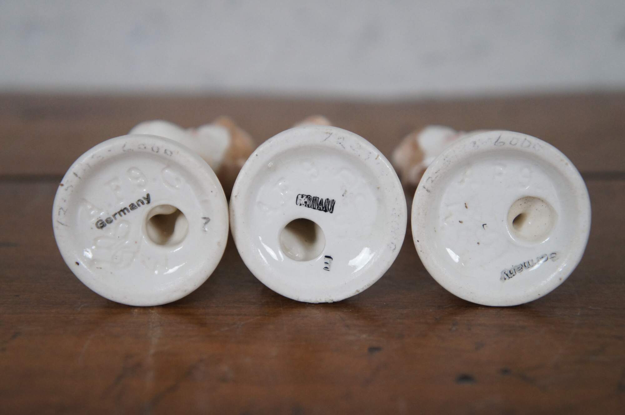 Vintage set of 3 Goebel figurines. One is fireside, the other holding grapes and the last with a pot or planter.