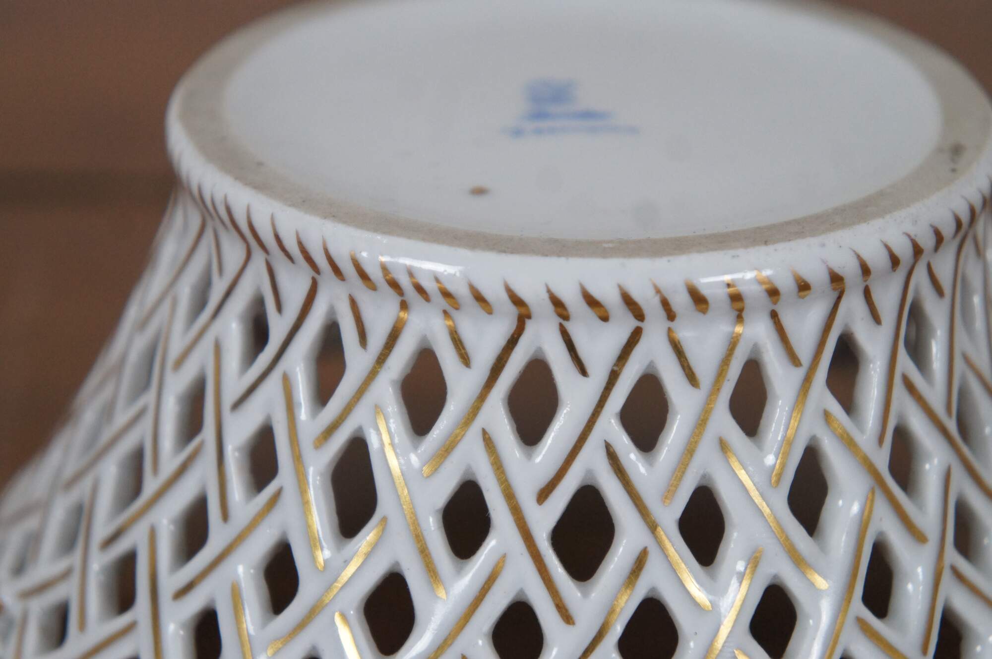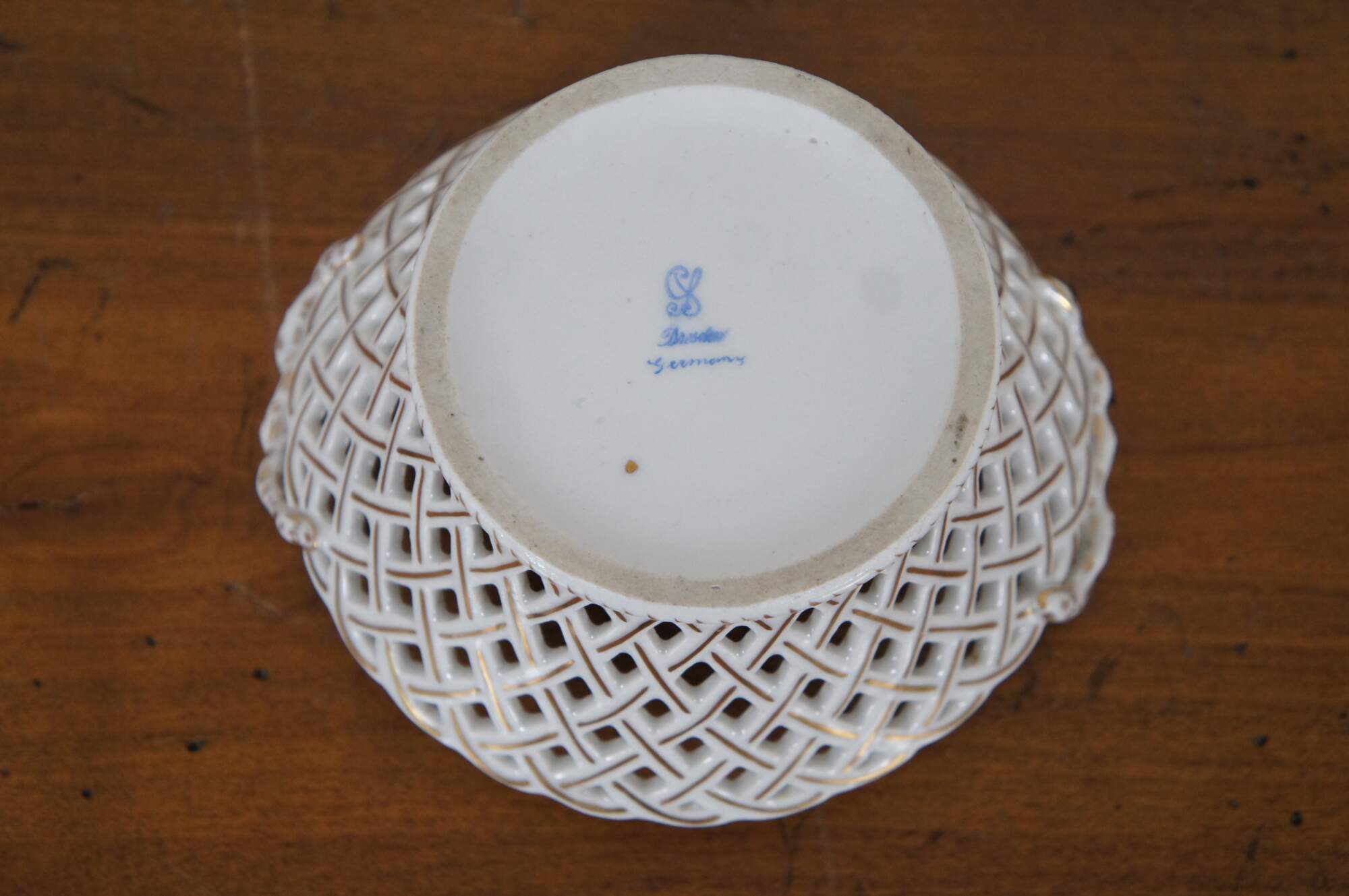An exceptional Dresden basket weave hand painted bob bon dish or bowl. Polychrome with colorful floral sprays and flowers throughout.