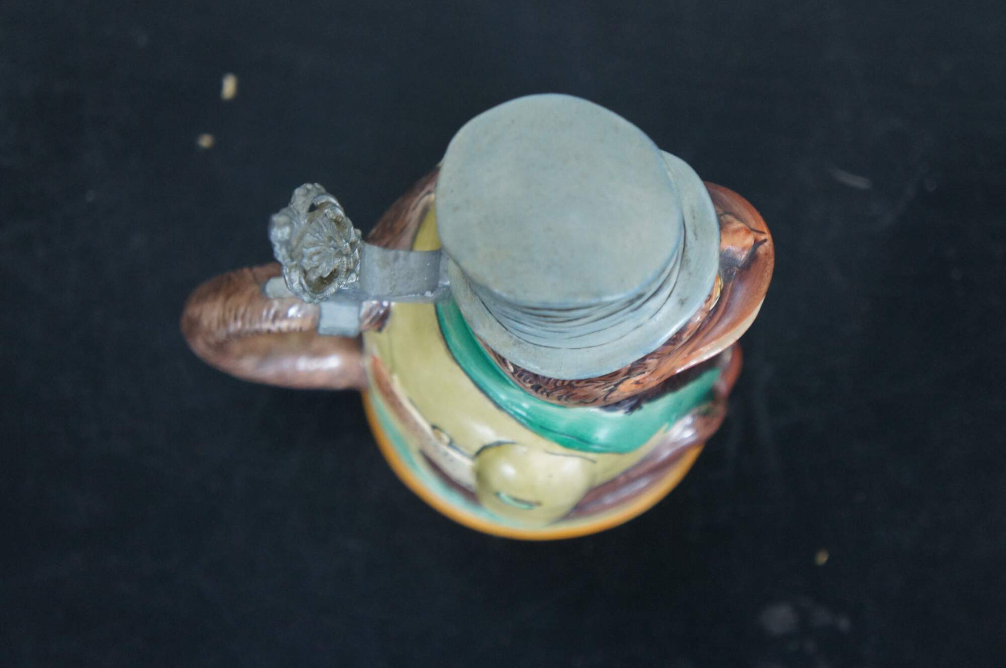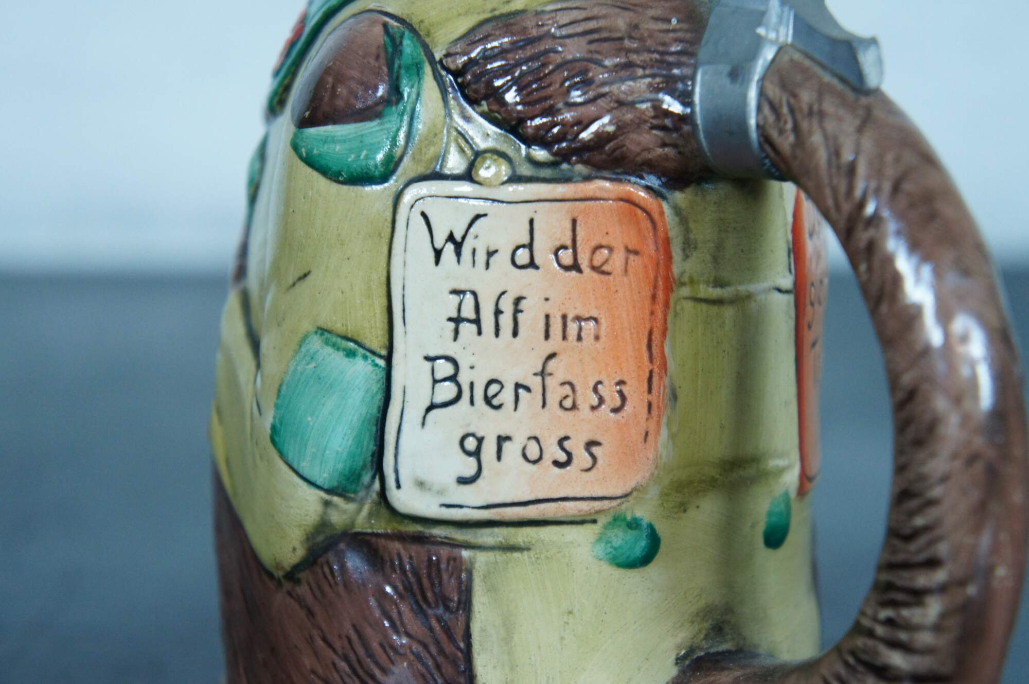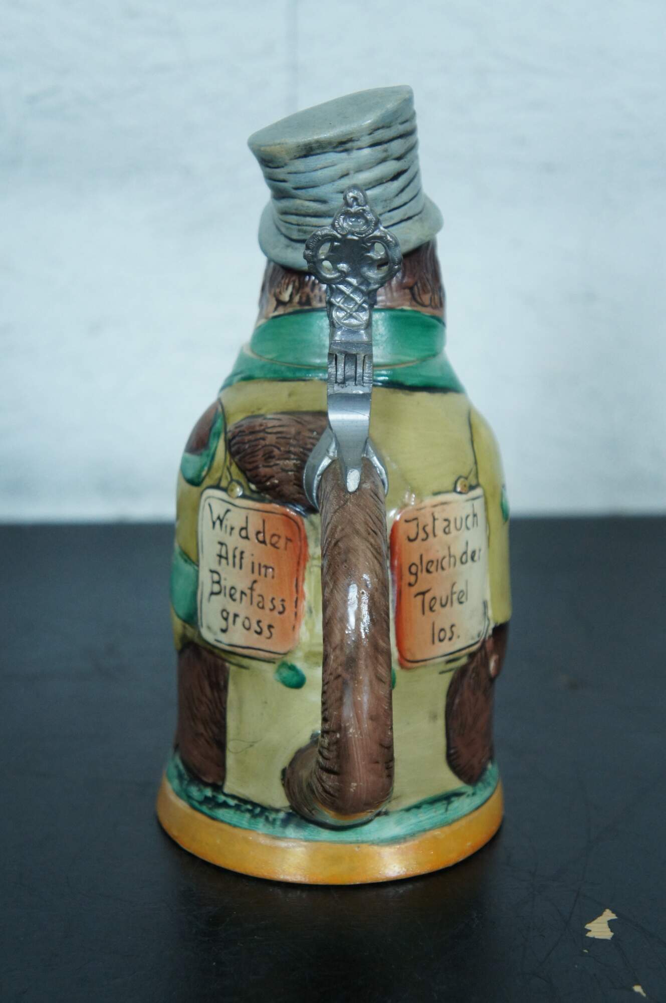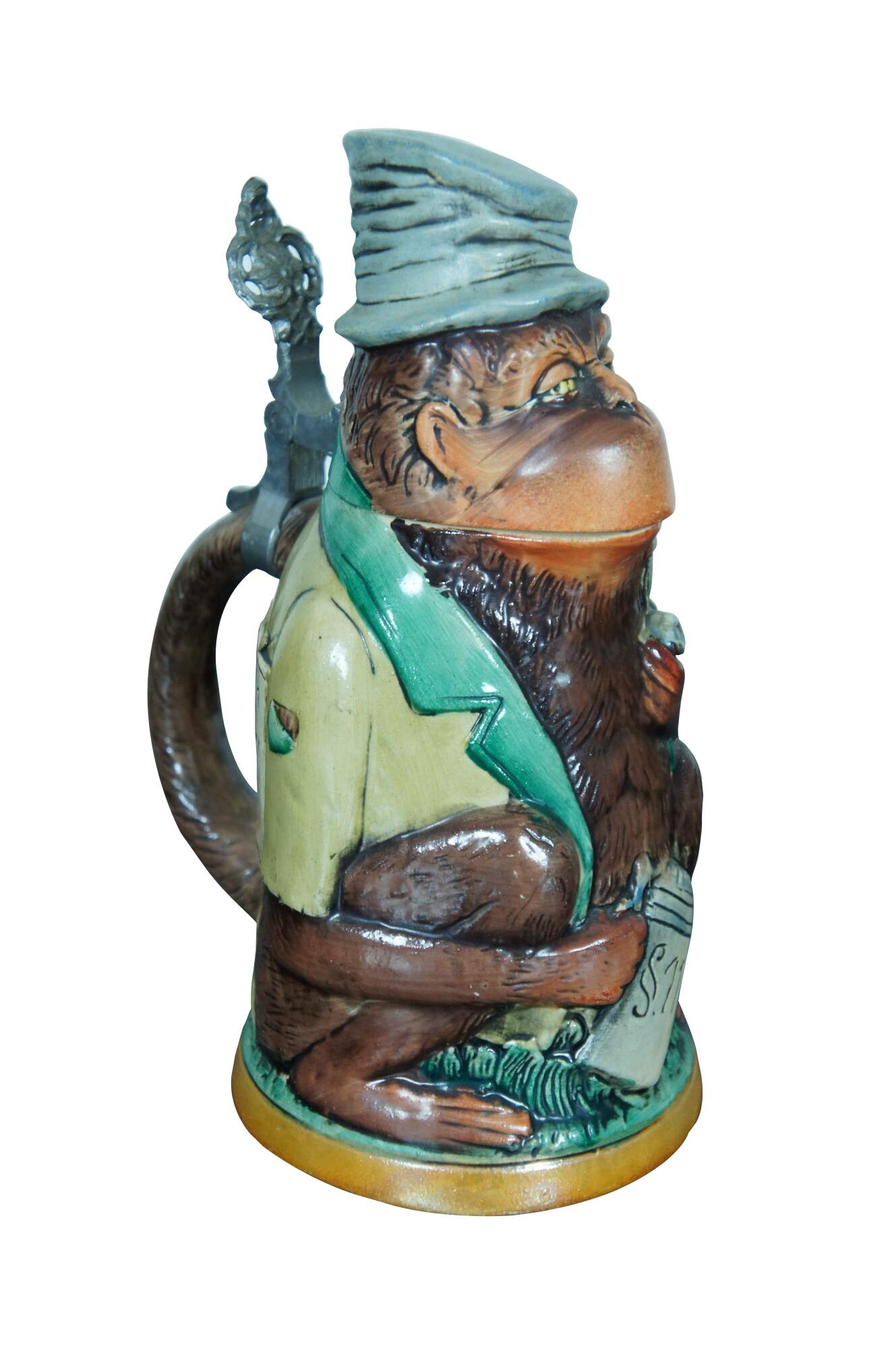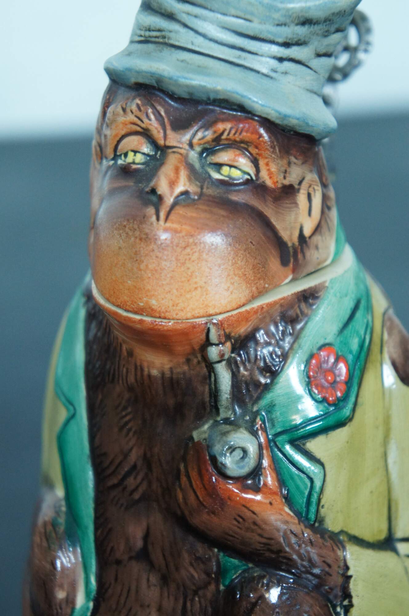 German pottery stein by Matthias Girmscheid. Modeled as a monkey with top hat and pipe.