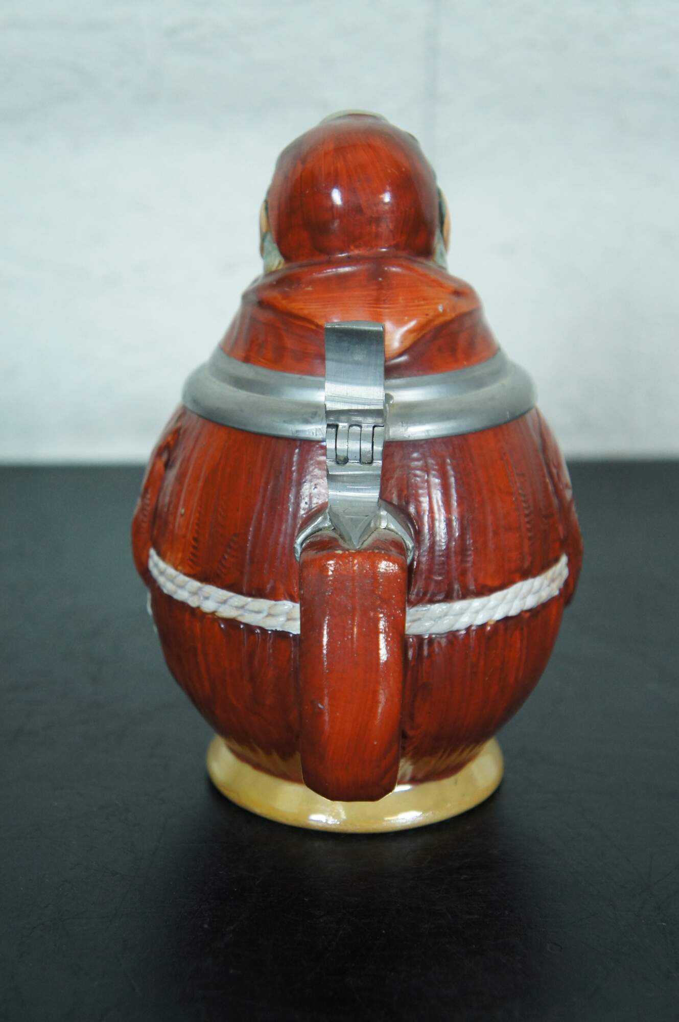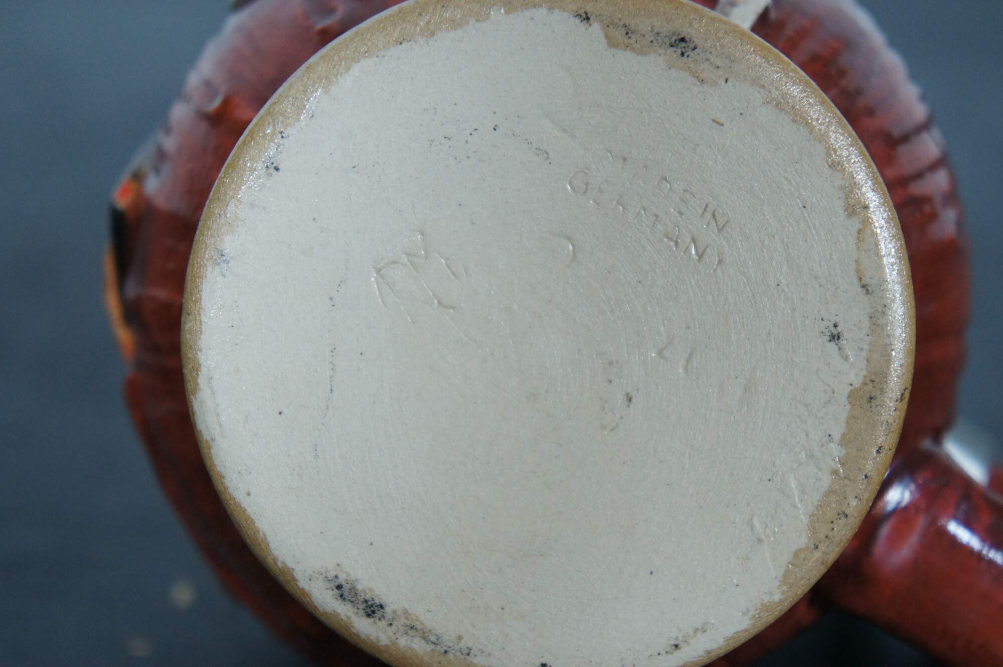 "Merkelbach Manufaktur was established in 1843. The founder was Wilhelm Merkelbach whose family pottery traditions had dated bach to 17th century. The pottery was developed by his son Reinhold Merkelbach. After his death the Merkelbach Manufaktur was managed by widow Toska Merkelbach and in 1907 it was overtaken by sons Paul and Reinhold Merkelbach. The sons of Toska Merkelbach died in the WWI. She had to manage the company again in order to save manufactory for her grandson Reinhold Paul Bernhard Merkelbach born in 1918. Professor Reinhold Paul Bernhard Merkelbach took over a factory in 1957. He was a scientist and the factory was run by managers. In 1971 50 percent of the company was bought by W. Goebel AG. In 1985 Goebel overtook remaining 50 percent of the downsized company. In 1988 Merkelbach family and a collector and some workers repurchased the factory. Production had to be stopped around 2007 when it became clear that further production of ceramics in Germany was no longer a viable option. Best selling molds were transferred to Töpferei Girmscheid Höhr-Grenzhausen.