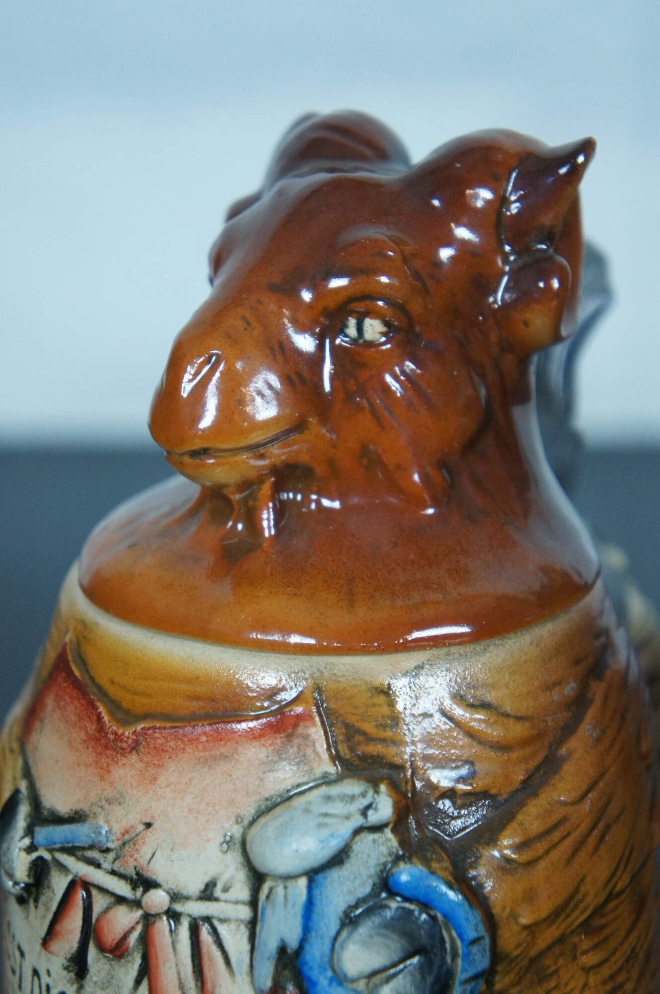 "Matthias Girmscheid was born in 1845 to merchant parents and began his working life in the family tradition, opening his own trading firm in 1870 in the town of Höhr. Girmscheid’s manufacturing company began it’s life in 1884 and was apparently engaged initially in the manufacture of clay pipes. It is not known precisely when Girmscheid expanded his operation to include the manufacture of beer steins and related stoneware products, but by 1903 the firm was listed as a “stoneware factory”. In 1920, in what was almost certainly a response to Germany’s difficult post-war economy, Girmscheid merged with the firm of Gilles & Sohn. In 1930, two years following the death of Matthias Girmsched, the composition of the firm changed again. The new firm was called Girmscheid, Michels & Company, and included among its owners: Karl Girmscheid, who had taken over for his father; Simon Gilles, of Gilles & Sohn; and Alfons and Eduard Michels. However, this partnershp was to survive for only one year and, in 1931, the firm of “Matthias Girmscheid” returned to independent operations. Following the death of Karl Girmscheid in 1950, the company went through a series of ownership changes, but it continues in operation today, enjoying a healthy business focused principally on the manufacture of traditional salt-glazed tableware and decorative items.