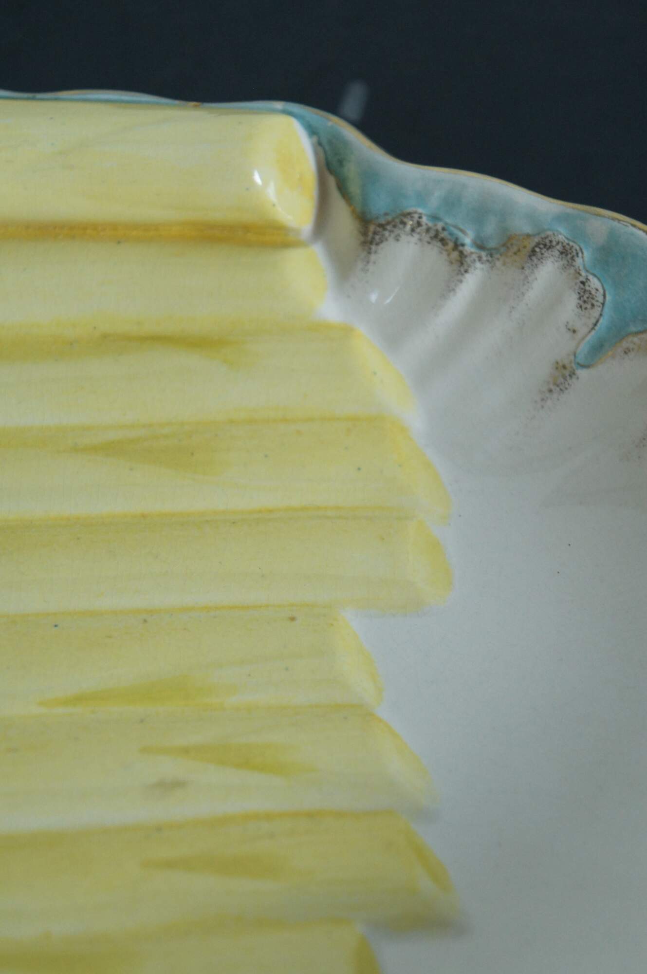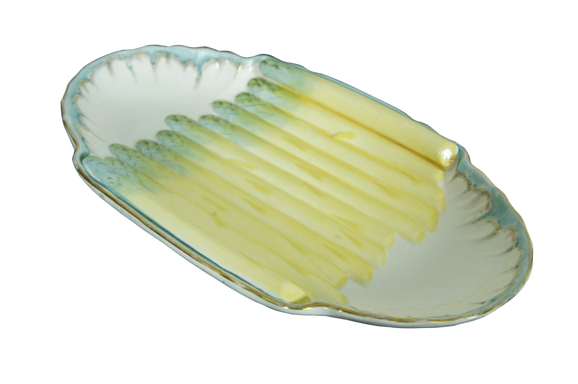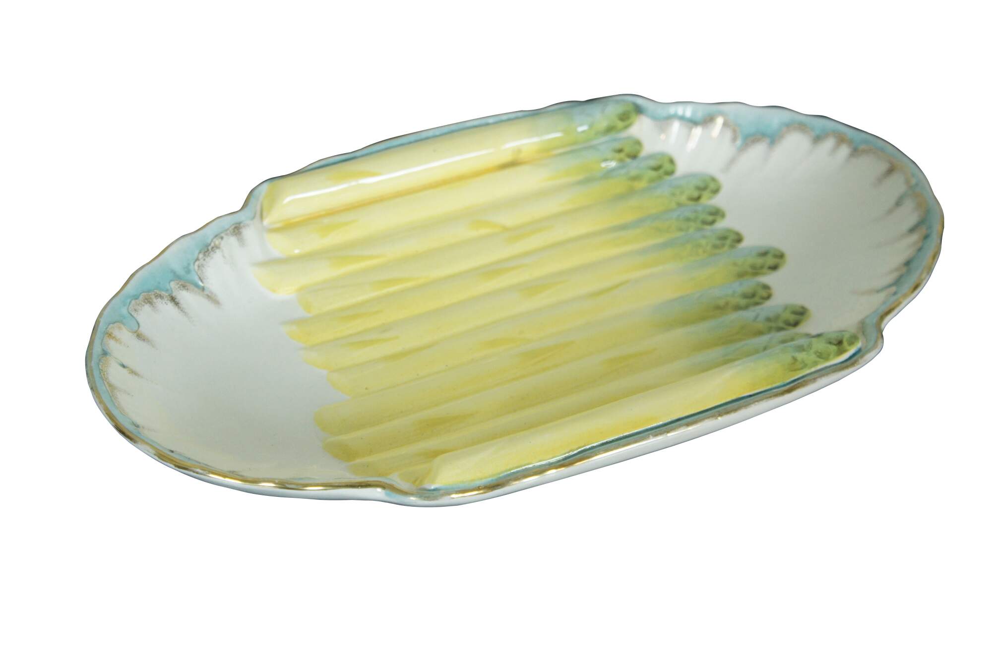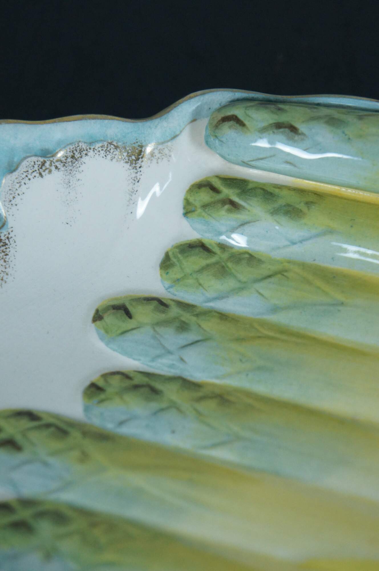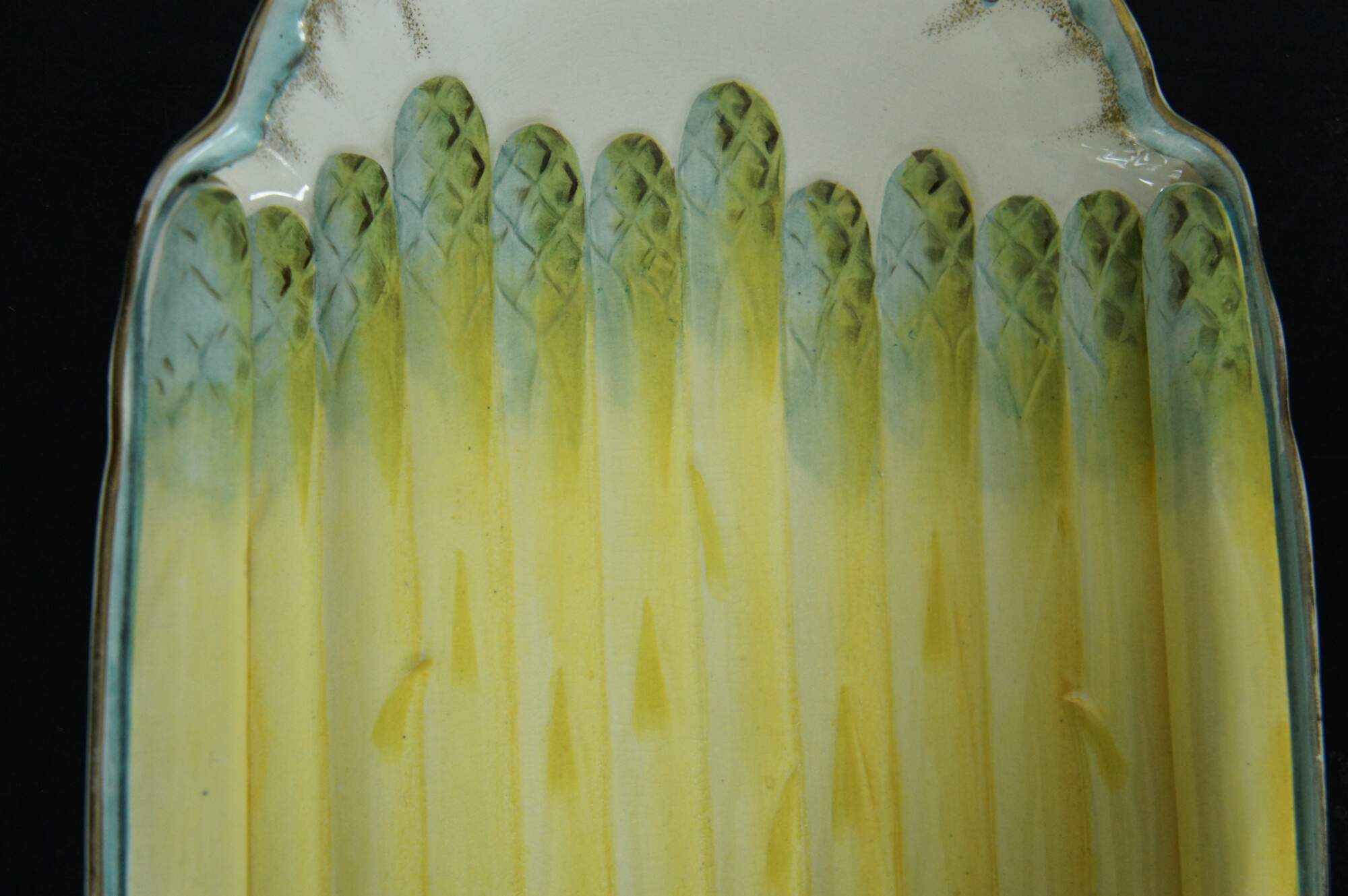 Antique German Villeroy & Boch Majolica oval form Asparagus vegetable tray / plate / platter / dish. Mettlach. Circa 1874-1909.
