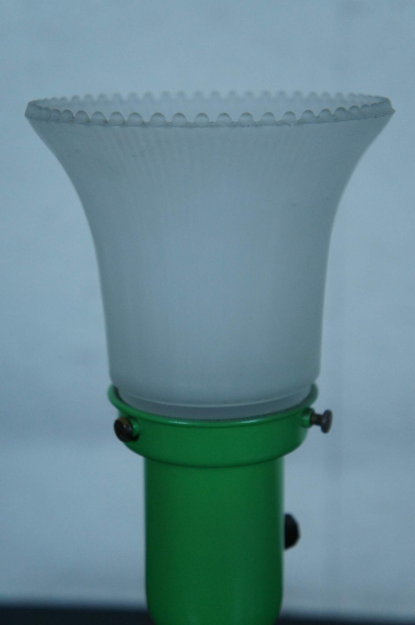 Antique Artistic Brass & Bronze Works NYC budoir / library / office lamp featuring Art Deco styling with torchiere style shade and green metal body.