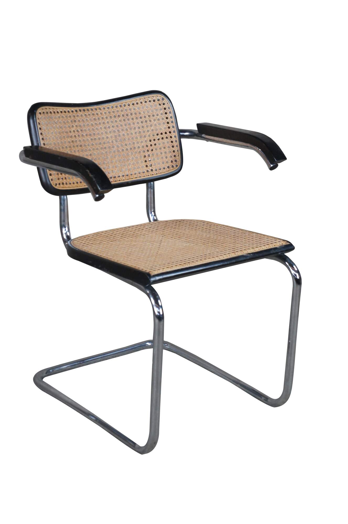After completing the Wassily, Breuer felt that the potential grace of the material was not yet fully exploited. The Wassily design was very much influenced by the constructivist theories of the Dutch De Stjil movement. A familiar form — in this case the classic club chair — reduced to its elemental lines and planes. The result was an overlapping, dense arrangement of leather and tubing. For the Cesca chairs Breuer sought to better celebrate the new material. An attempt to reduce visual noise led him to the continuous line of steel supporting a cantilevered seat — one of the most copied concepts in 20th century furniture.