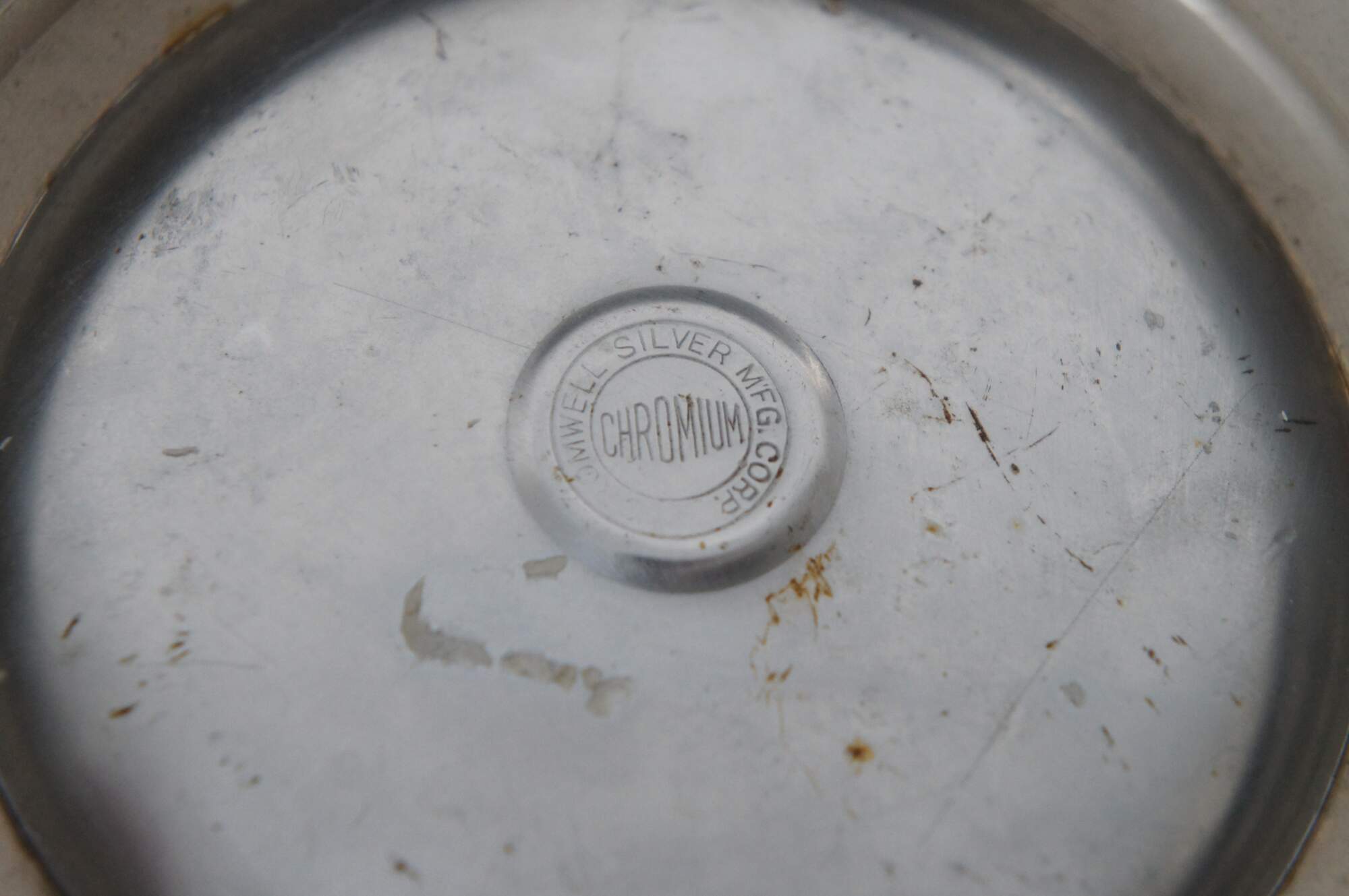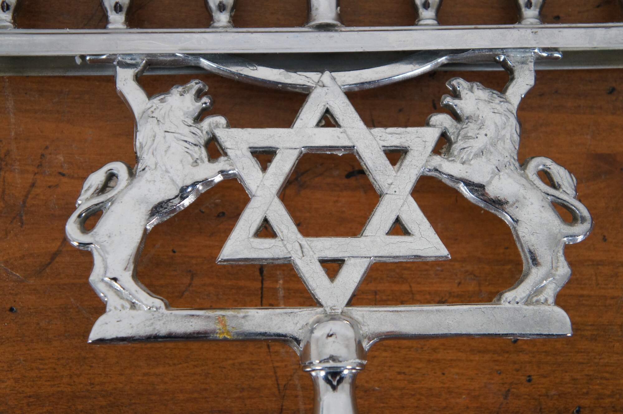 Vintage Cromwell Silver Mfg Corp chromium Hanukkah menorah featuring two lions flanking the star of David.