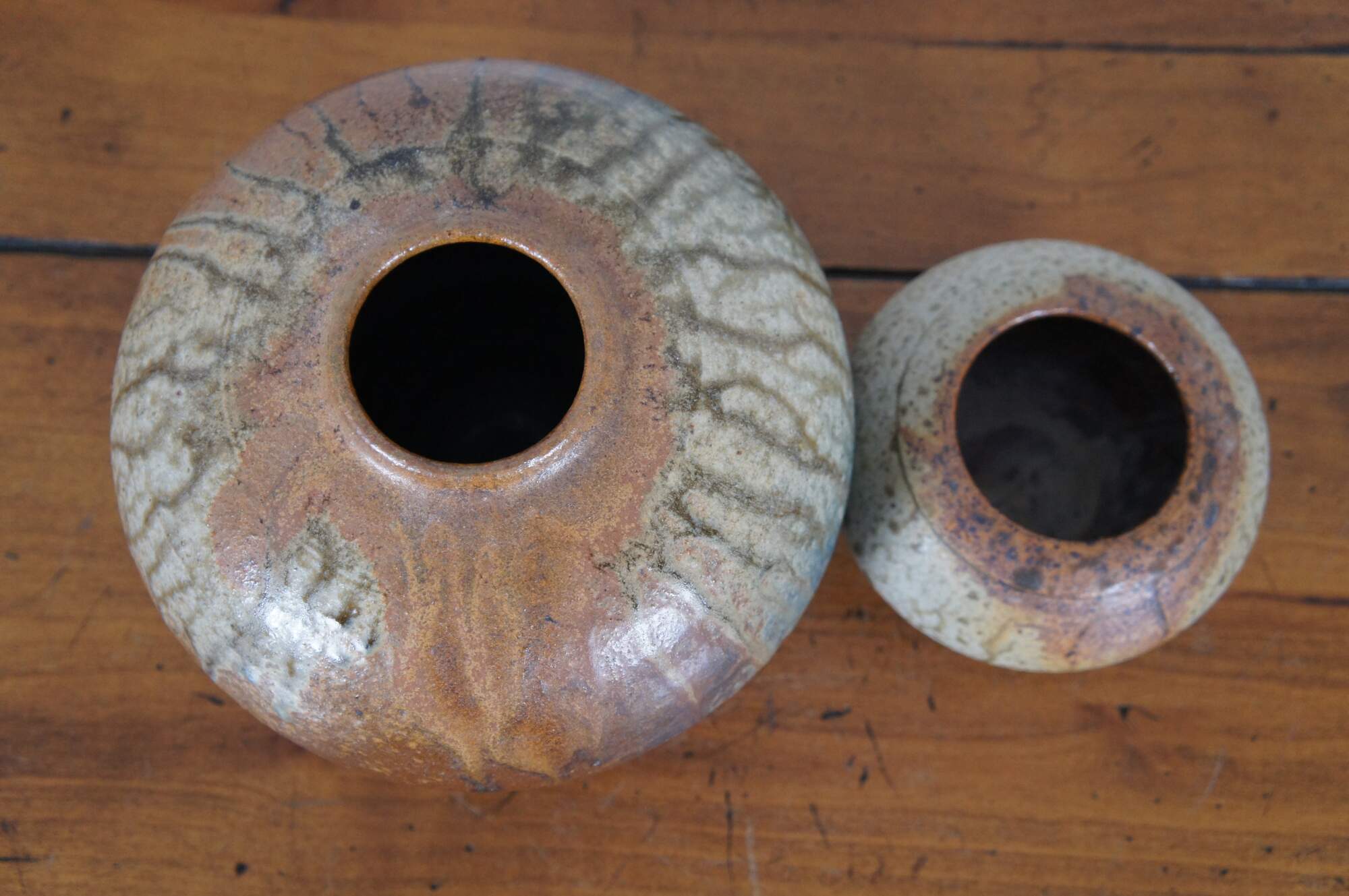 Two vintage mid to early 19th century Southwestern ceramic glazed earthenware pots / vases or vessels featuring round form with earth tone drip glaze.