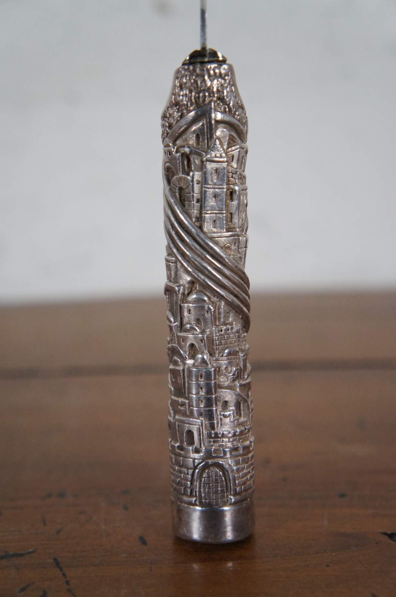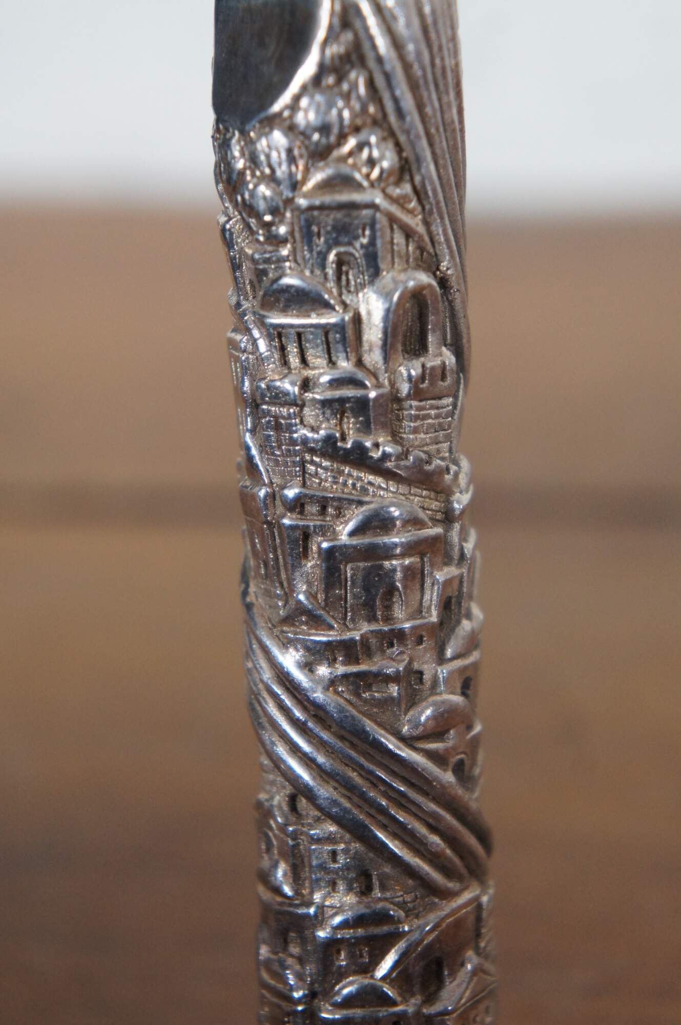 Vintage Jewish / Judaica sterling silver and stainless bread / challah / shabbat / sabbath / kiddush knife featuirng a cityscape of Jerusalem.