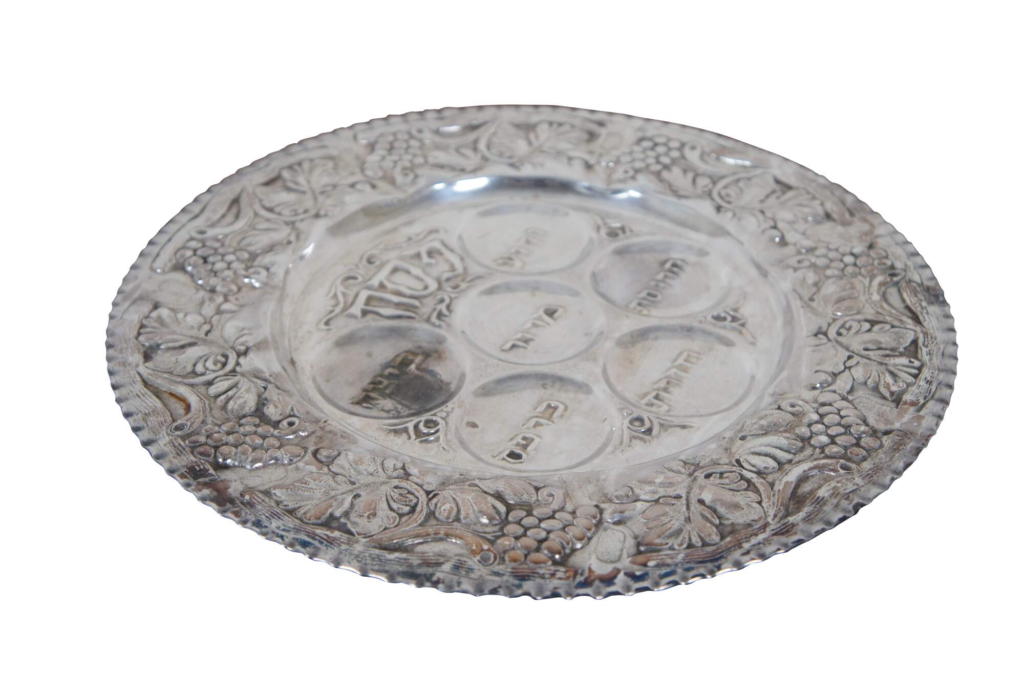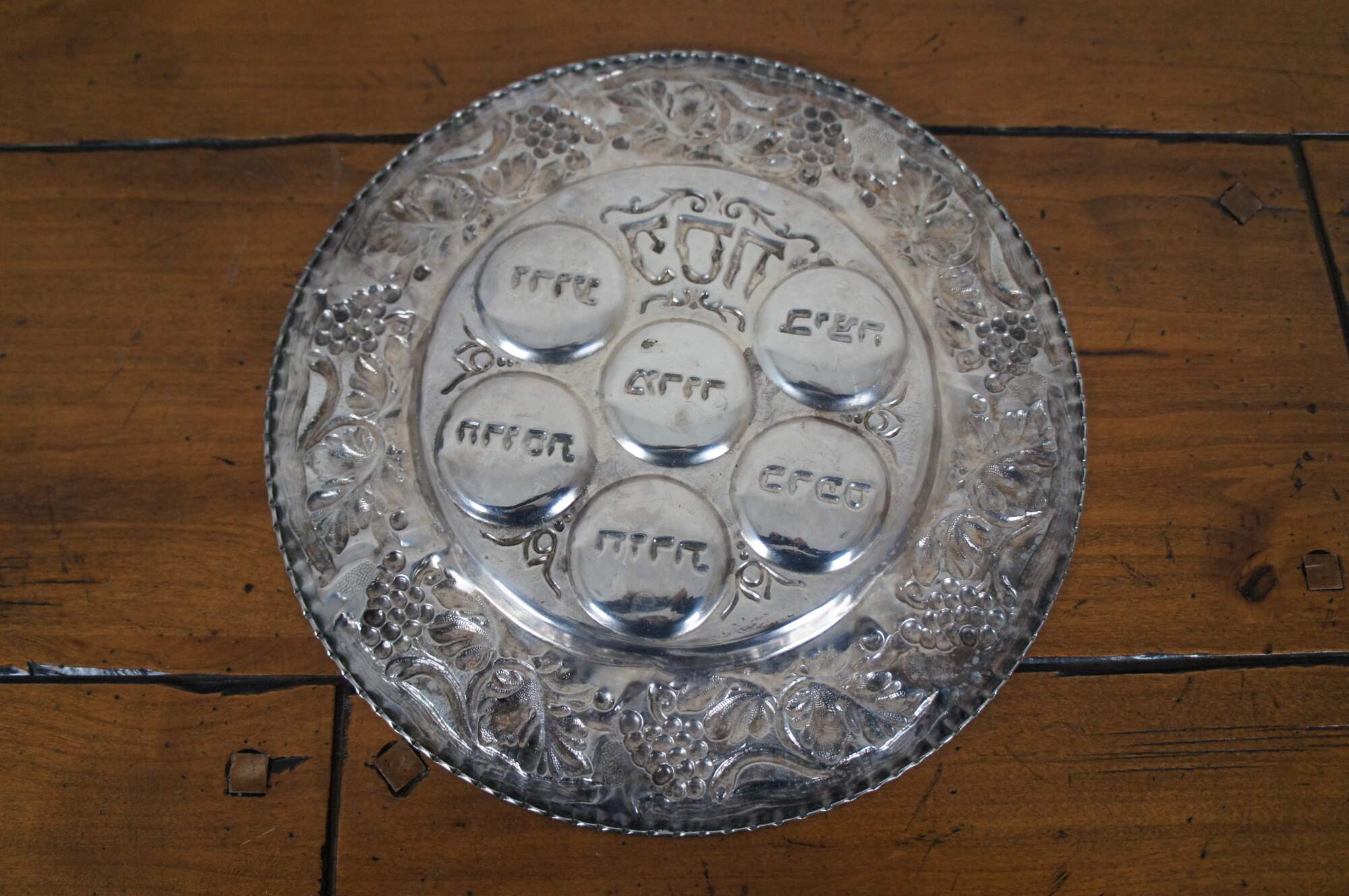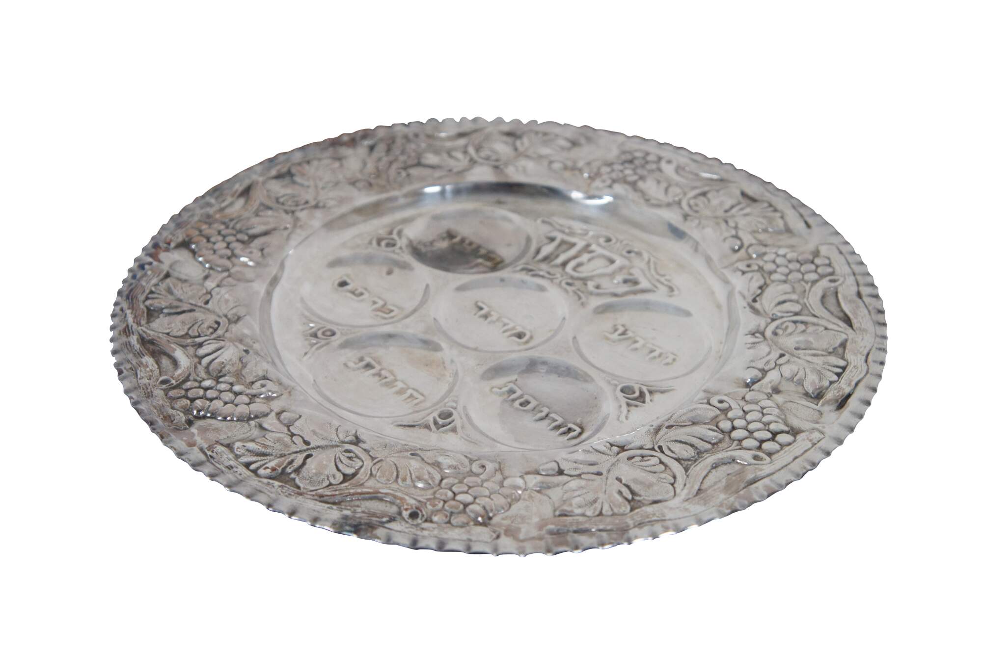 Vintage Jewish / Judaica Passover Pesach Sedar plate featuring low relief detail with grapevine and leaves and scalloped edge.