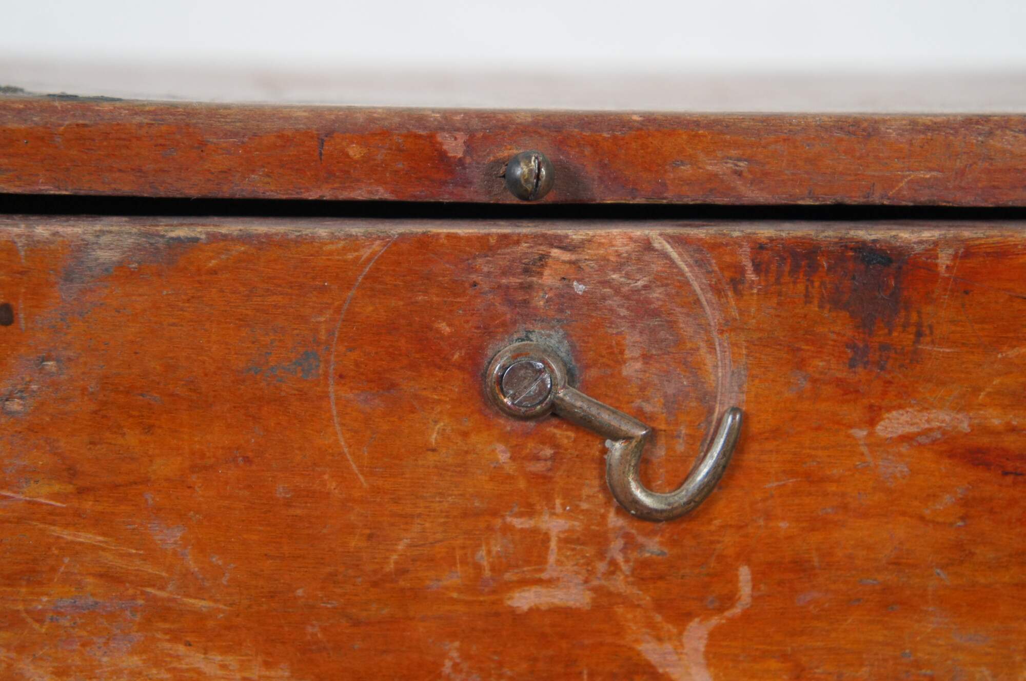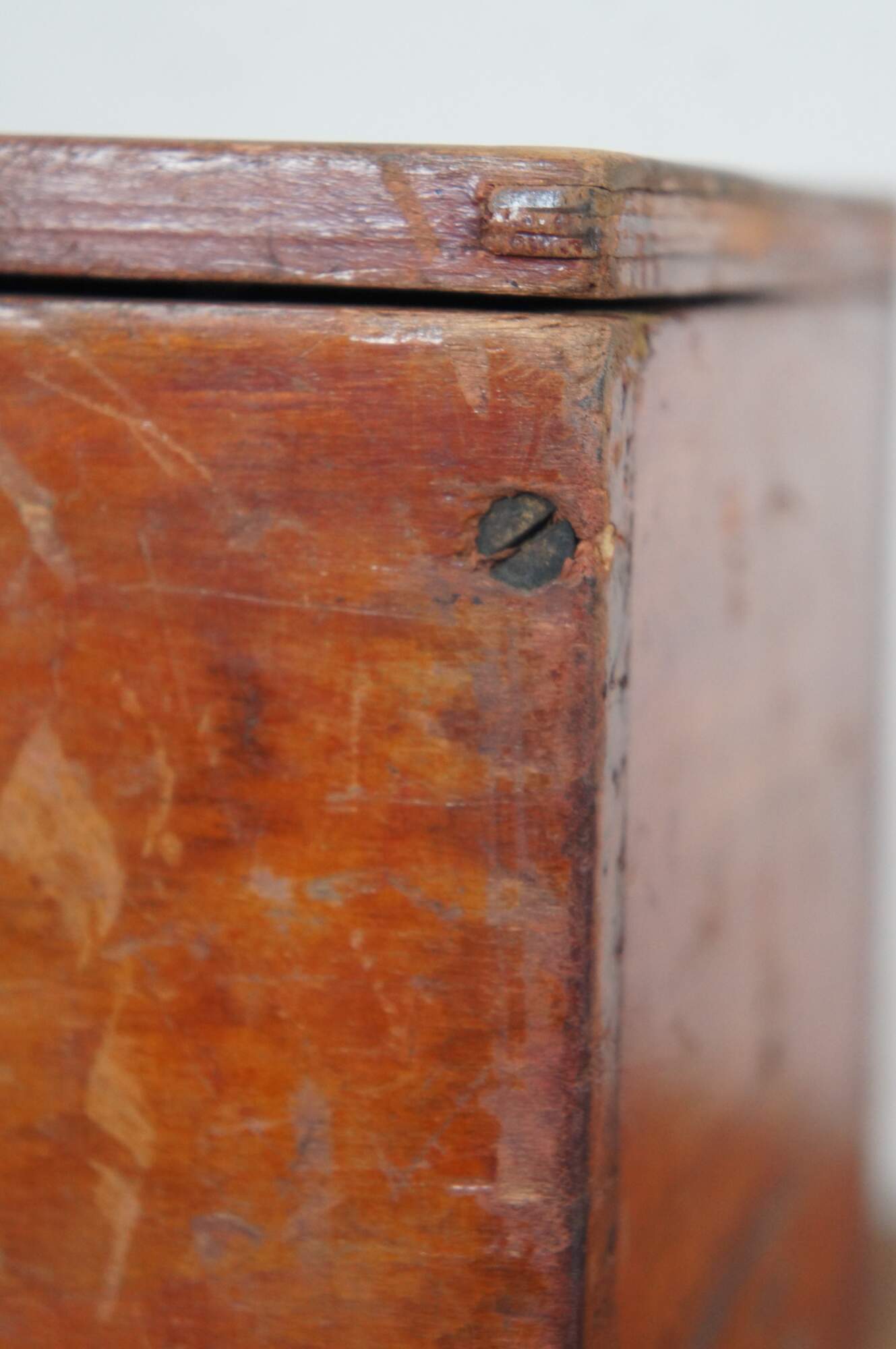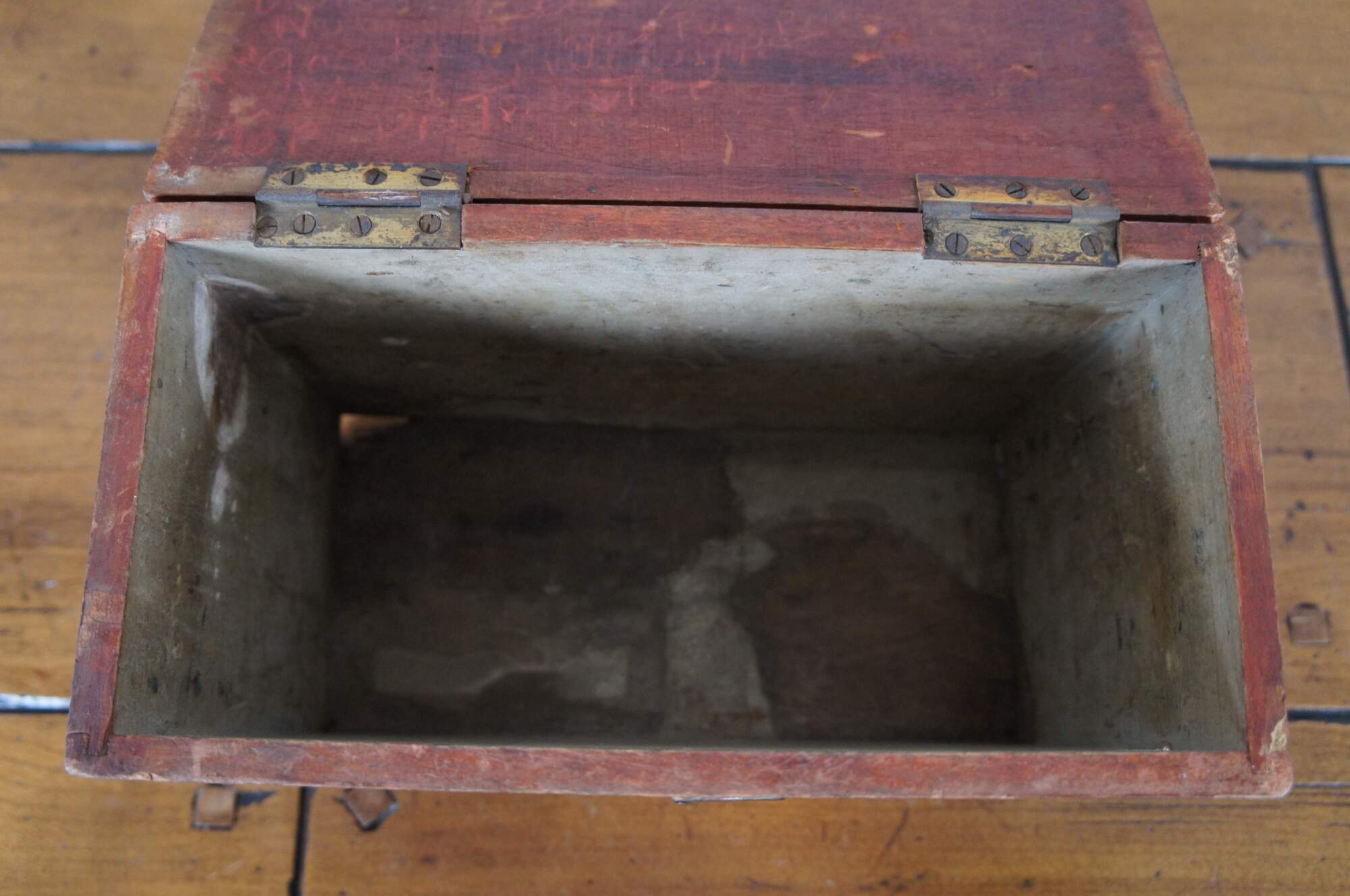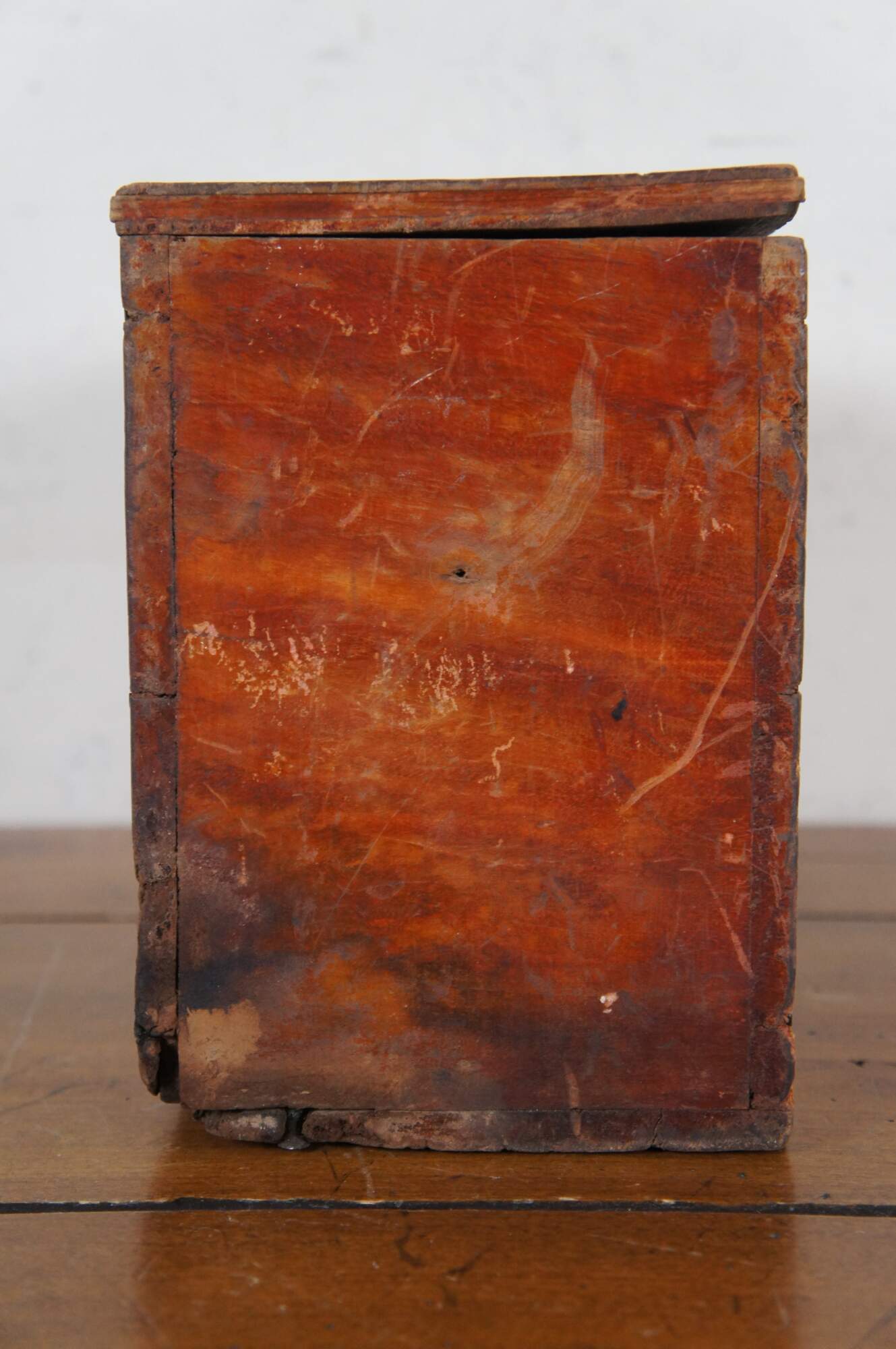 Antique primitive red painted wood keepsake letter trinket storage box with latch.