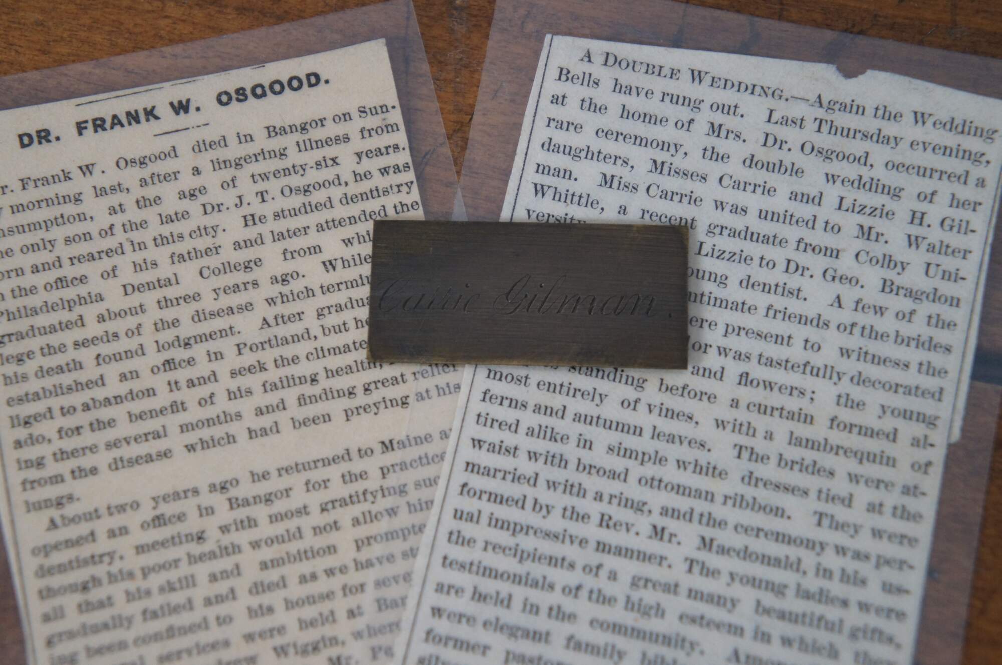 At one point in its history, this slope belonged to a Carrie Gilman of Philadelphia. A laminated newspaper clipping from her double wedding, and her brothers death were inside.