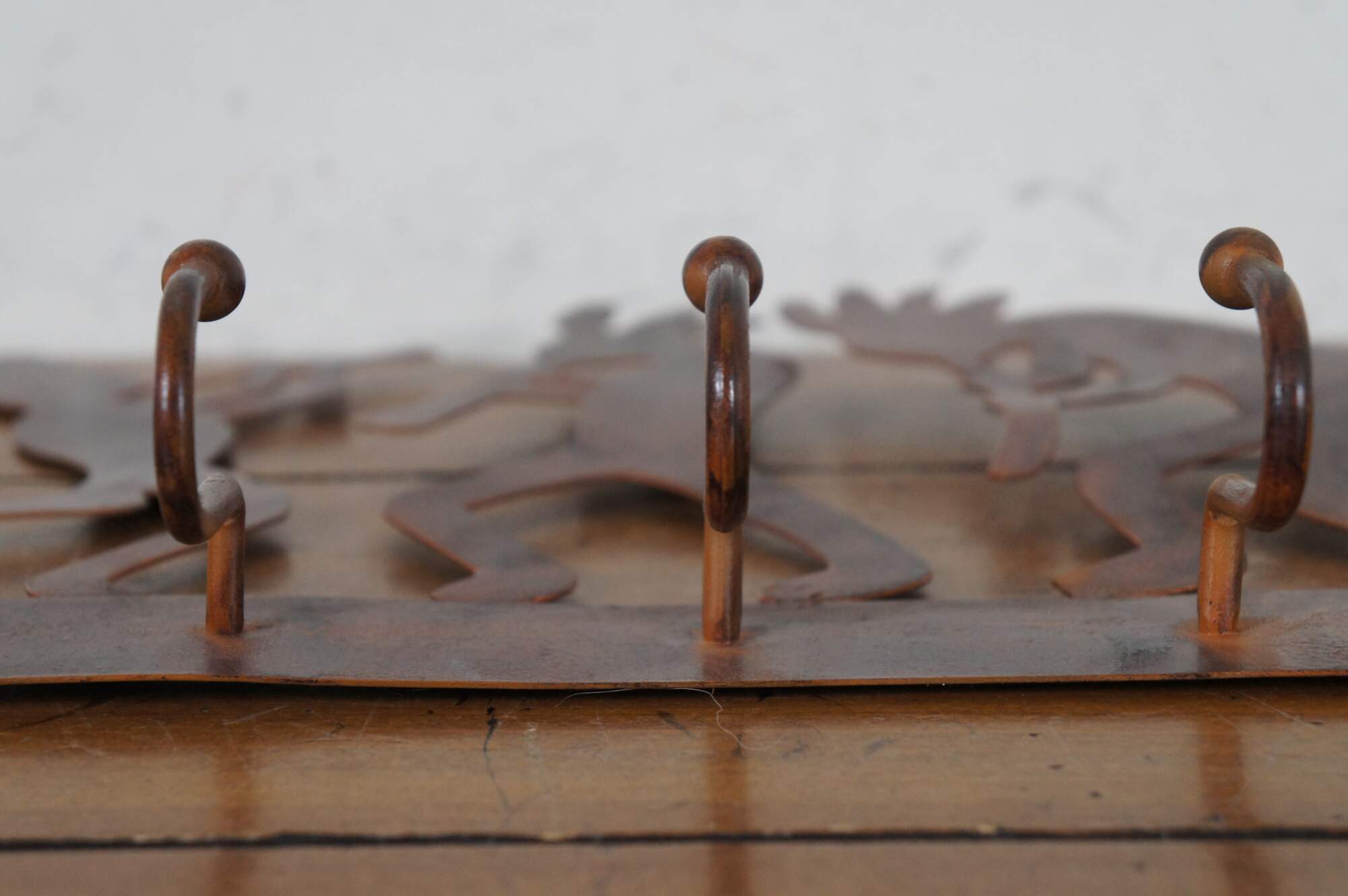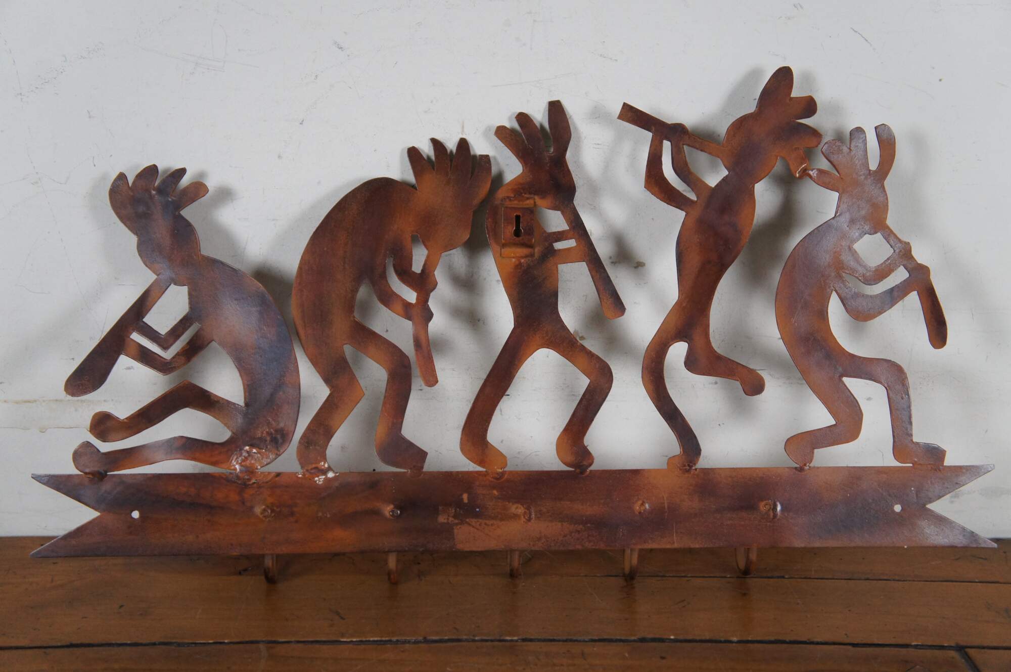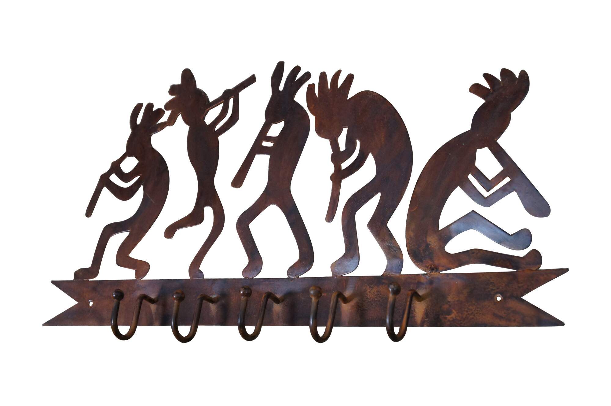 Vintage Southwestern Kokopelli five hook coat or hat rack featuring the classic ancient Indian legend of the hunchback flute player who was a teacher, healer and storyteller; and giver of good fortune and fertility.