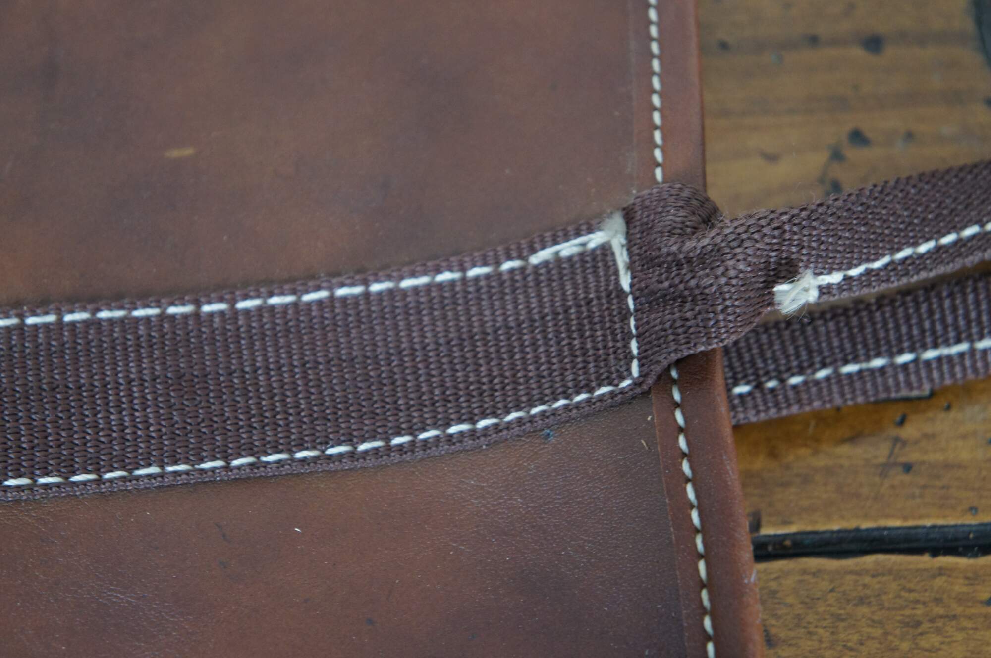Vintage brown leather country farmhouse fireplace log holder / carrier case.