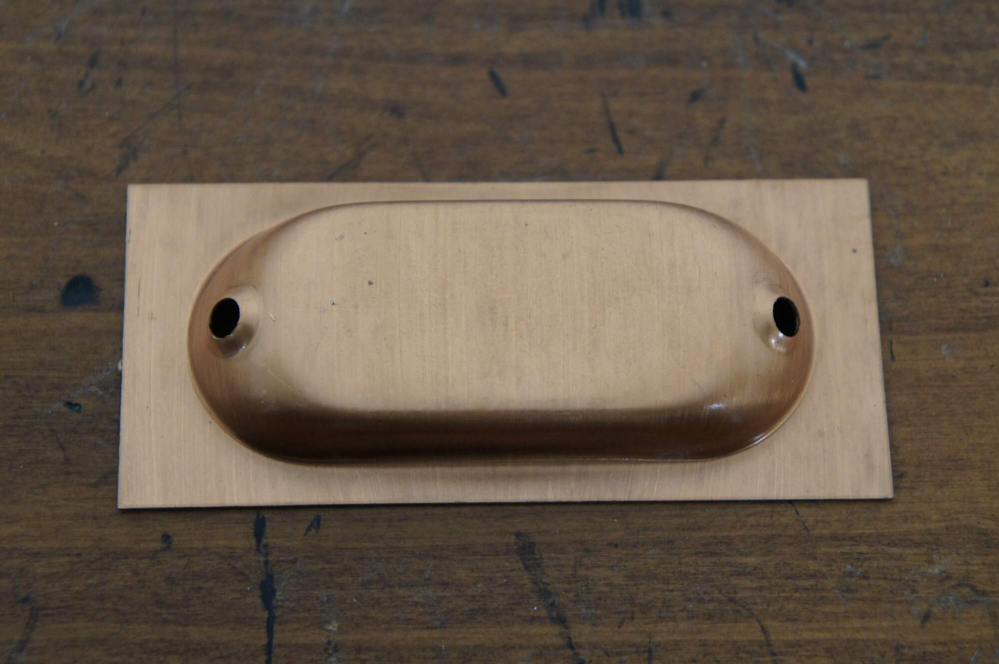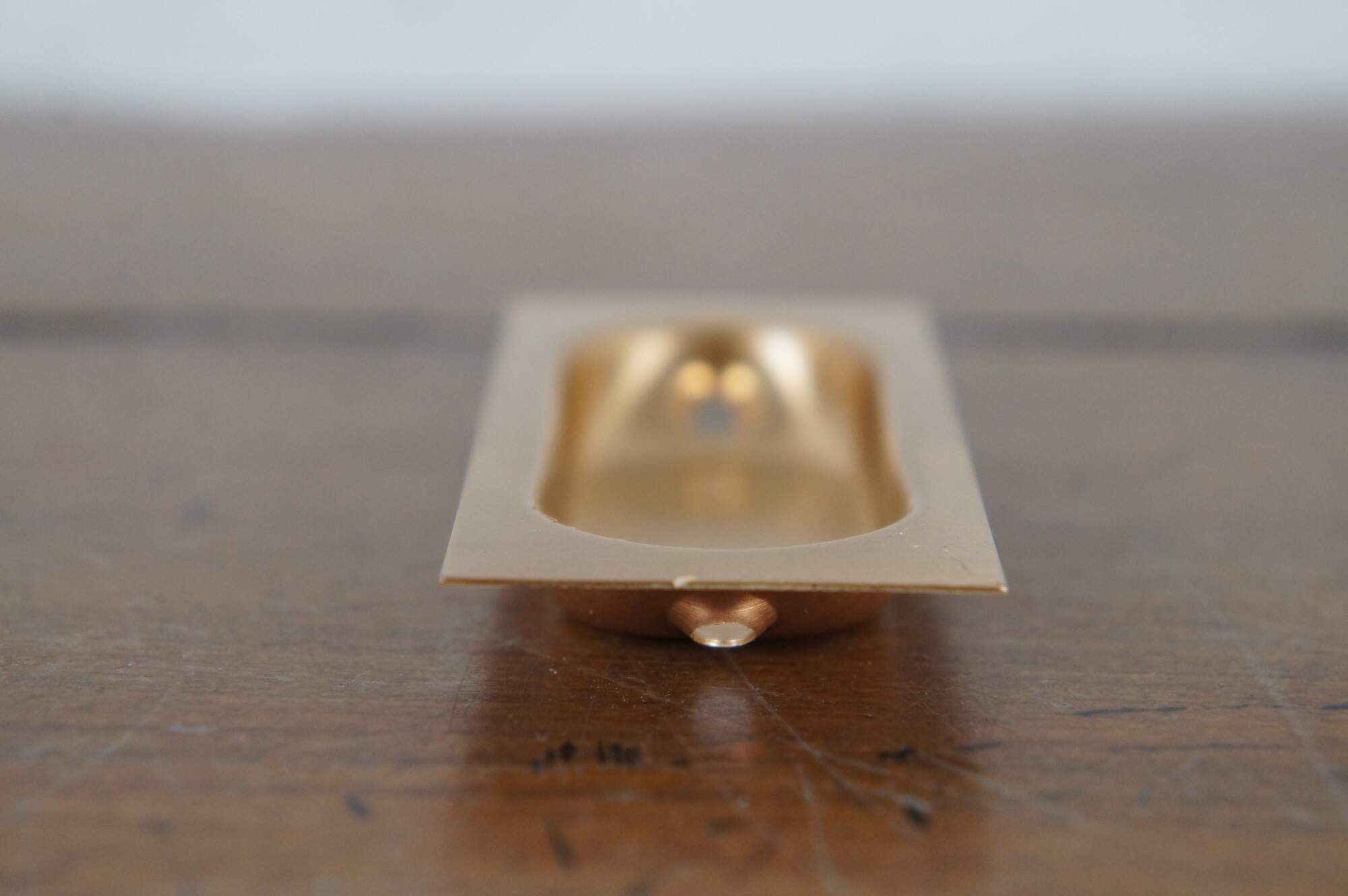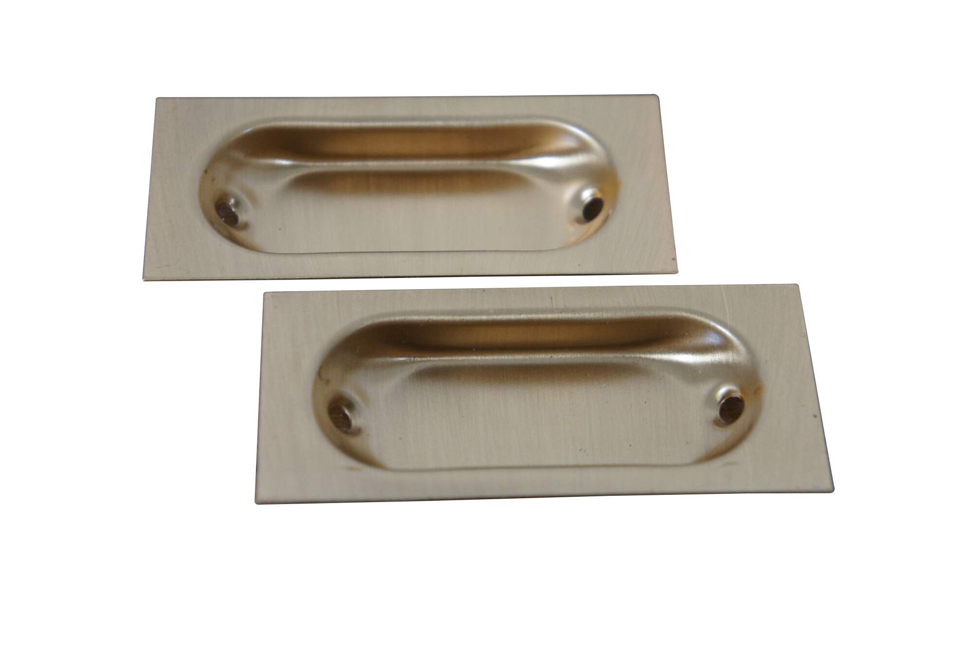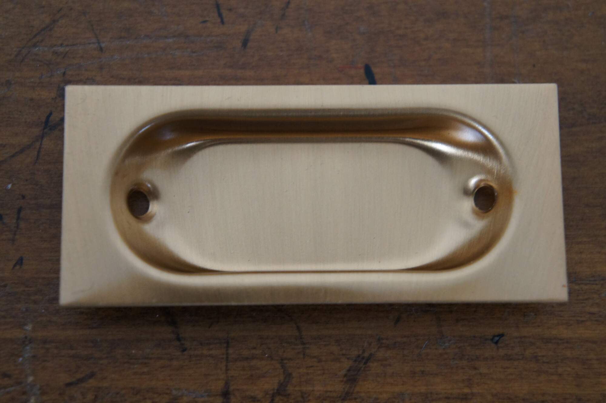 9 (Packs of 2) Available – Vintage Ajax hardware 287 Flush style drawer pulls, crafted in bronze with a rectangular shape with oval divot in a Dull Bronze finish (no. US 10).