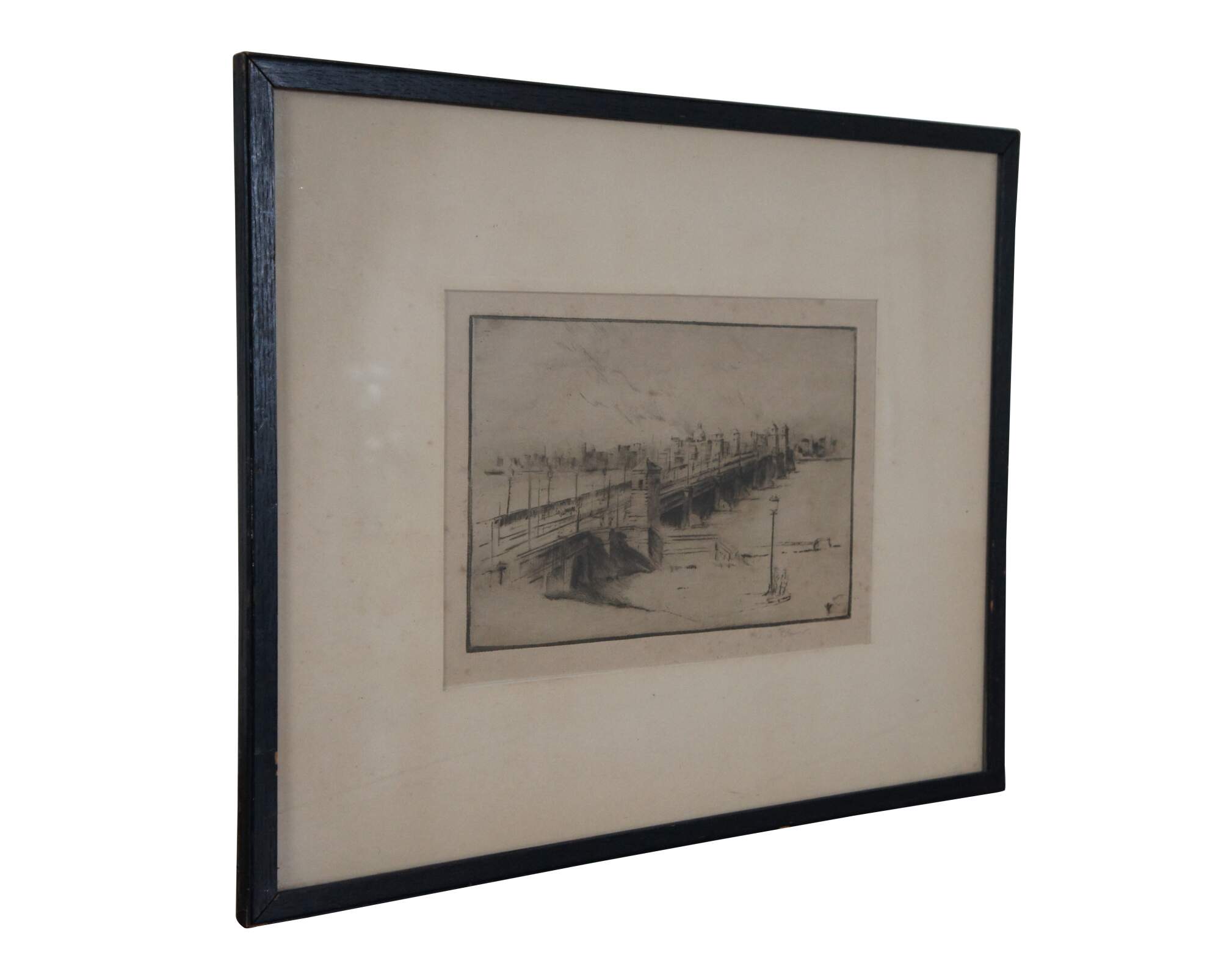 Antique Alexander Blum bridge etching published by Bigelow & Jordan.