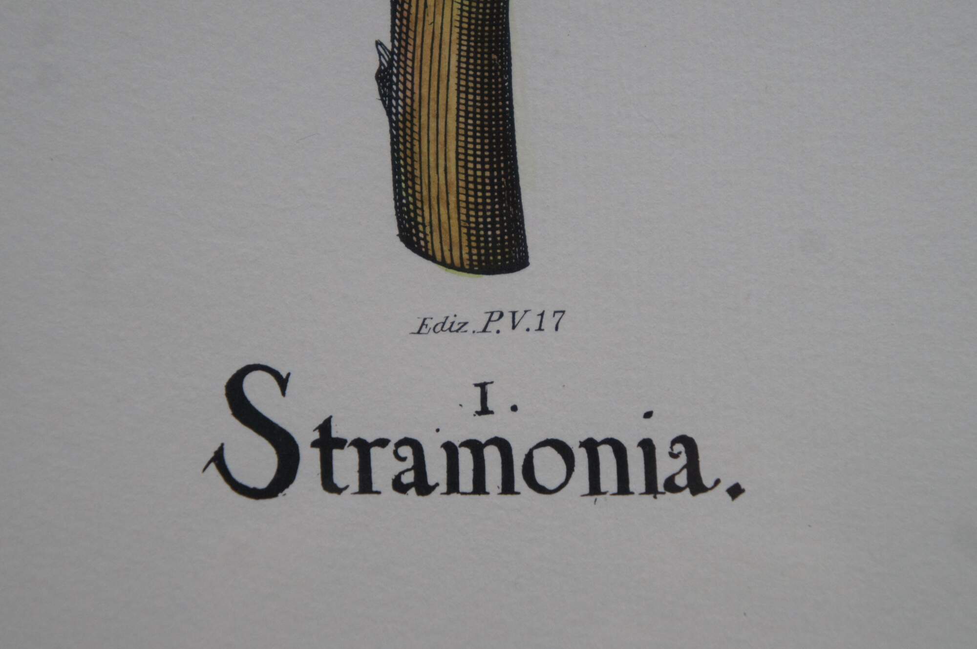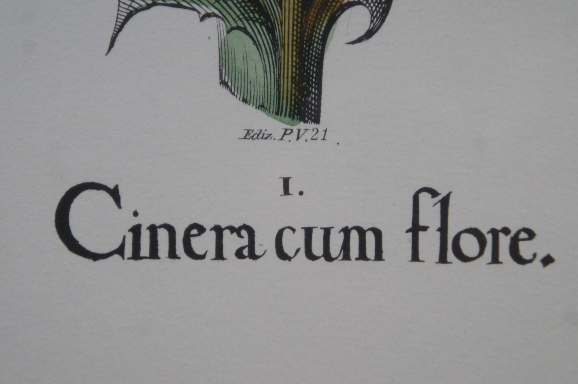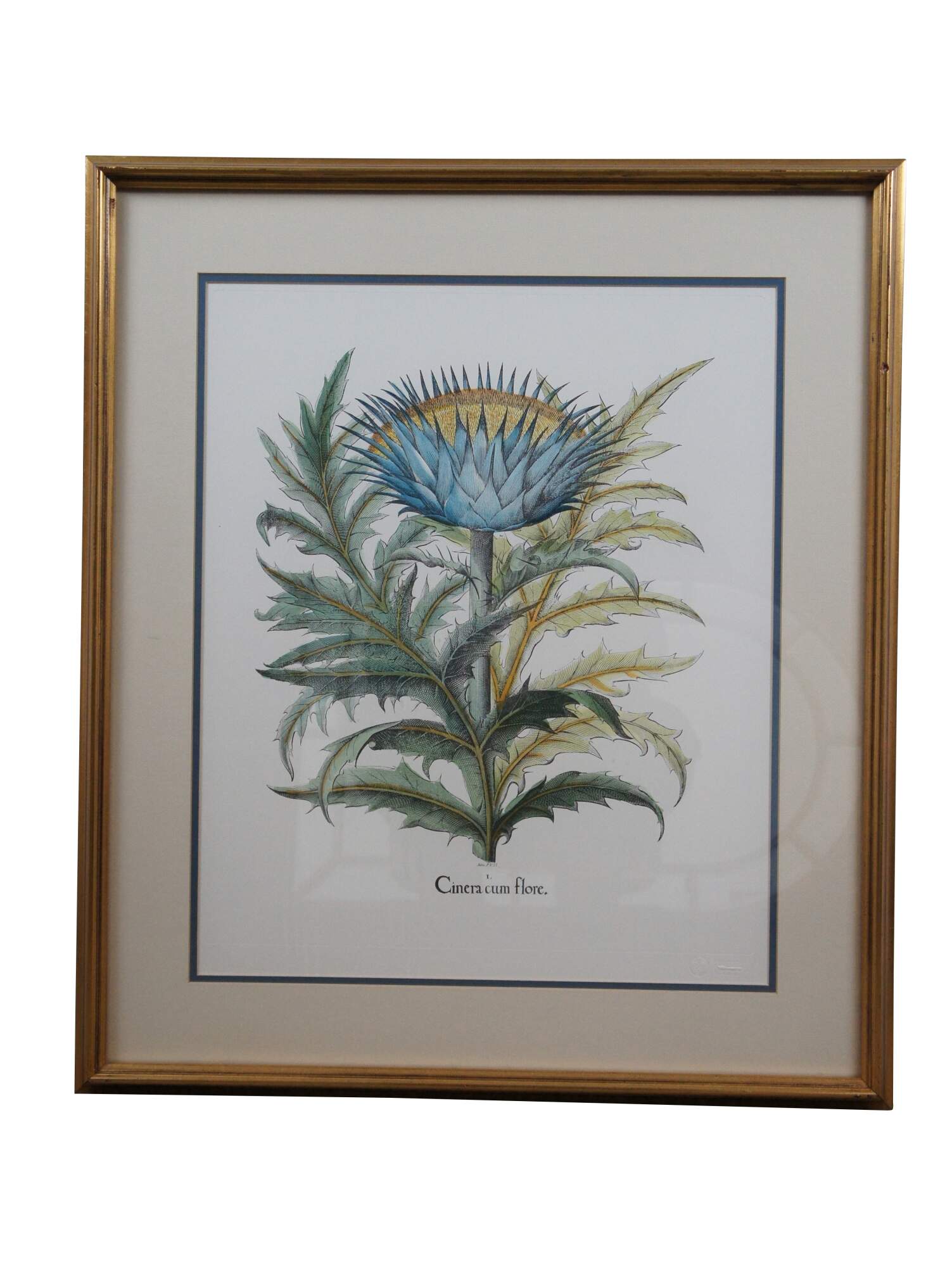 Pair of vintage framed botanical prints. Ediz. P.V. 21 - I - Cinera cum flore. Ediz. P.V. 17 - I – Stramonia / II – Halmus / III – Botris Dracontiamaioi. Produced by Ediz P.V. Fiorenza. Coloritura a mano (Painted by hand) – Originale “Ponte Vecchio” Made in Italy. Fleur De Lis.
