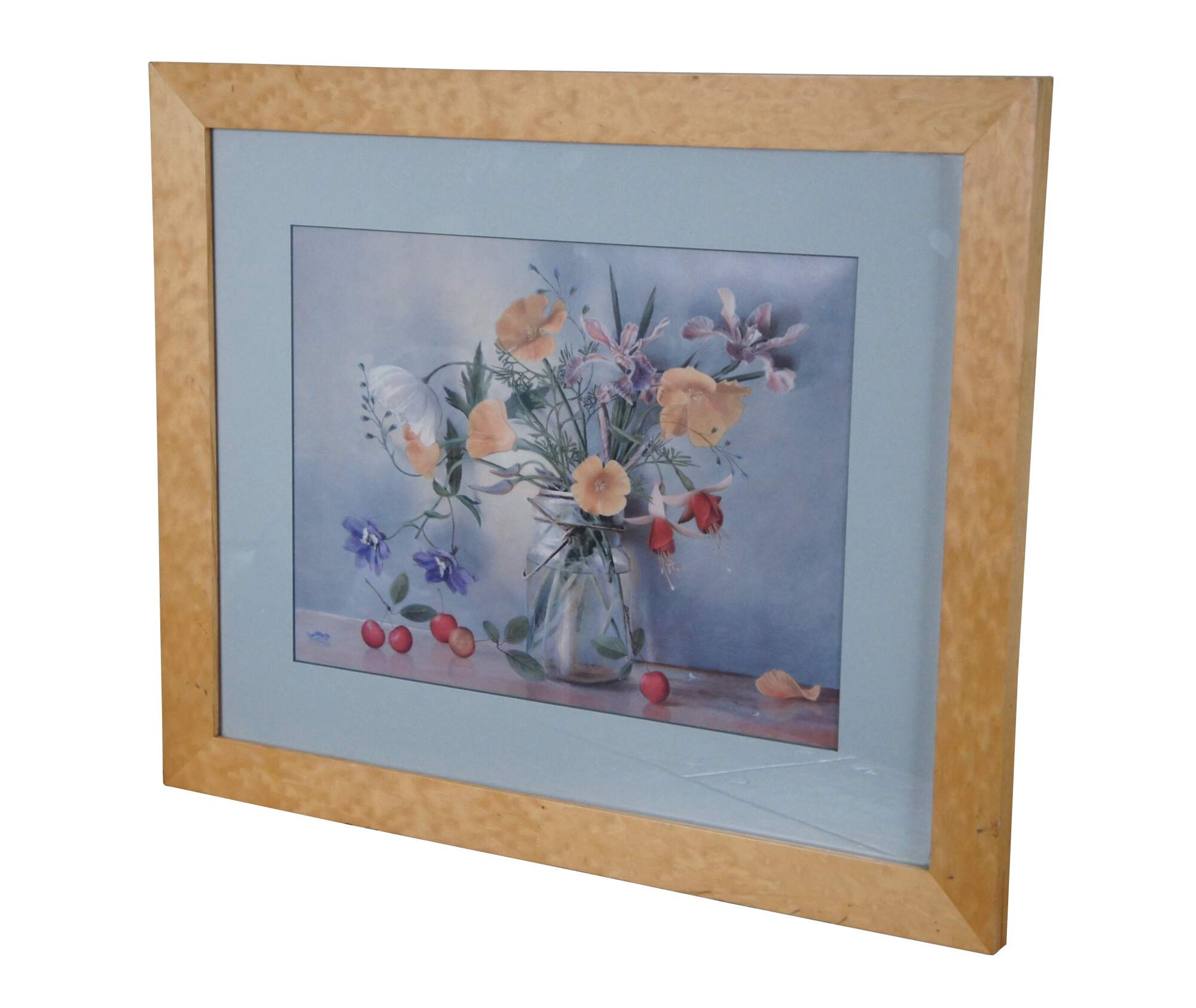 Vintage framed still life print of a bouquet of flowers in a glass jar, titled Mixed Bouquet II by Sally Wetherby.