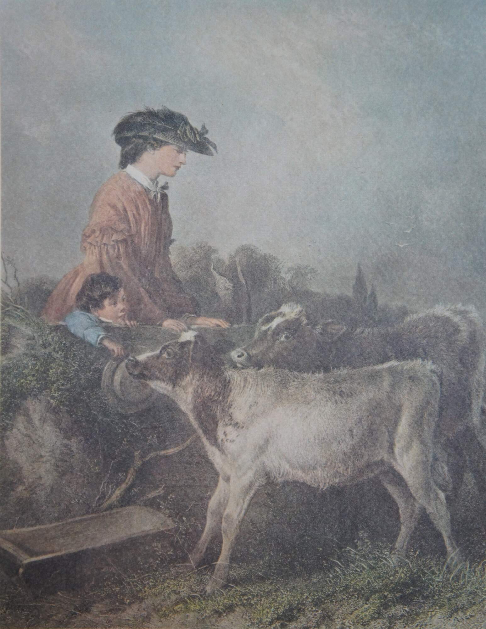 Set of three vintage lithograph prints: "Our Pets" by Edmond Castan, engraved by Thomas Brown for The Art Journal, 1871 / "The Spring" by H. Campotosto (print is incorrectly labeled by the publisher as "The Eft" by H. Le Jeune, engraved by J. Stancliffe and L. Stocks, 1869) / and "In the Pasture" by Richard Ansdell, engraved by C. Cousen for The Art Journal 1869. Printed in Italy by Grafiche Tassotti. Framed by Gargoyles Studio Fine Reproductions of Brooklyn, New York. Item number 1003.