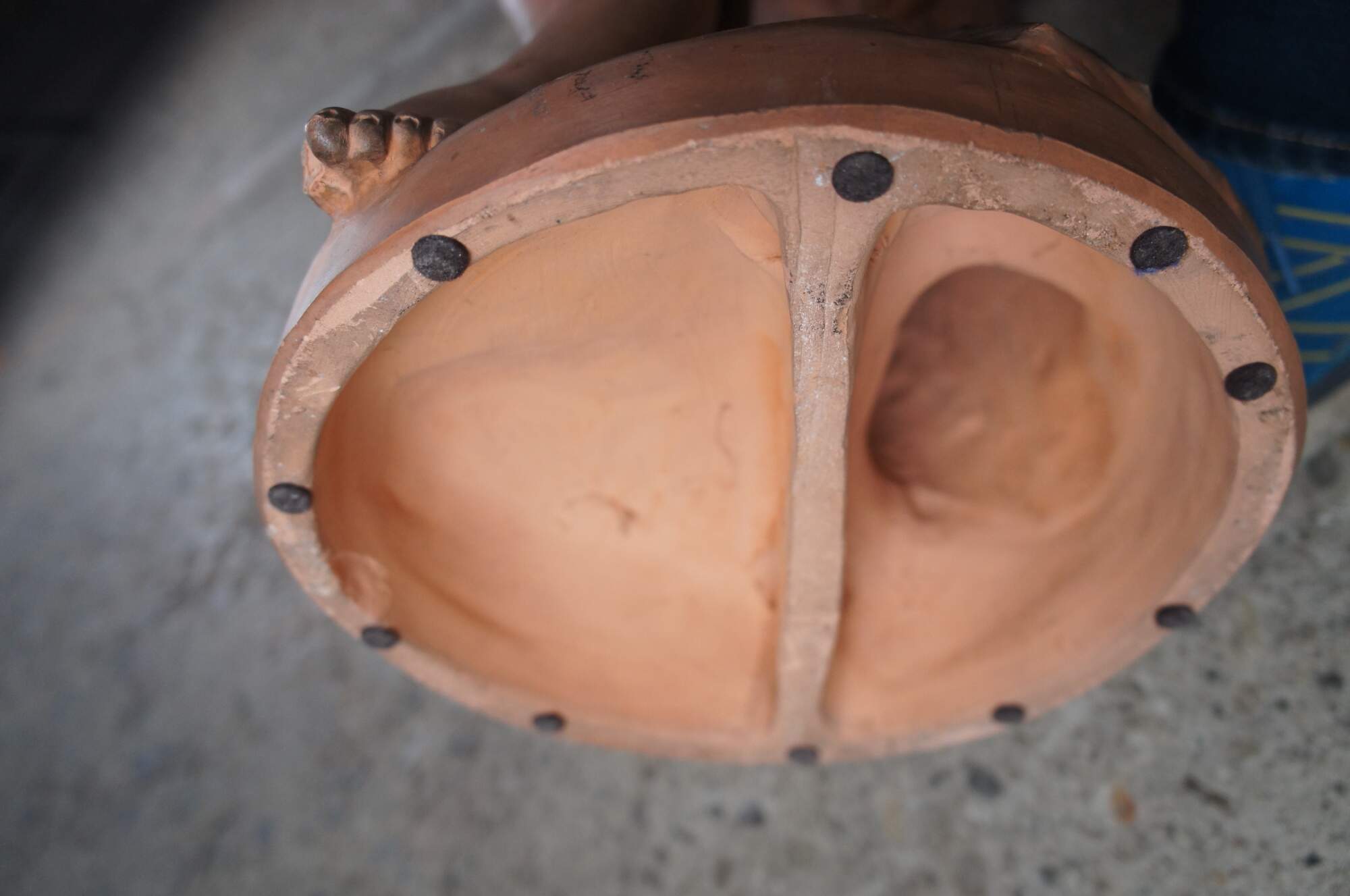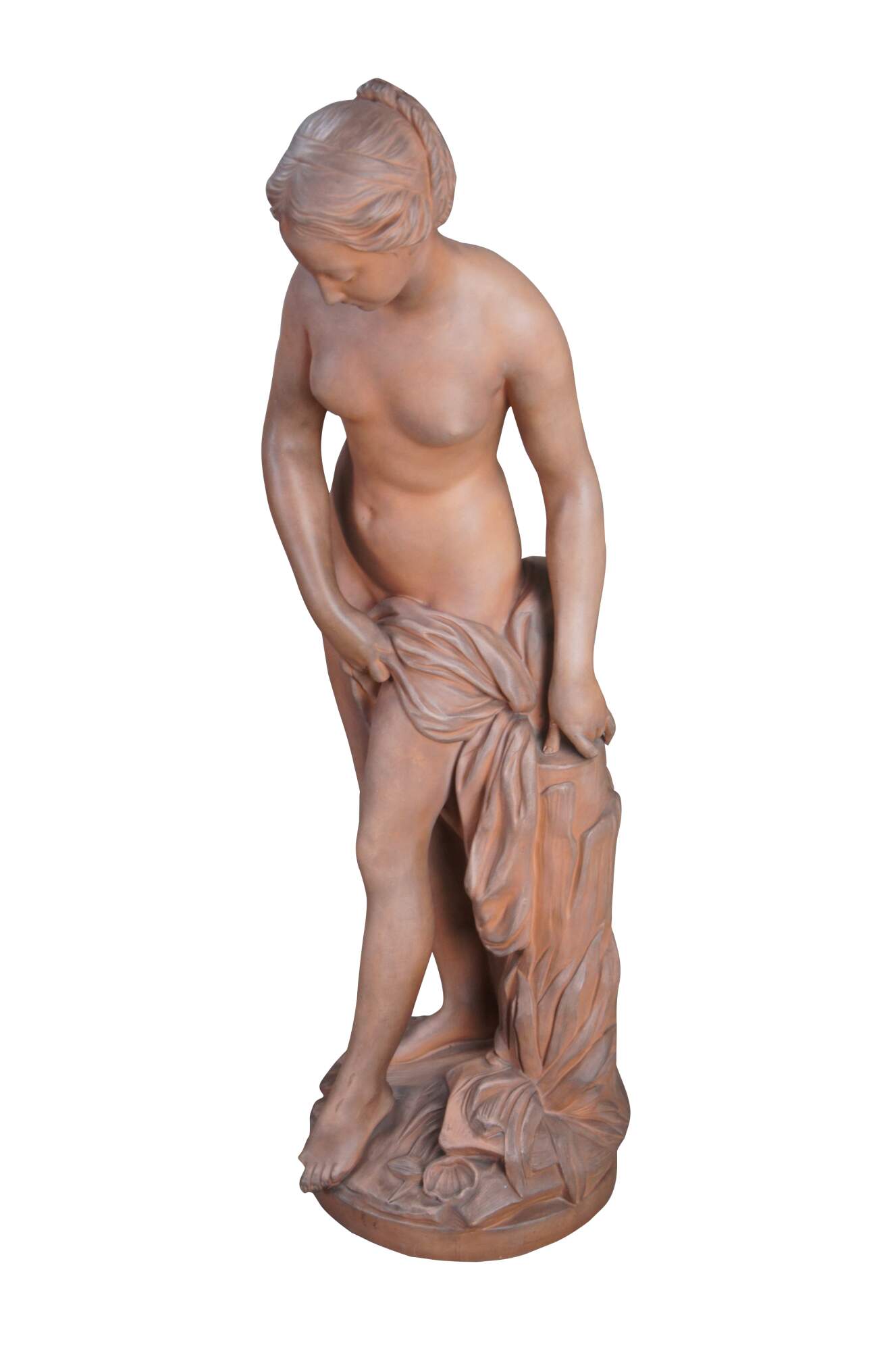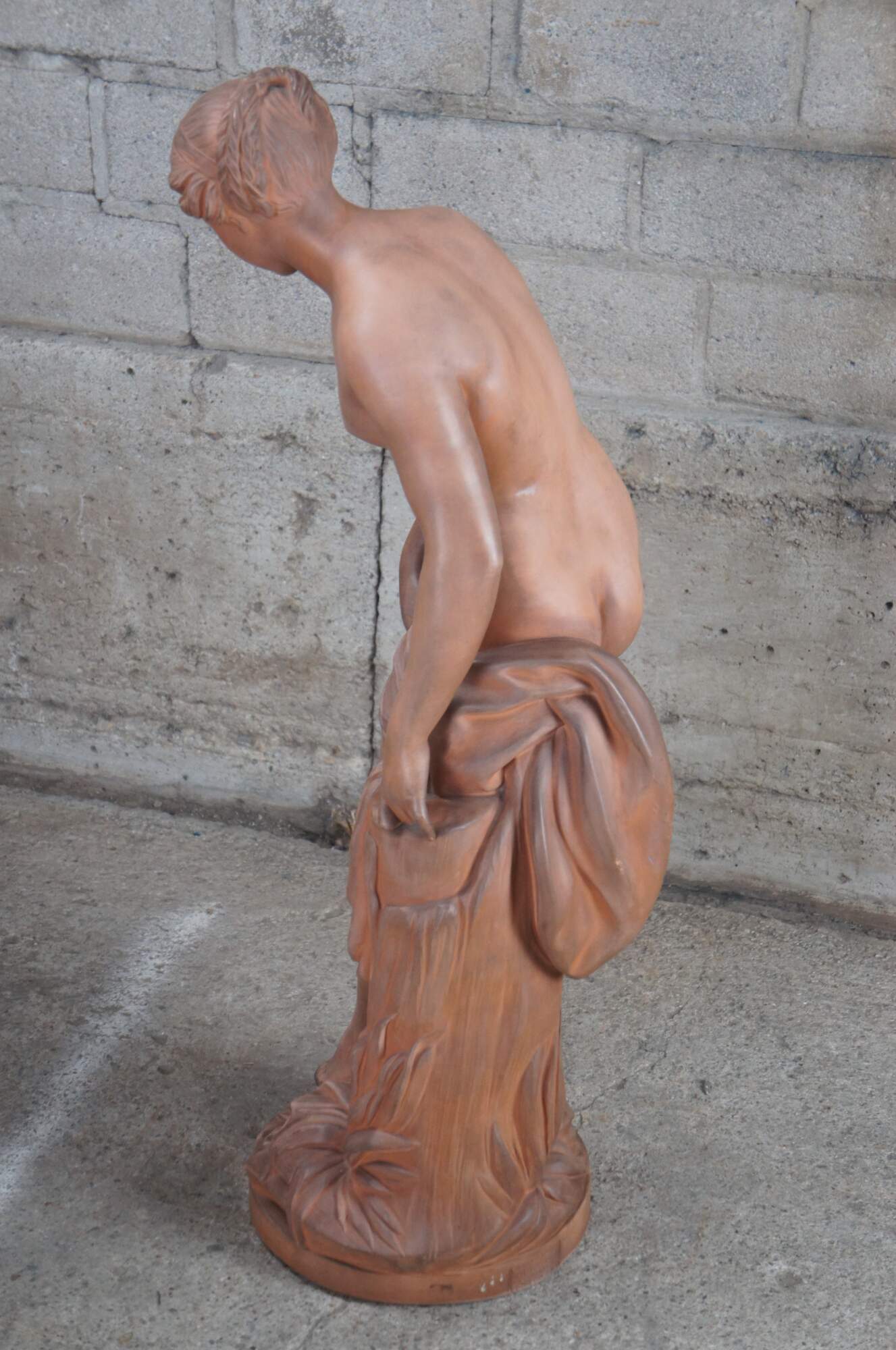 Vintage terracotta bathing woman sculpture, titled La Baigneuse, after the work of French artist Etienne Maurice Falconet.