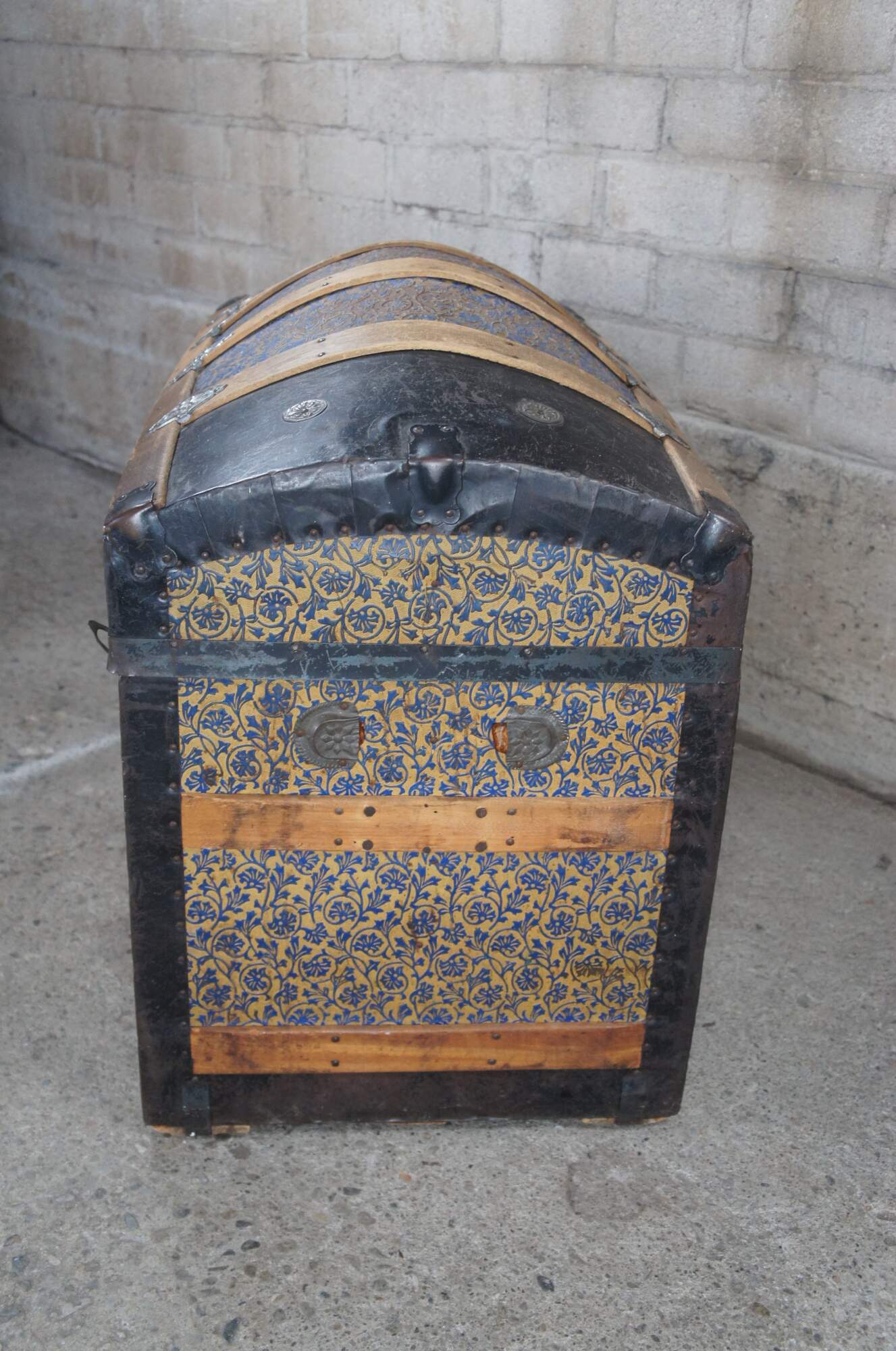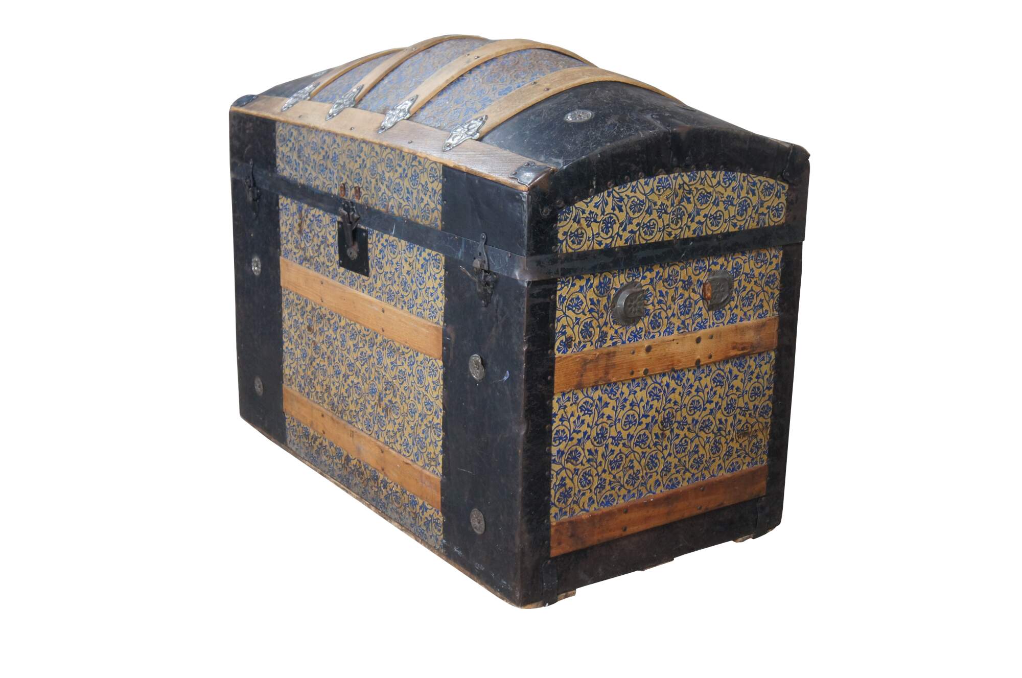 Steamer trunks, also known as cabin trunks or traveling trunks, were originally used as luggage for extended trips by steamship, train, or stagecoach or for taking to boarding school. Many were quite elaborate inside and out. Steamer trunks have a distinguishing curved or barrel top and can weigh as much as 100 pounds. Today, they are used as furniture or storage.