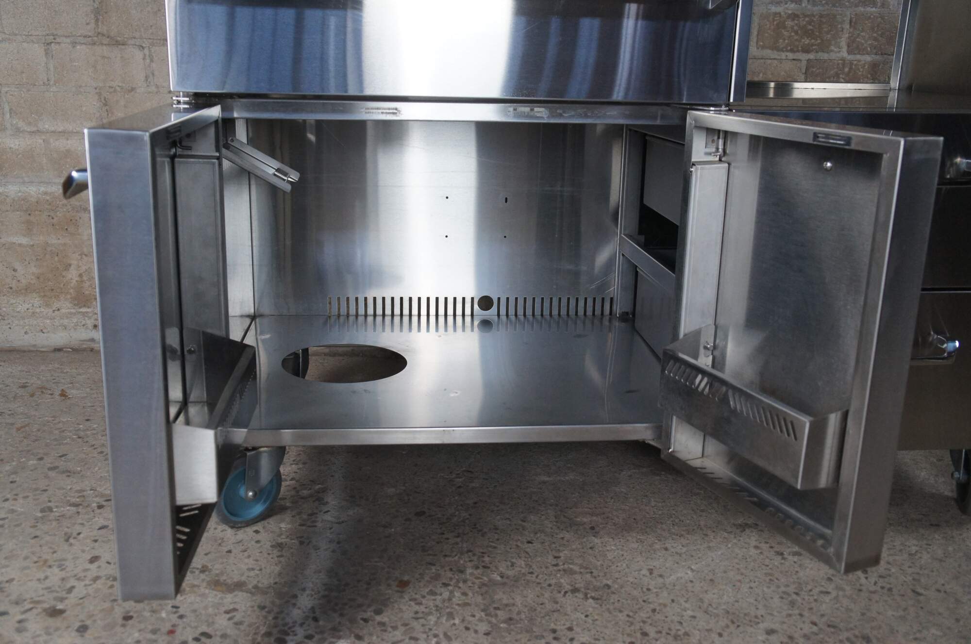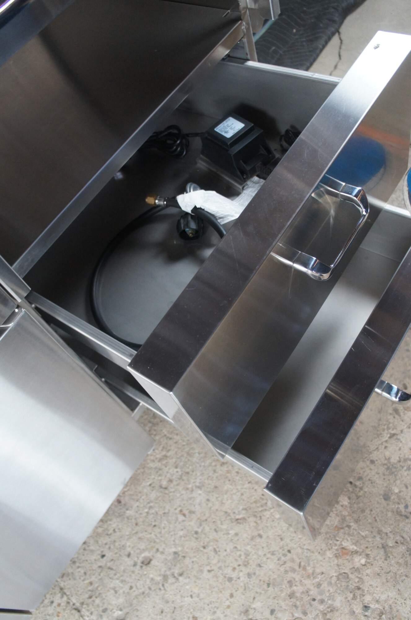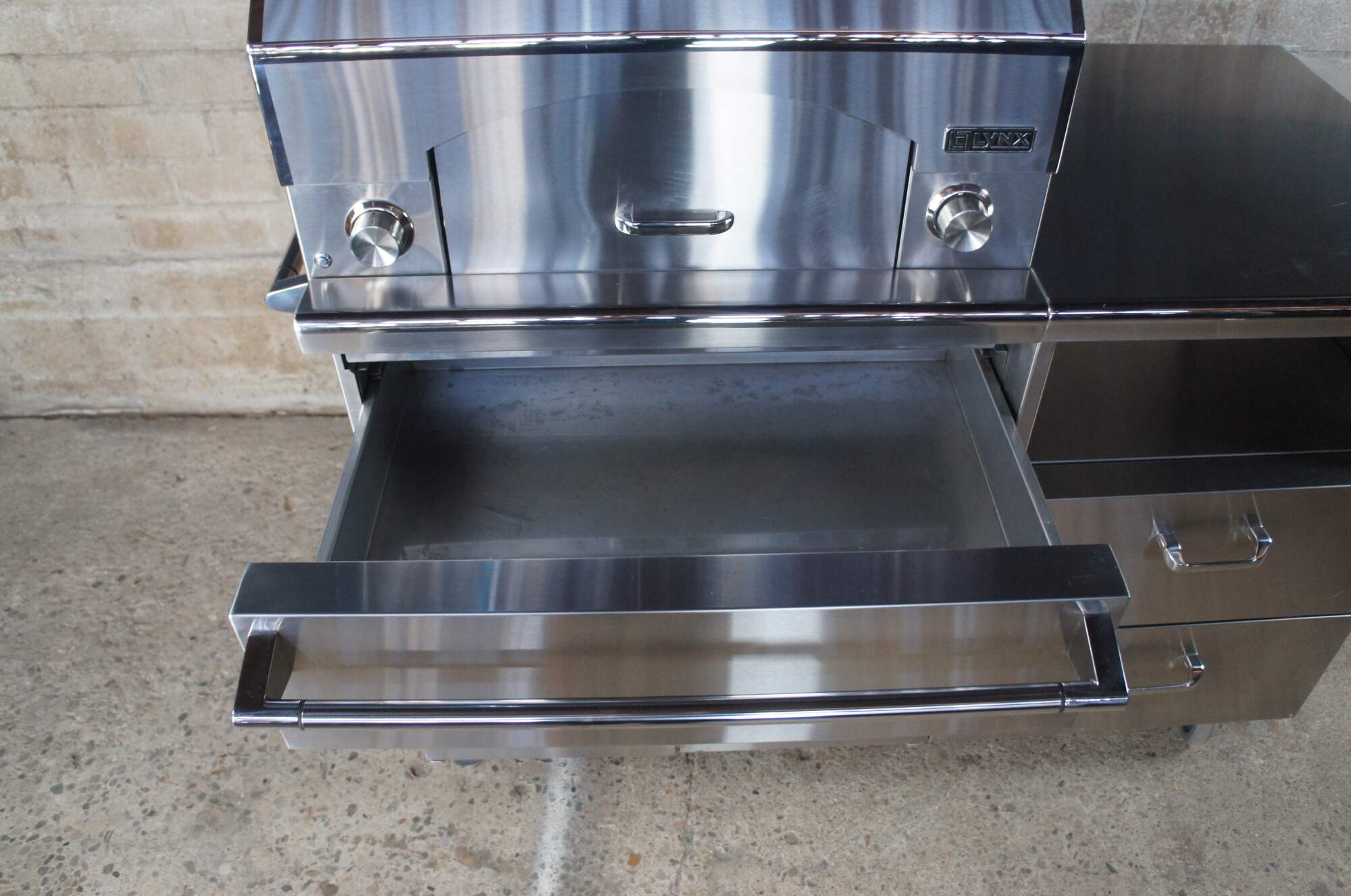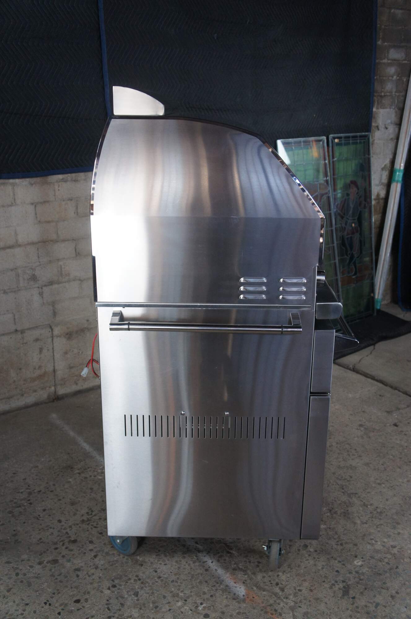 This freestanding natural gas pizza oven will be the center of attention at your next gathering. With the capacity to bake a 18 inch pie, the inside hosts a specially formulated concrete heat-retaining dome and 400 square inch cooking surface which is perfect for the high heat demanded. The variable infrared heating system is designed to quickly preheat to 700 degrees Fahrenheit, saving energy. The front door seals the pizza oven closed, focusing the heat on the pizza. Unique in the industry, the cooking surface pulls forward for easy access to last minute topping adjustments or pizza removal. Night-time pizza baking is no issue with blue LED control knob illumination and interior halogen light. The outside is made of stylish and sturdy stainless steel with hand-polished mirrored edges for a professional, yet fun, look. The pizza oven comes complete with the freestanding cart that has a surface for food prep, 3 drawers and adouble-door cabinet. Reversible top chimney lets you control where the smoke and heat go, so as not to mar walls or bother guests. Endless hours of quality cooking, conversations and fun is sure to follow when using this Napoli Pizza Oven by Lynx.