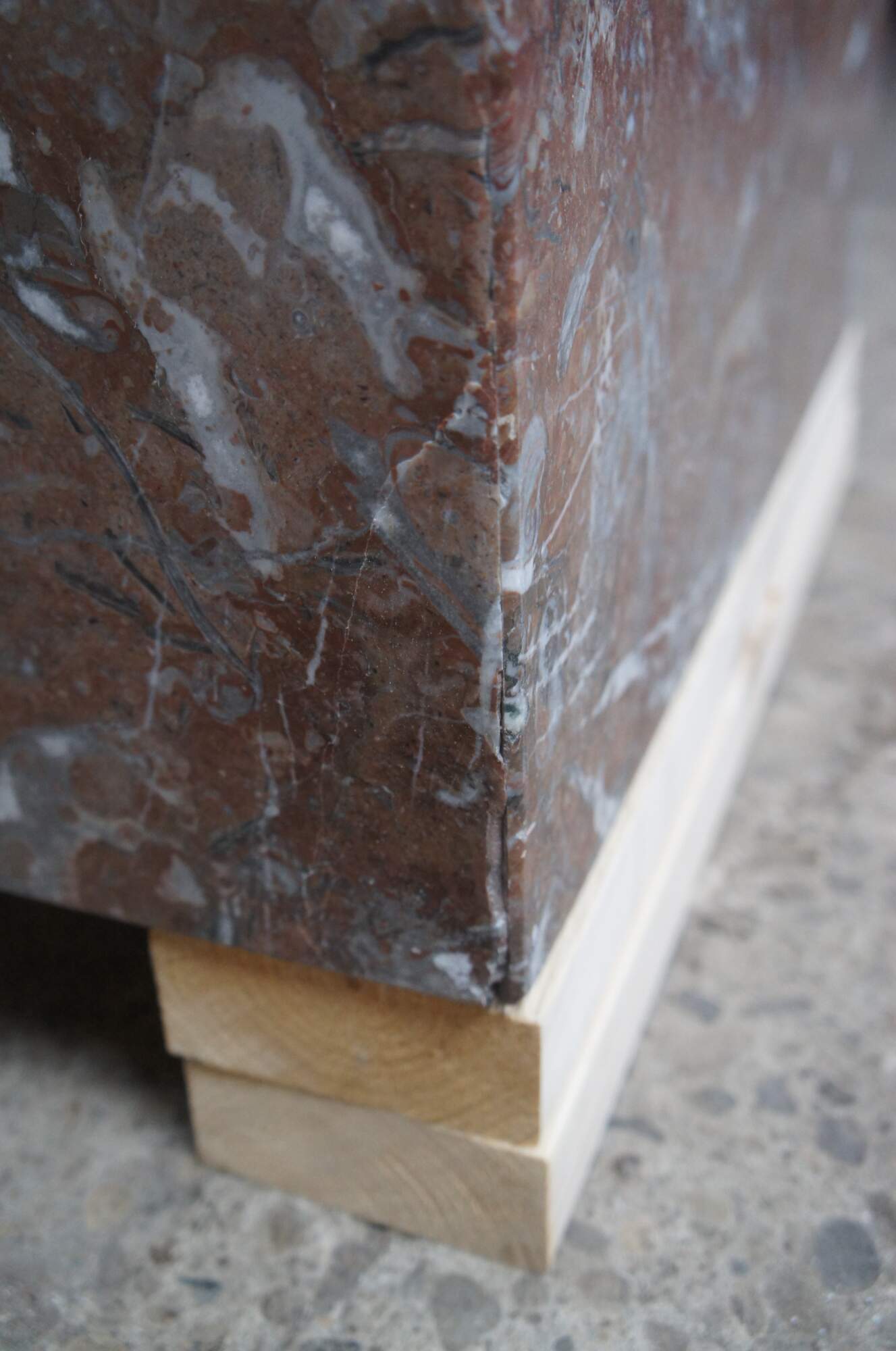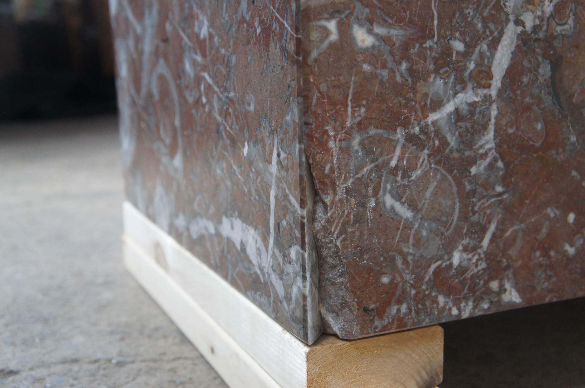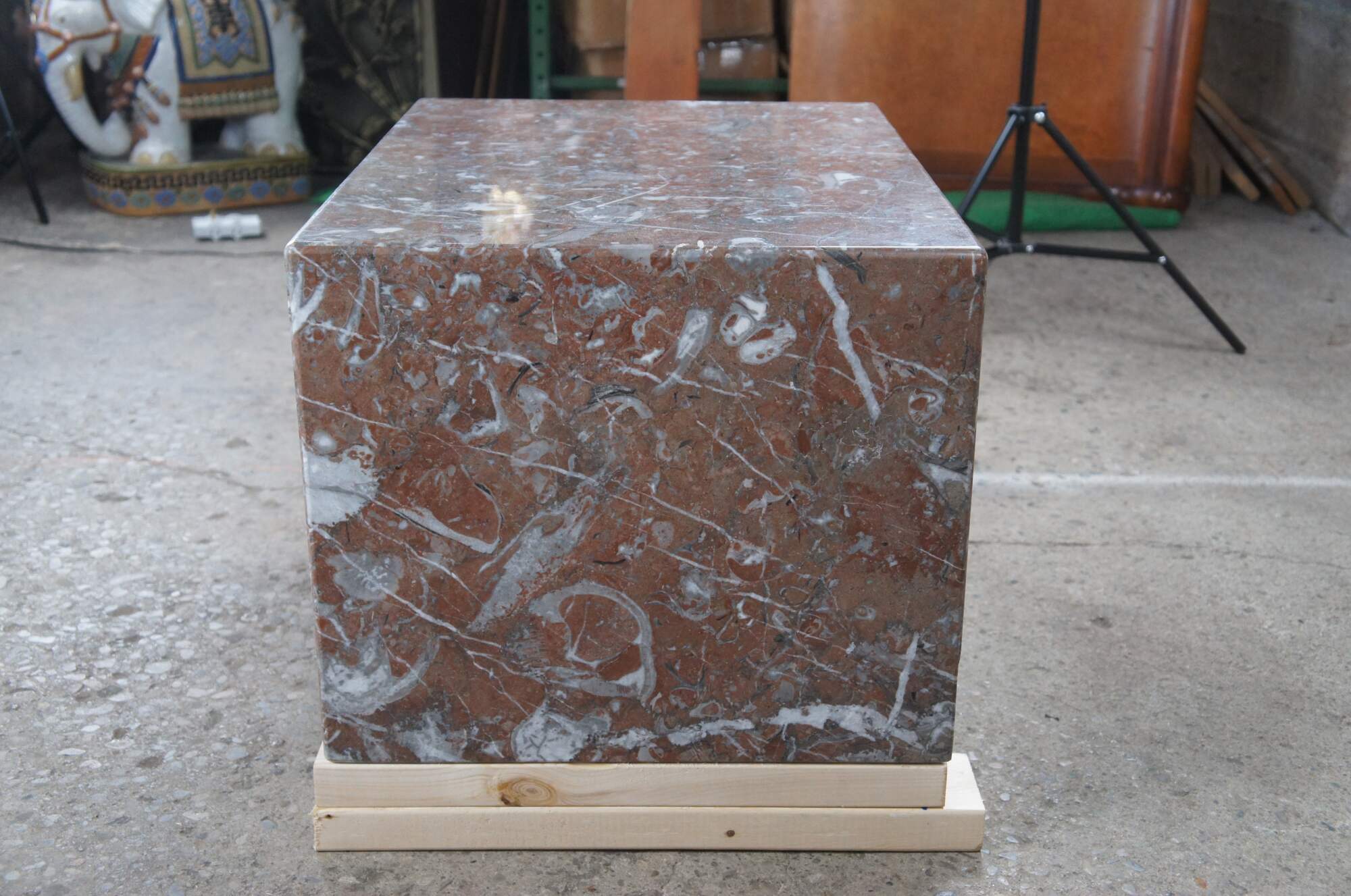Italian minimalist cube form plinth, circa 1970s. Made from marble with pink and grey color. The perfect base to display any heavy object, sculpture or statue. Can also be used as an end, side or coffee table. The plinth is extremely heavy. 2 Available, sold separately.