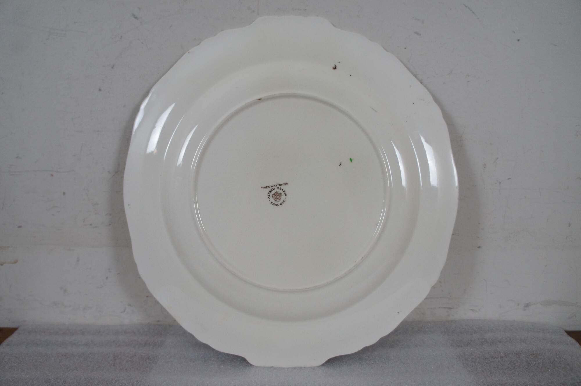 "George Jones & Sons Ltd - Manufacturer of earthenware, majolica and china ware at Stoke, Stoke-on-Trent. At the age of 14 George Jones started a seven year apprenticeship with Minton. After completion in 1844 he worked as a traveling salesman for Wedgwood. By 1850 George had established himself as a successful pottery merchant and by 1856 he had opened a pottery showroom in Glebe Street, Stoke. George started manufacturing around 1861 at the Bridge Works, Stoke, as George Jones & Co. In 1864 he purchased land from Colin Minton Campbell and in 1865 the company moved to the newly built factory - the Trent Potteries. Production of majolica ware started in 1865. From 1872 china production was started. By 1873 the two eldest sons, Frank Ralph Jones and George Henry Jones became partners in the business which was renamed George Jones & Sons. 'Crescent' was registered as a trademark for the new company. In 1894 the business was incorporated as George Jones and Sons Ltd. George Jones died in 1893 - the business continued under the name 'George Jones & Sons'. Around 1907 the works were renamed 'Crescent Potteries.' From the 1920s Cauldon Potteries Ltd. and Coalport China Co. Ltd. had moved their manufacturing to the Crescent Potteries and were sharing the works with George Jones & Sons Ltd. In 1929 the Jones family ownership ended when Walter Bakewell (who was the managing director) bought the business. In 1933 Harrison & Son (Hanley) Ltd bought out Bakewell's controlling shareholding. c.1947 there was some modernisation of the Crescent Works. Manufacture of Coalport and Cauldon was favoured. Use of the Crescent China trade name ceased around 1951. 1957 George Jones & Sons Ltd ceased trading and in 1959 the Crescent works were demolished."