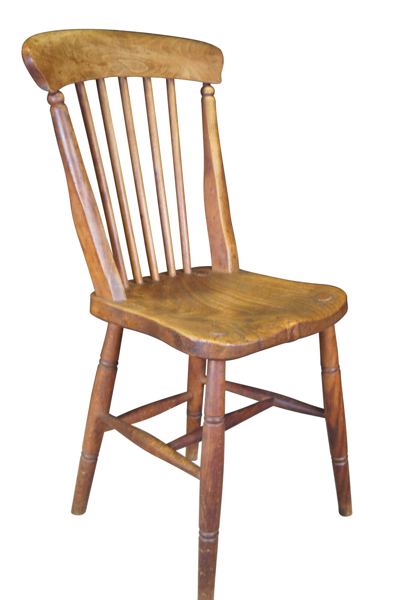 Six antique Glenister primitive elm dining chairs from Wycombe England. Circa 19th Century.