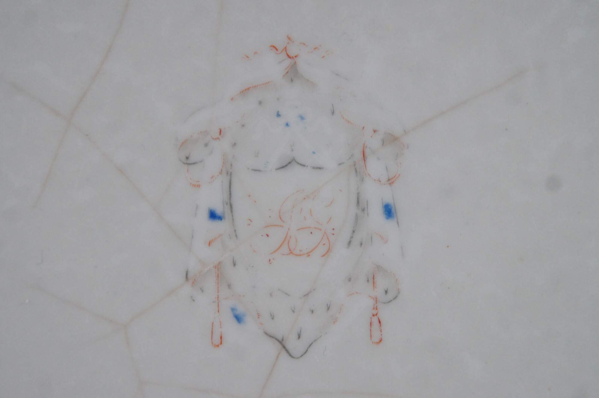 Fair Condition - Several chips at edges; some scrapes/crazing; heavy wear to center decoration