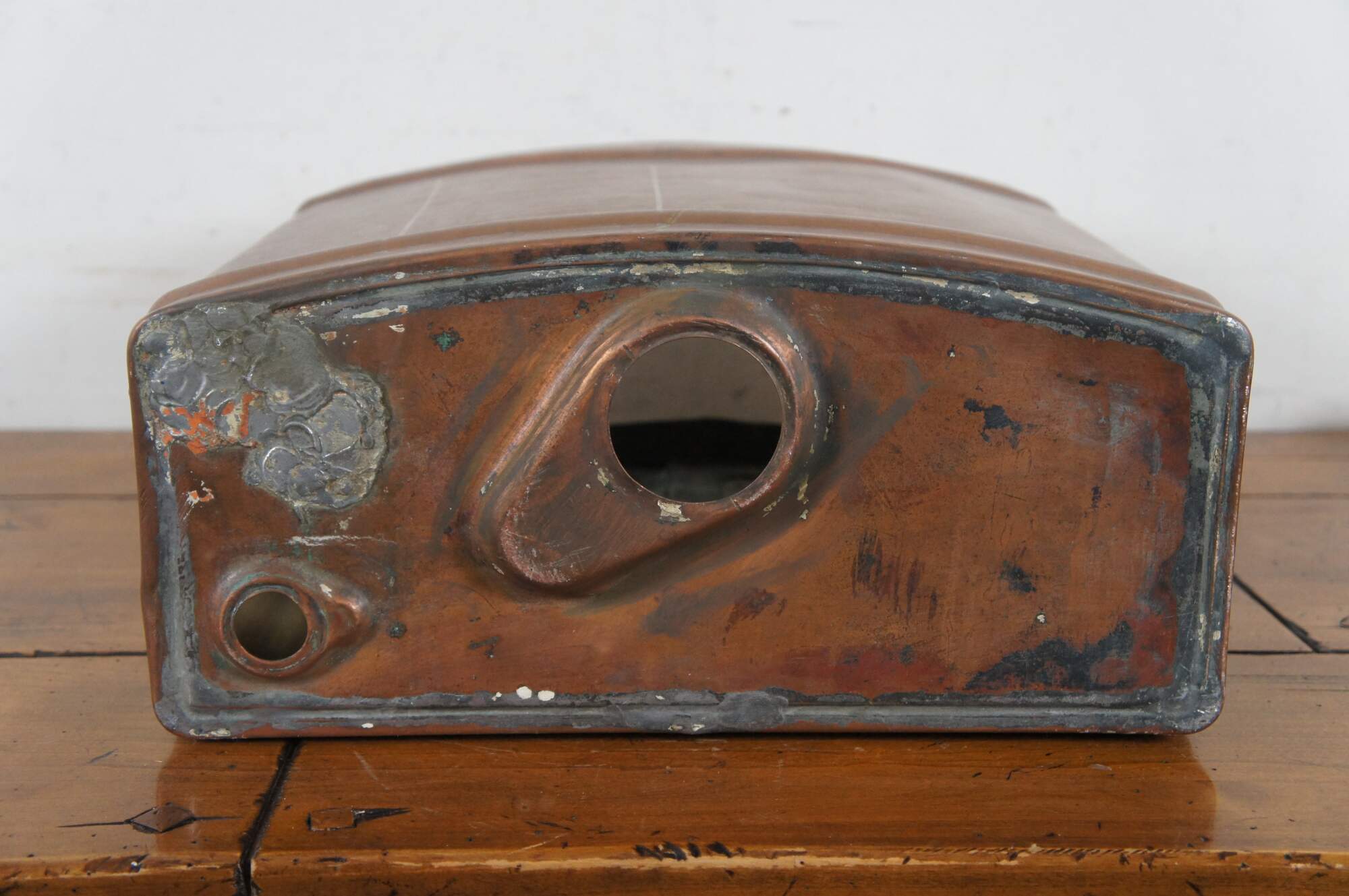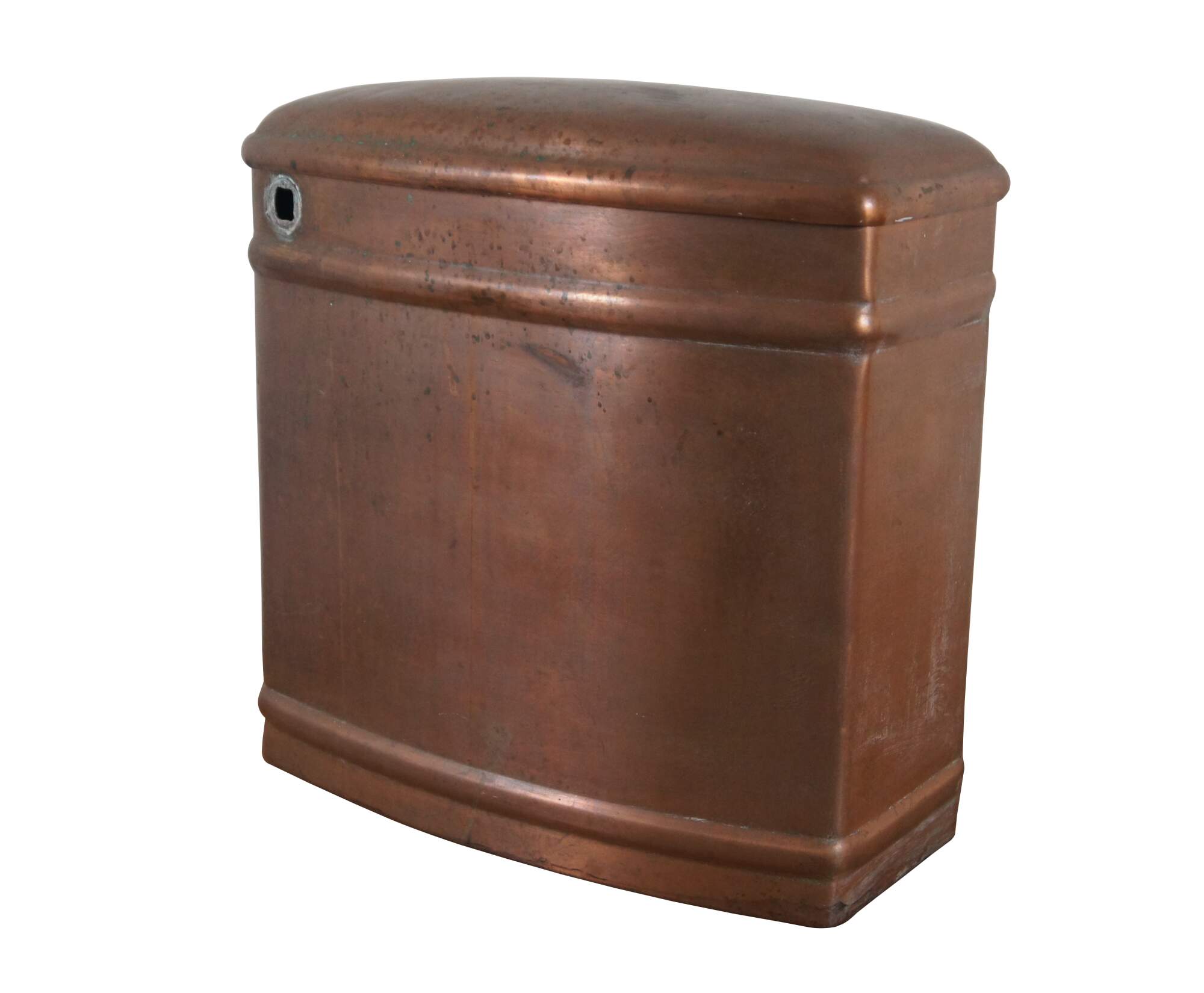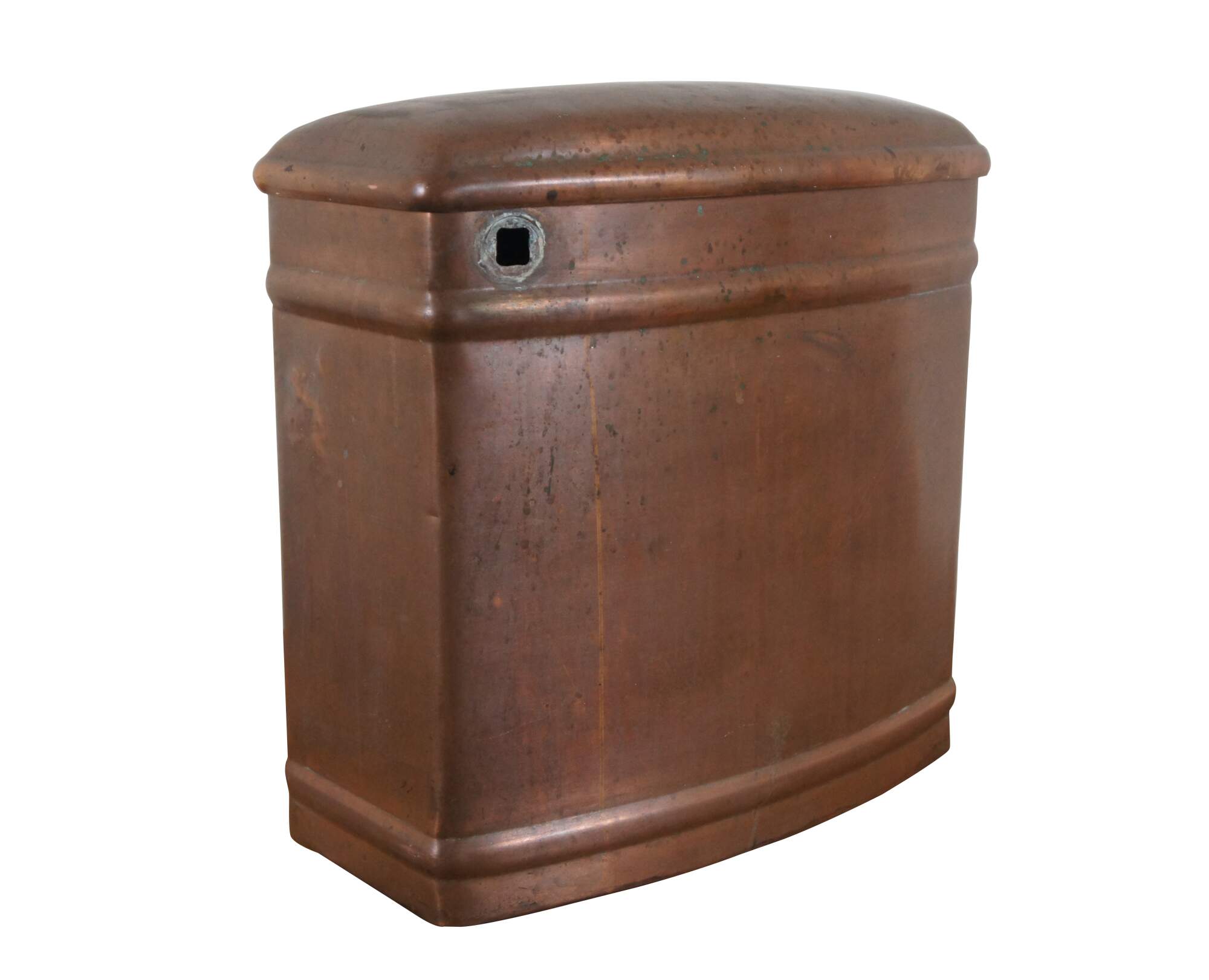 Late Victorian antique copper toilet tank by White-Copper. Made from 24 ounce copper. Includes brass / white porcelain handle / flush lever by AAB Co.