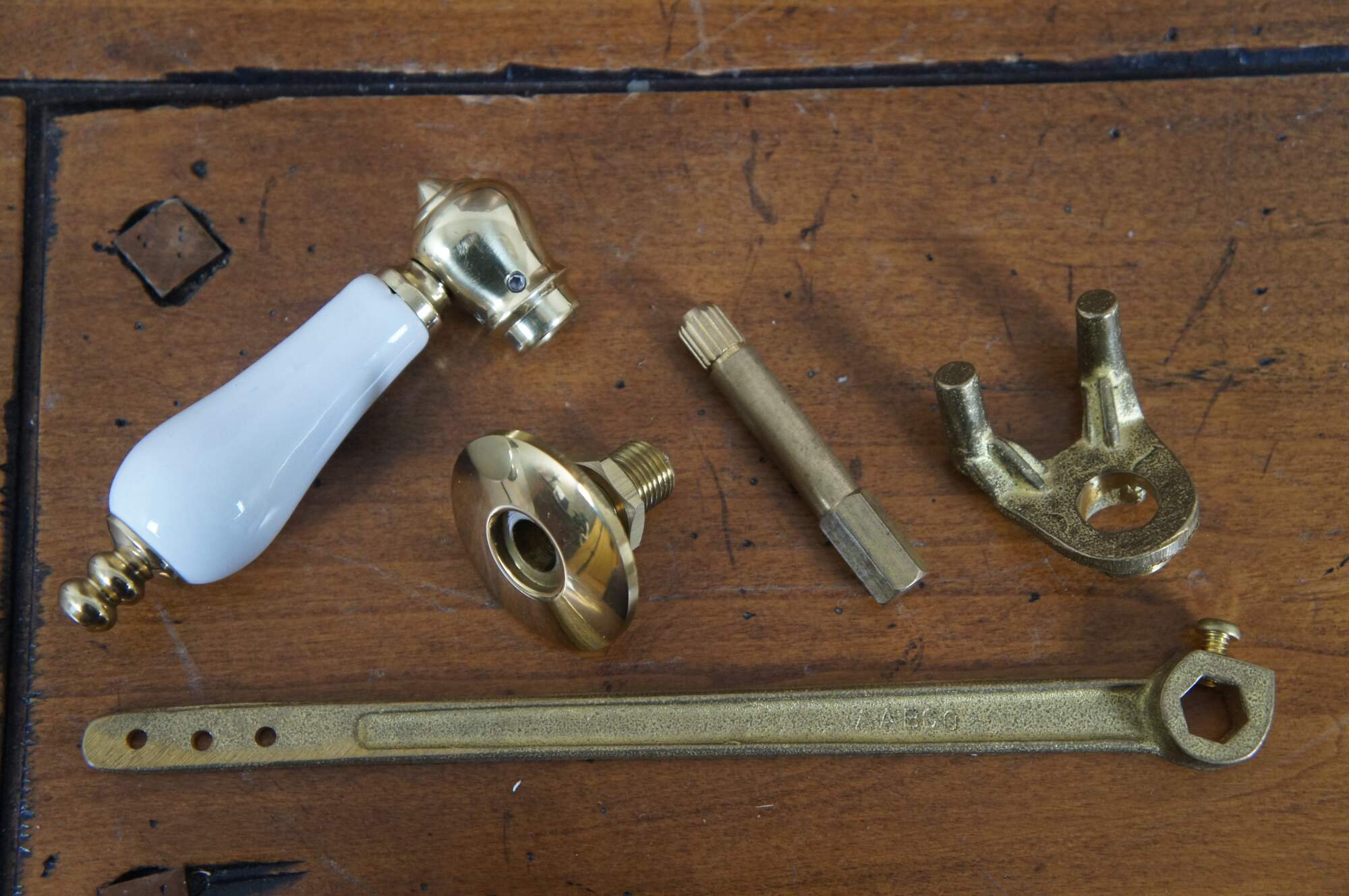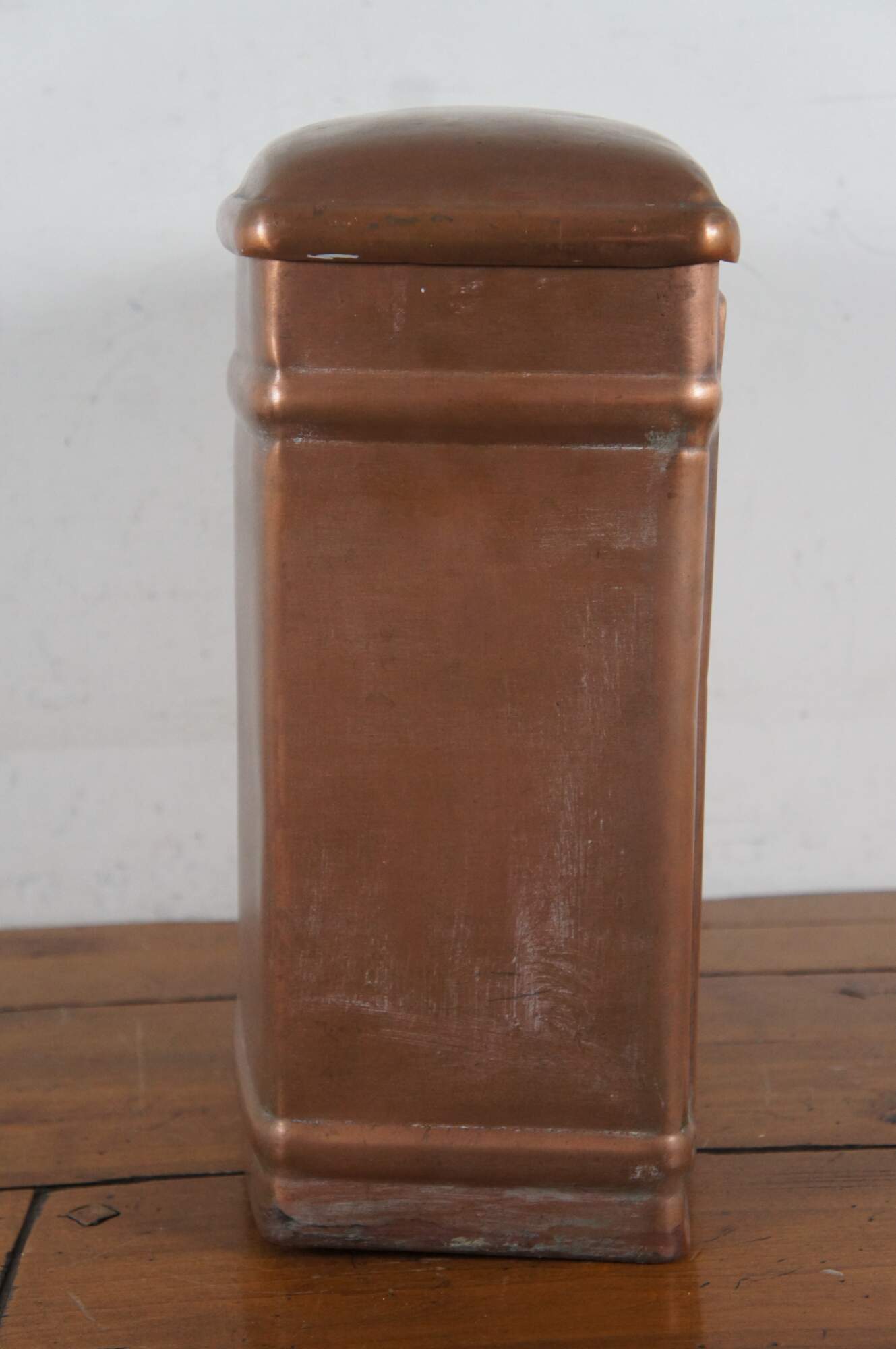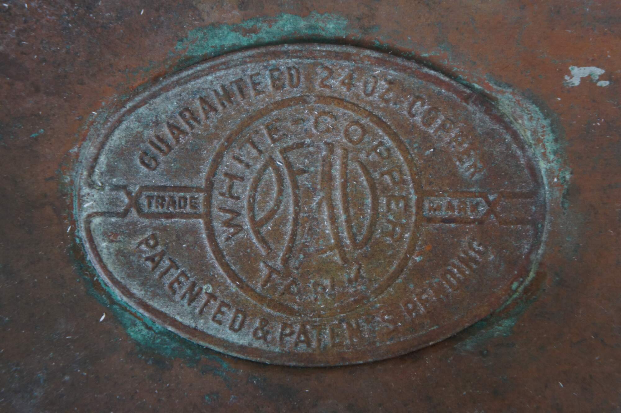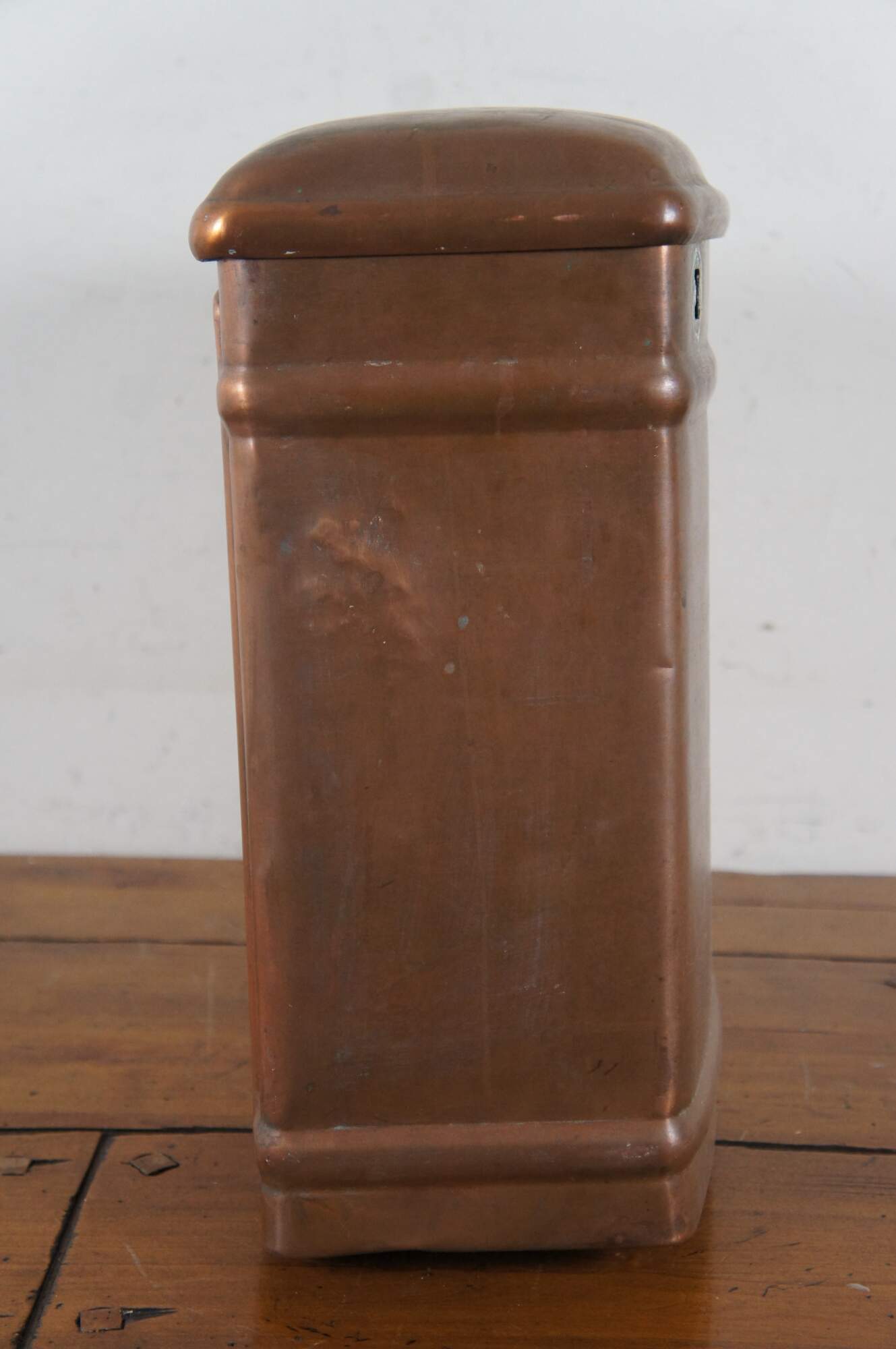 Late Victorian antique copper toilet tank by White-Copper. Made from 24 ounce copper. Includes brass / white porcelain handle / flush lever by AAB Co.