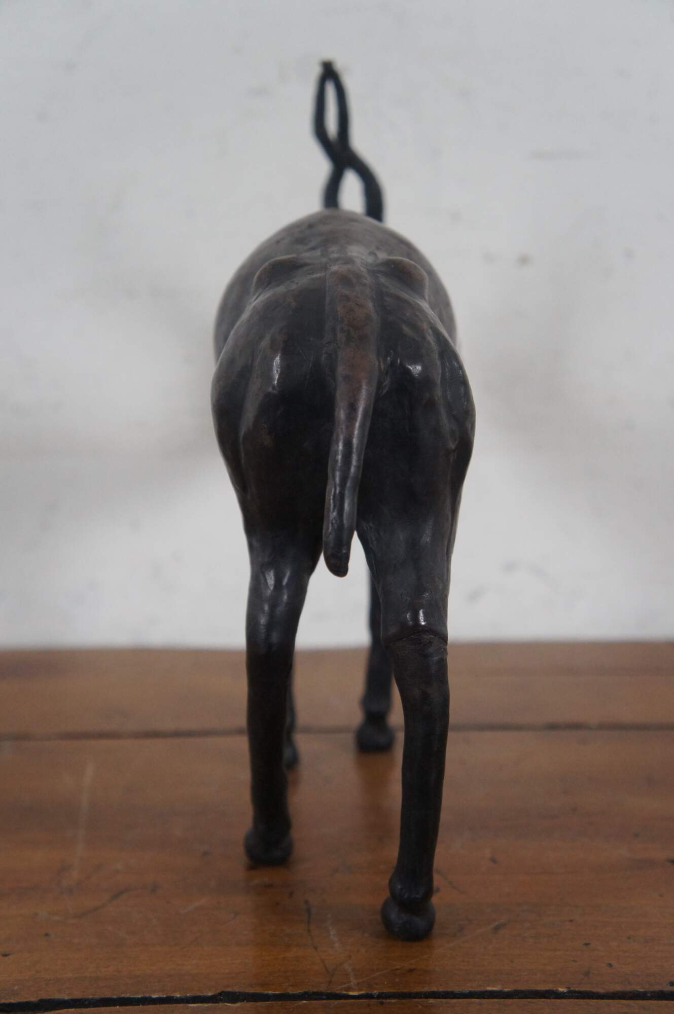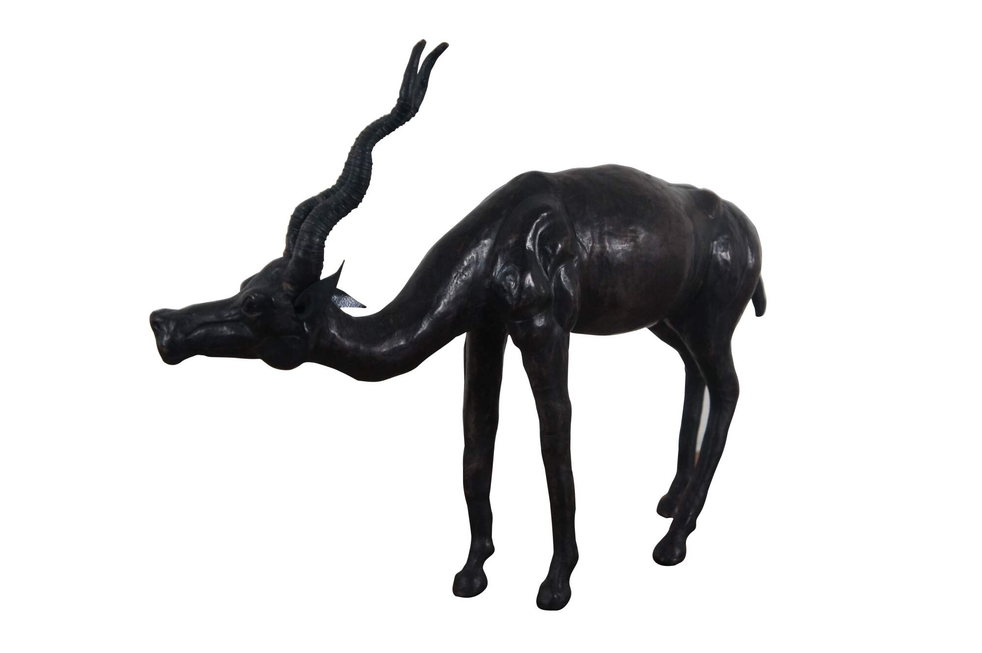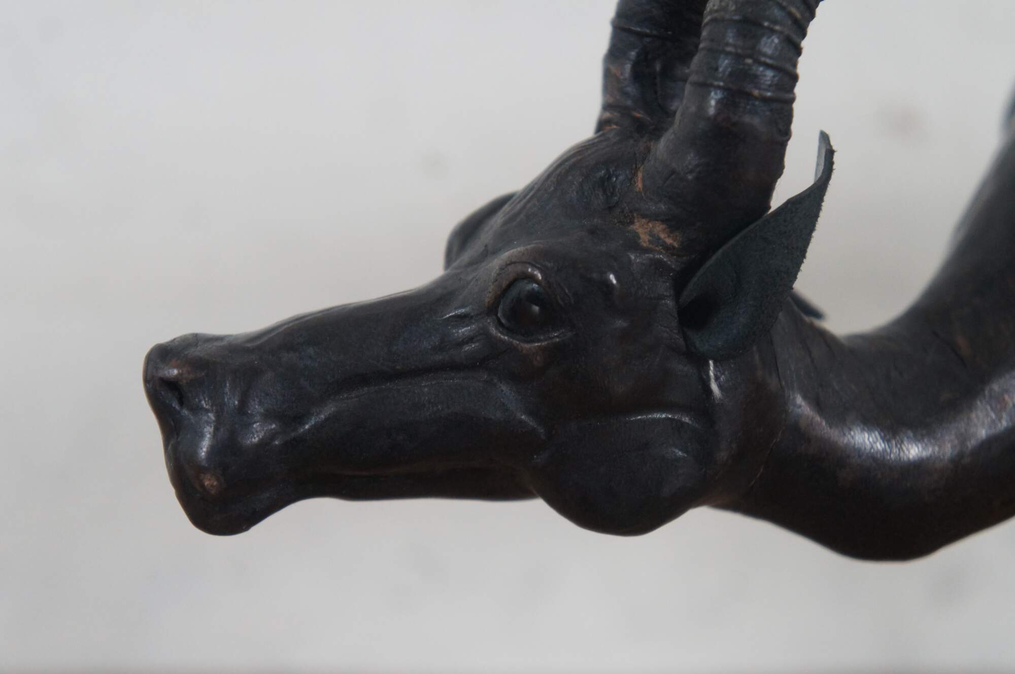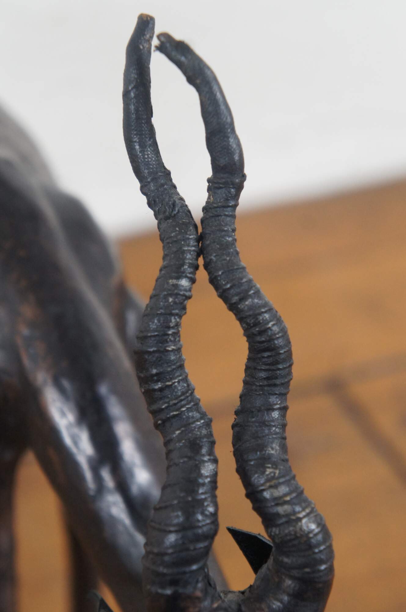 Exceptional mid 20th Century leather wrapped animal sculpture / figurine in the shape of an African antelope / Gazelle with spiral horns.