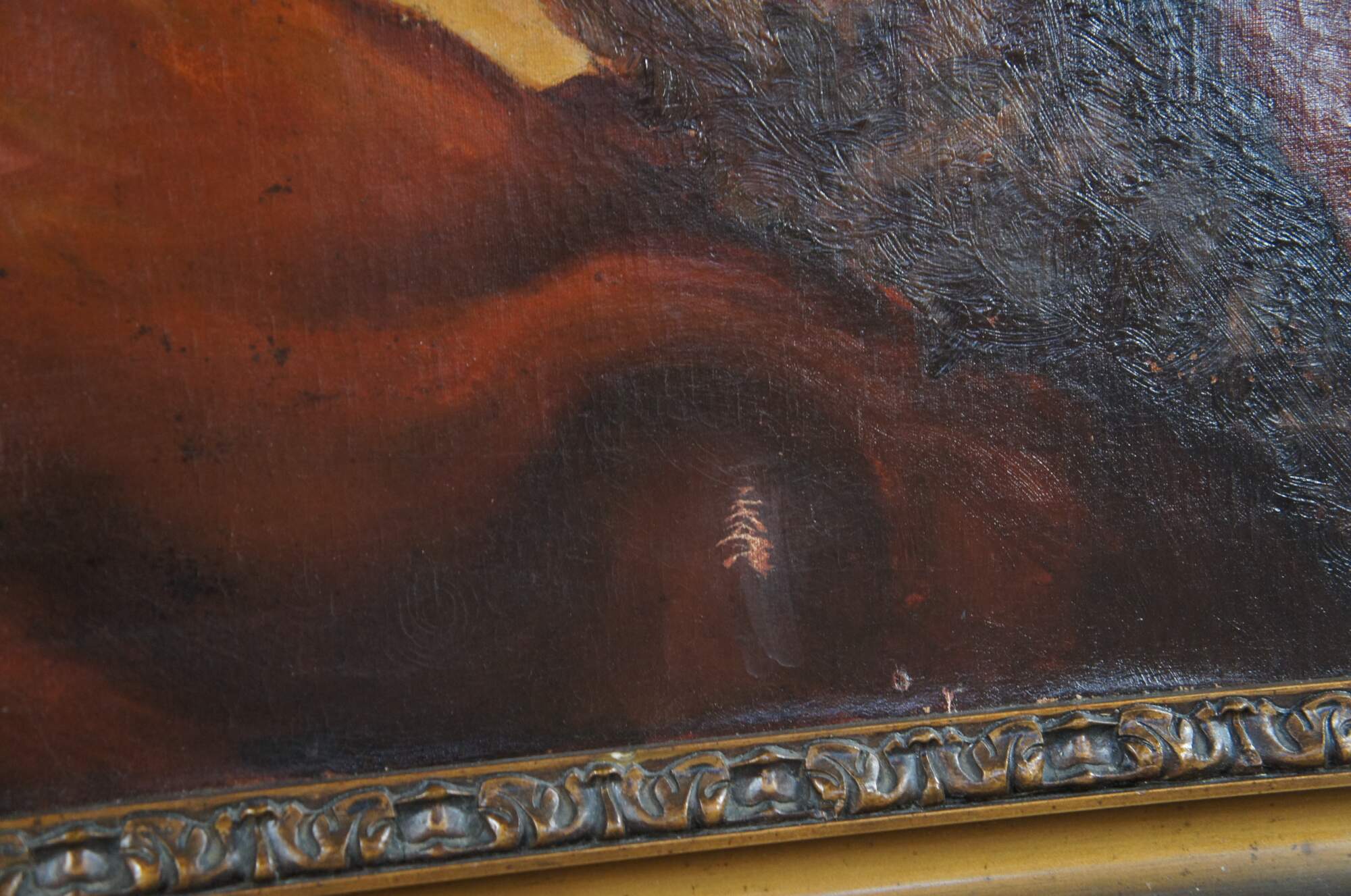 Good Antique Condition; some crazing to the canvas from age. Past repair along back side. Frame has some edge wear and light chipping to the gesso.