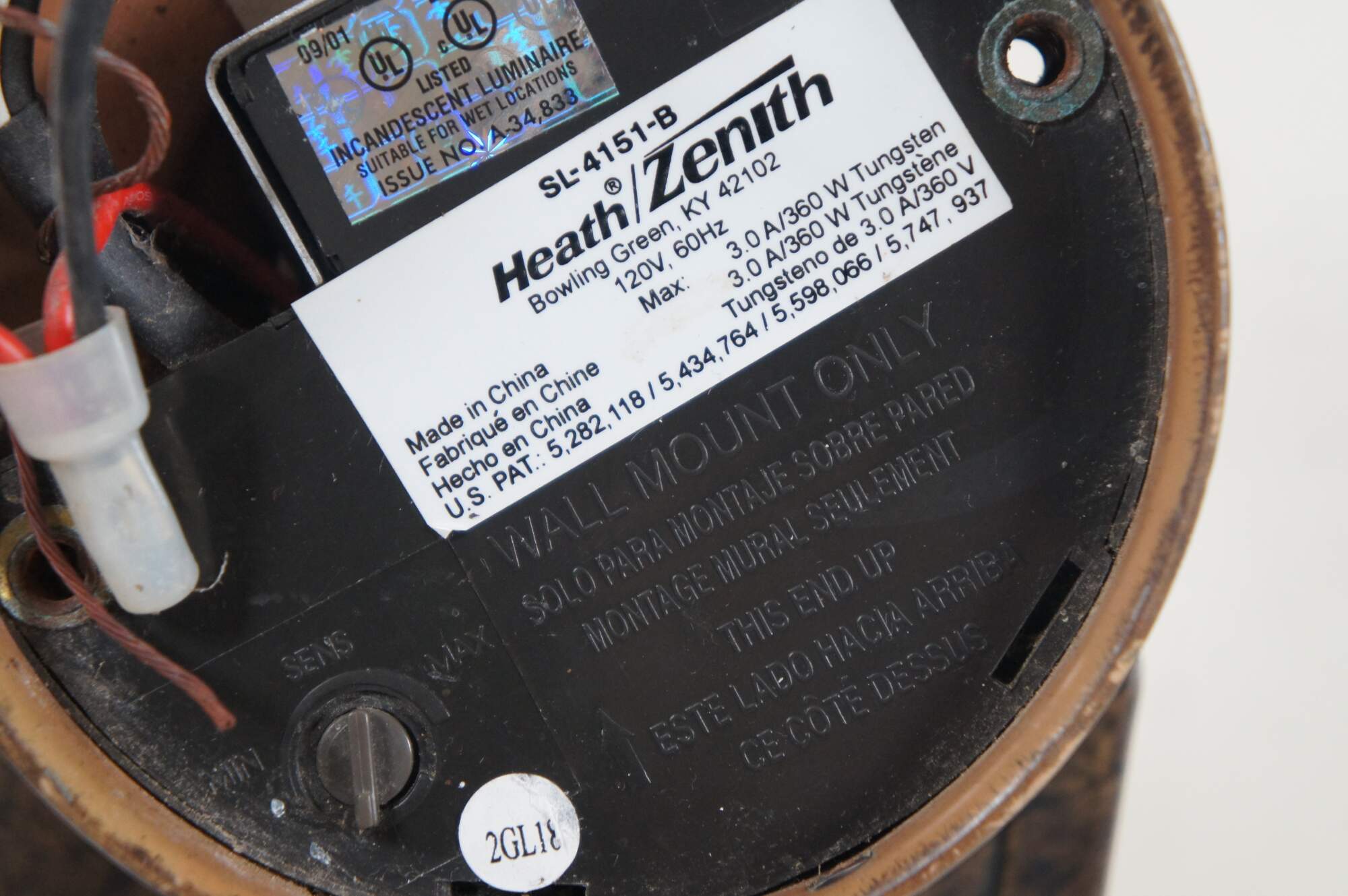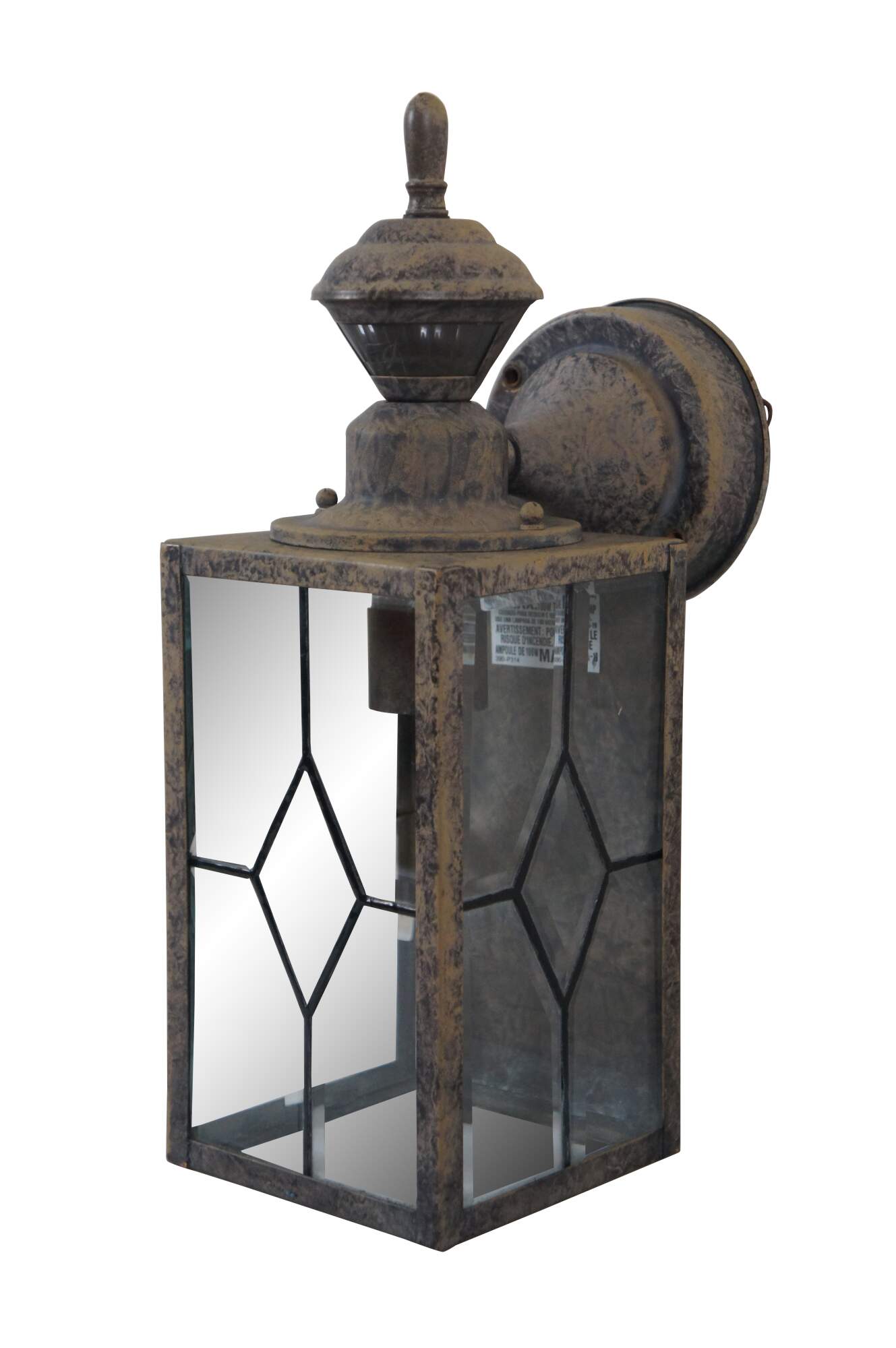 Heath Zenith SL-4151-B Single Light High Outdoor Wall Sconce - Motion Sensor Activated. Diamond pane faux leaded beveled glass panels in a mottled black and beige painted metal housing.