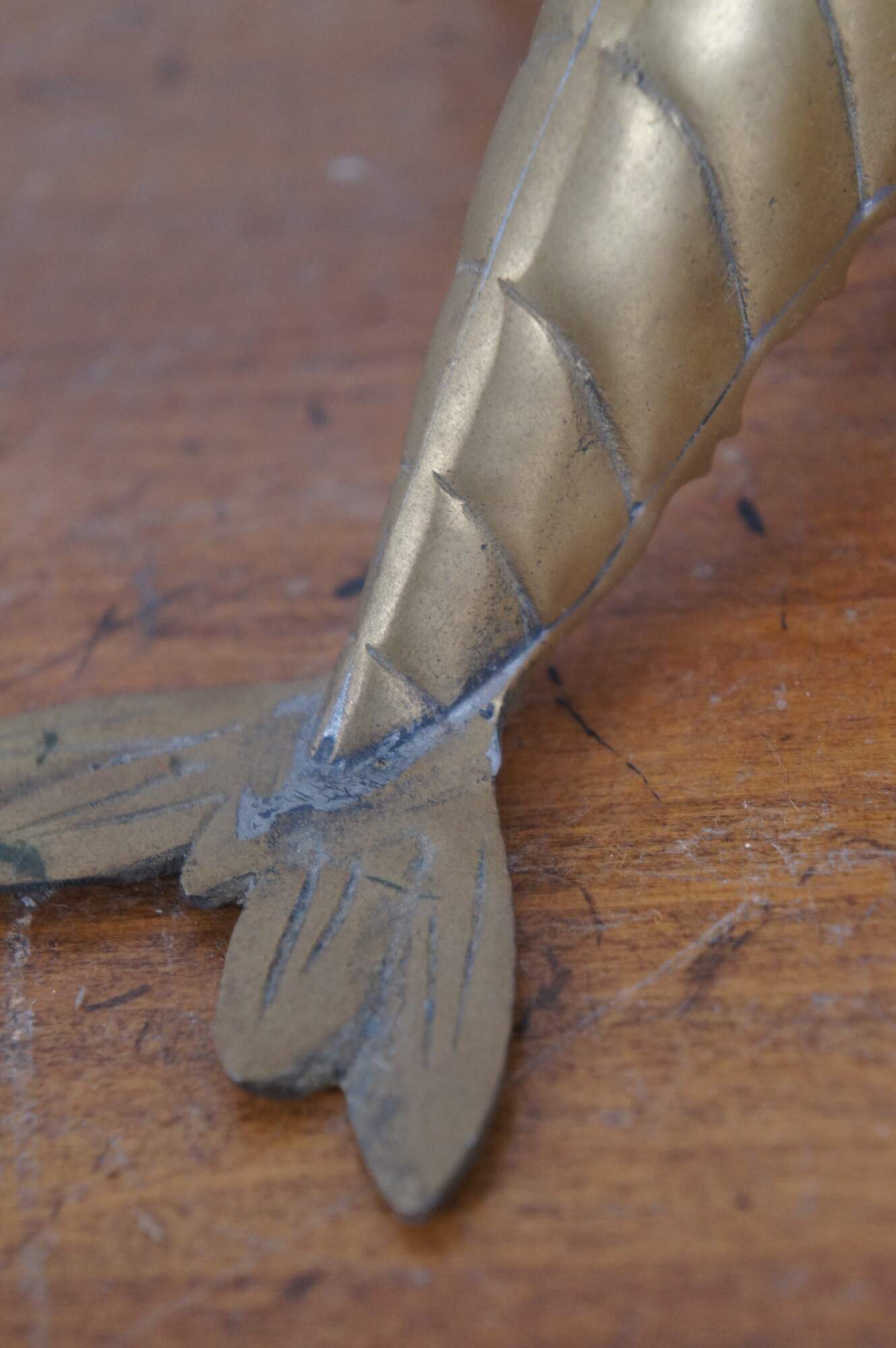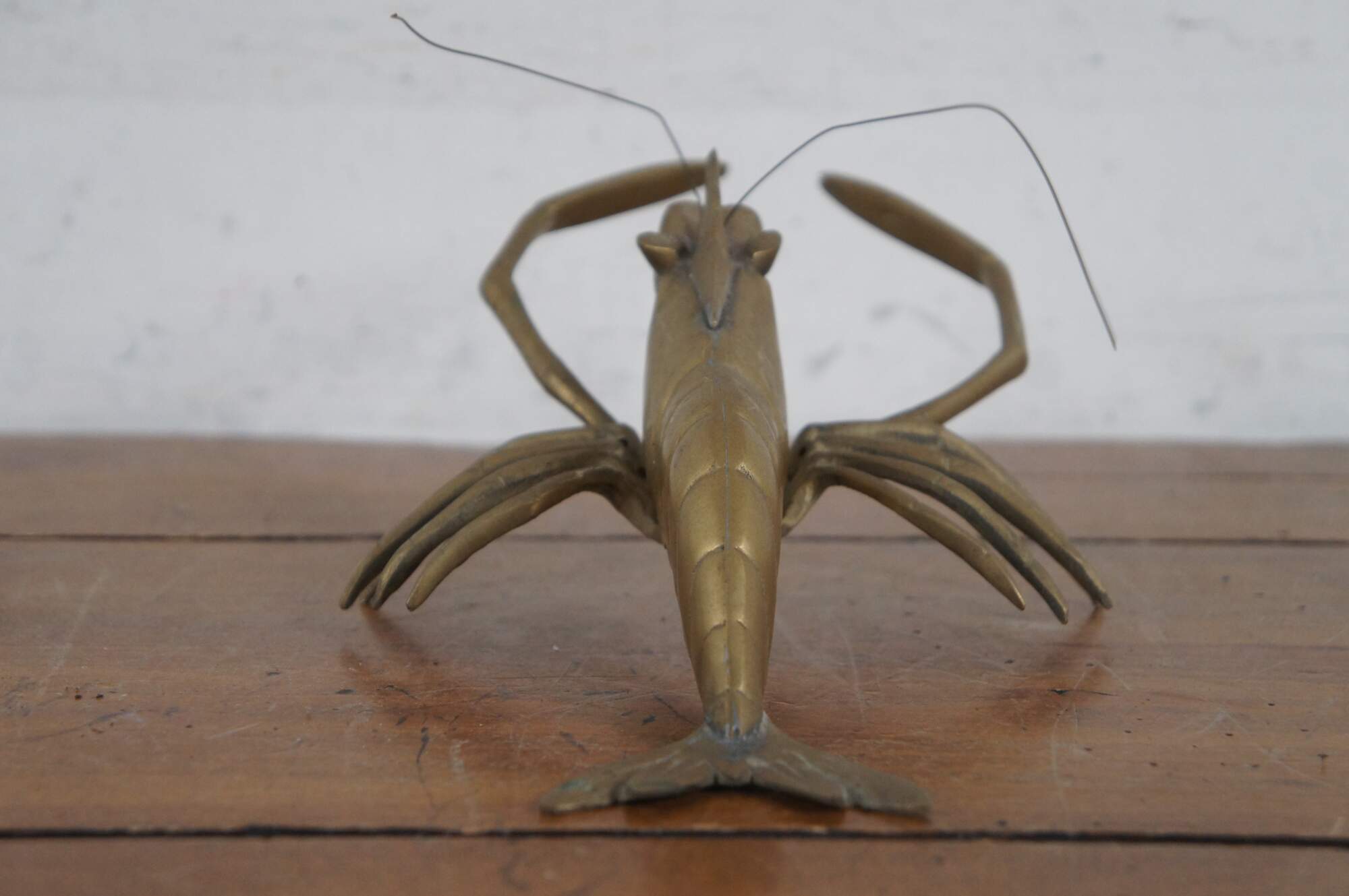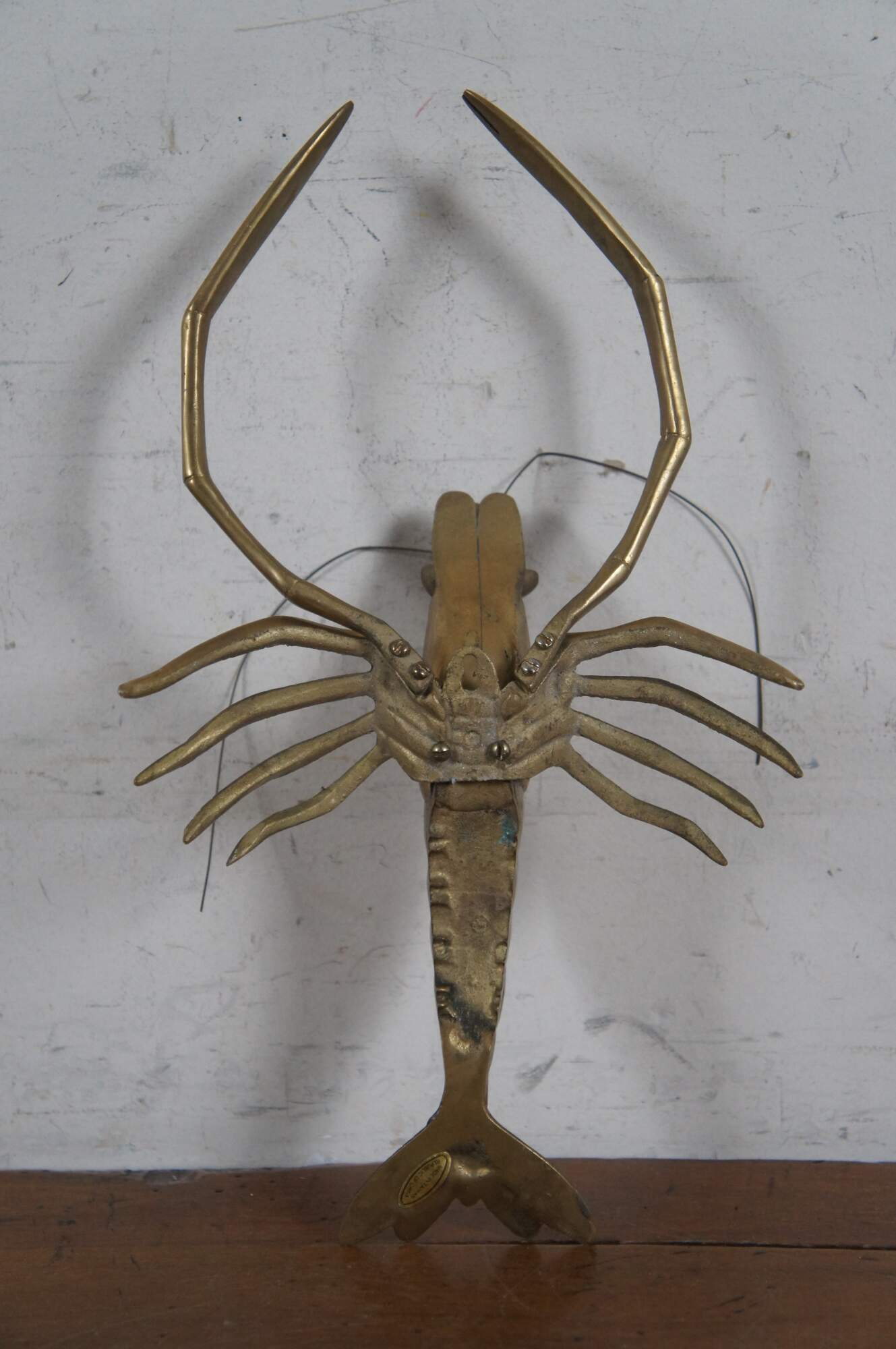 Vintage mid 20th century brass wall hanging sculpture / figurine in the shape of a crawfish / crayfish/ prawn. Made in Taiwan - Republic of China.