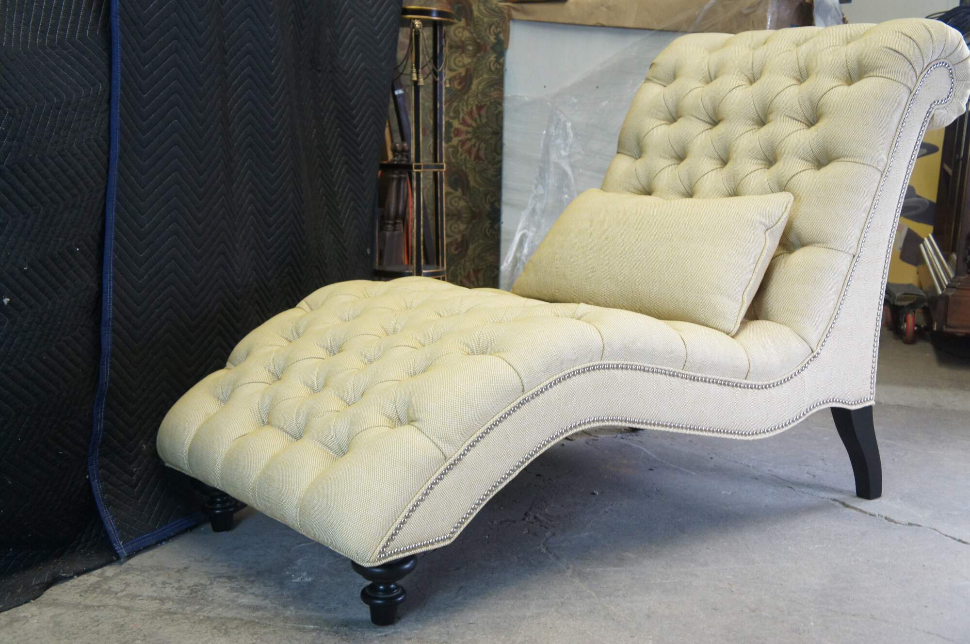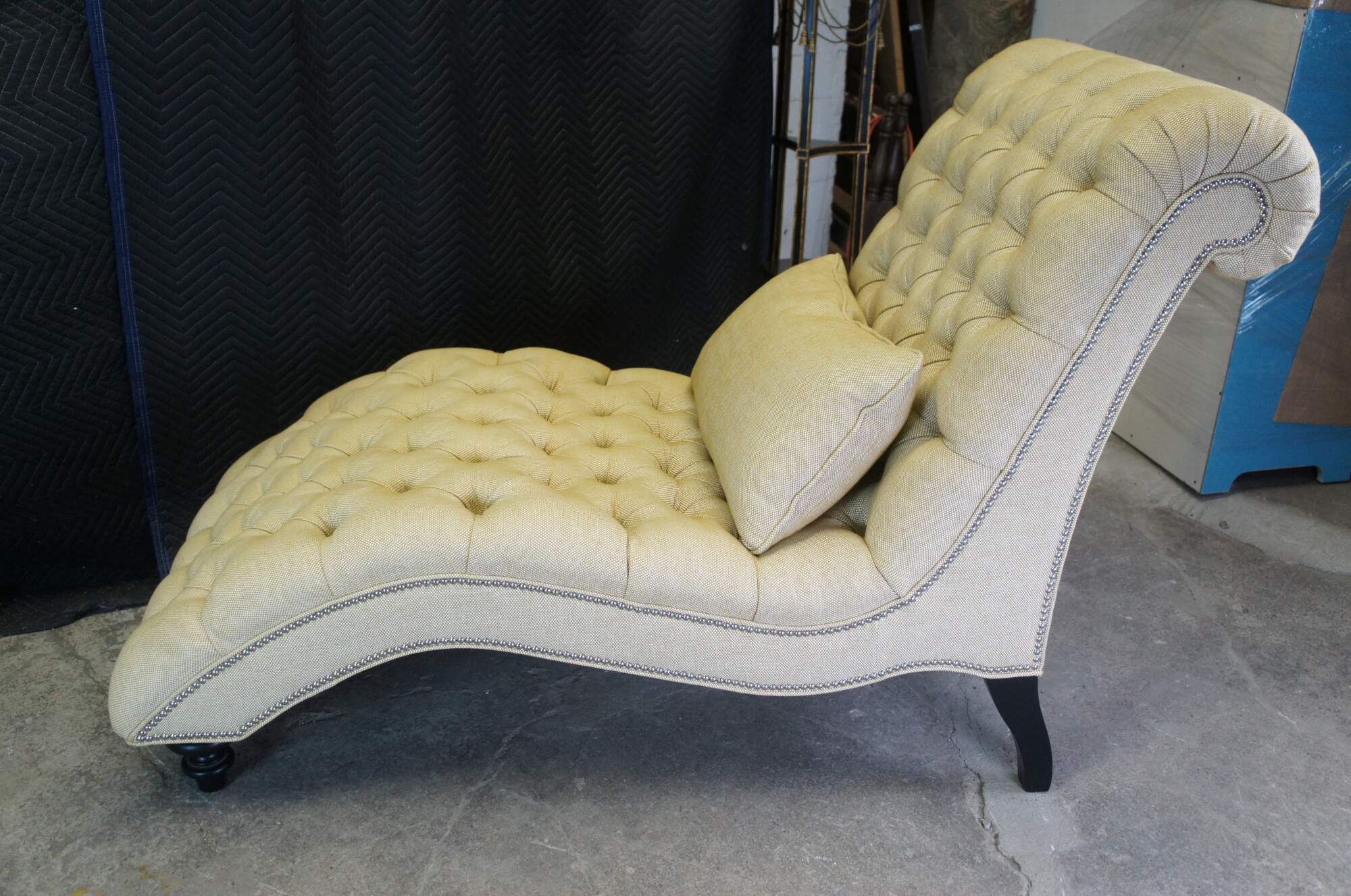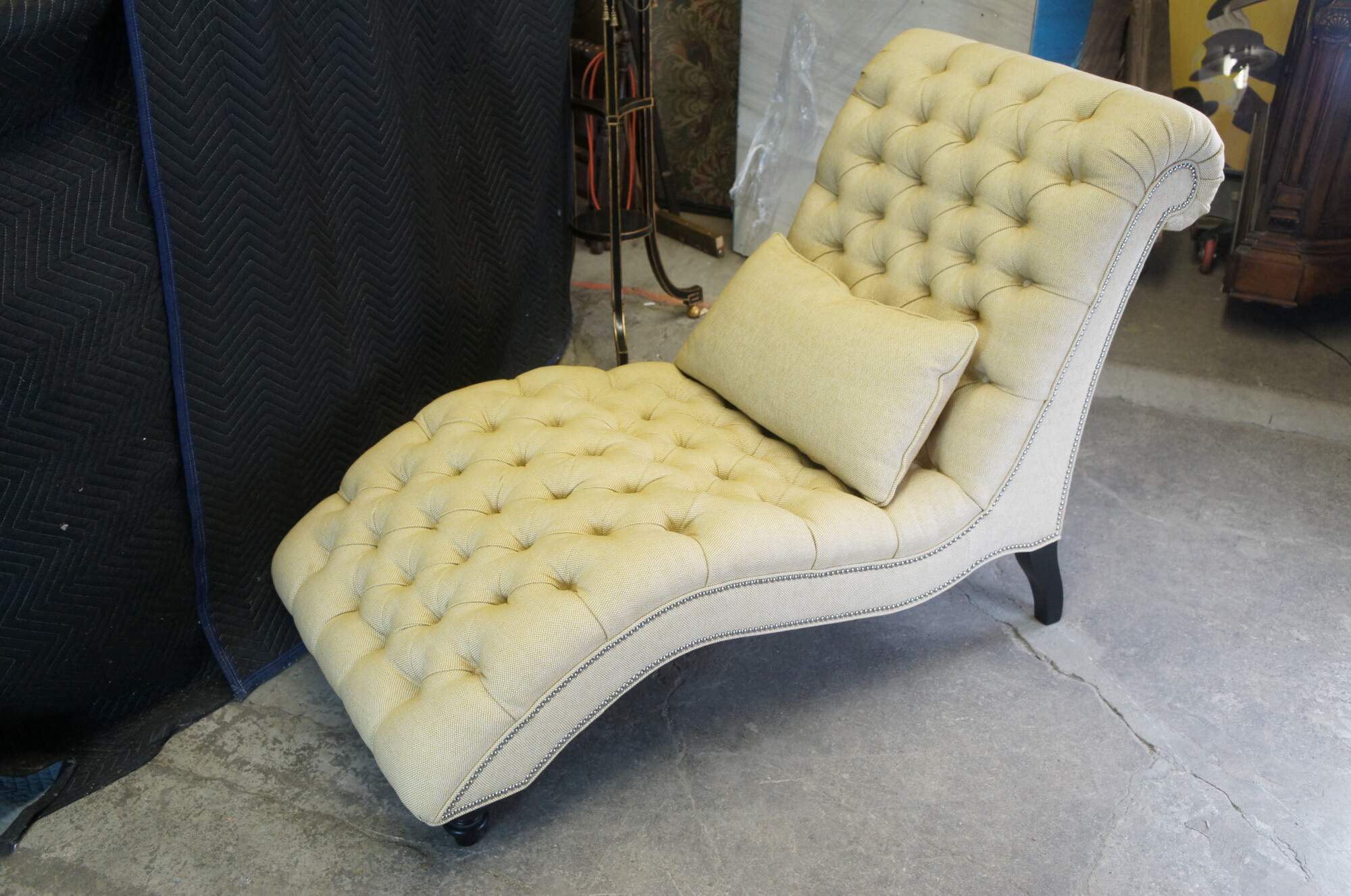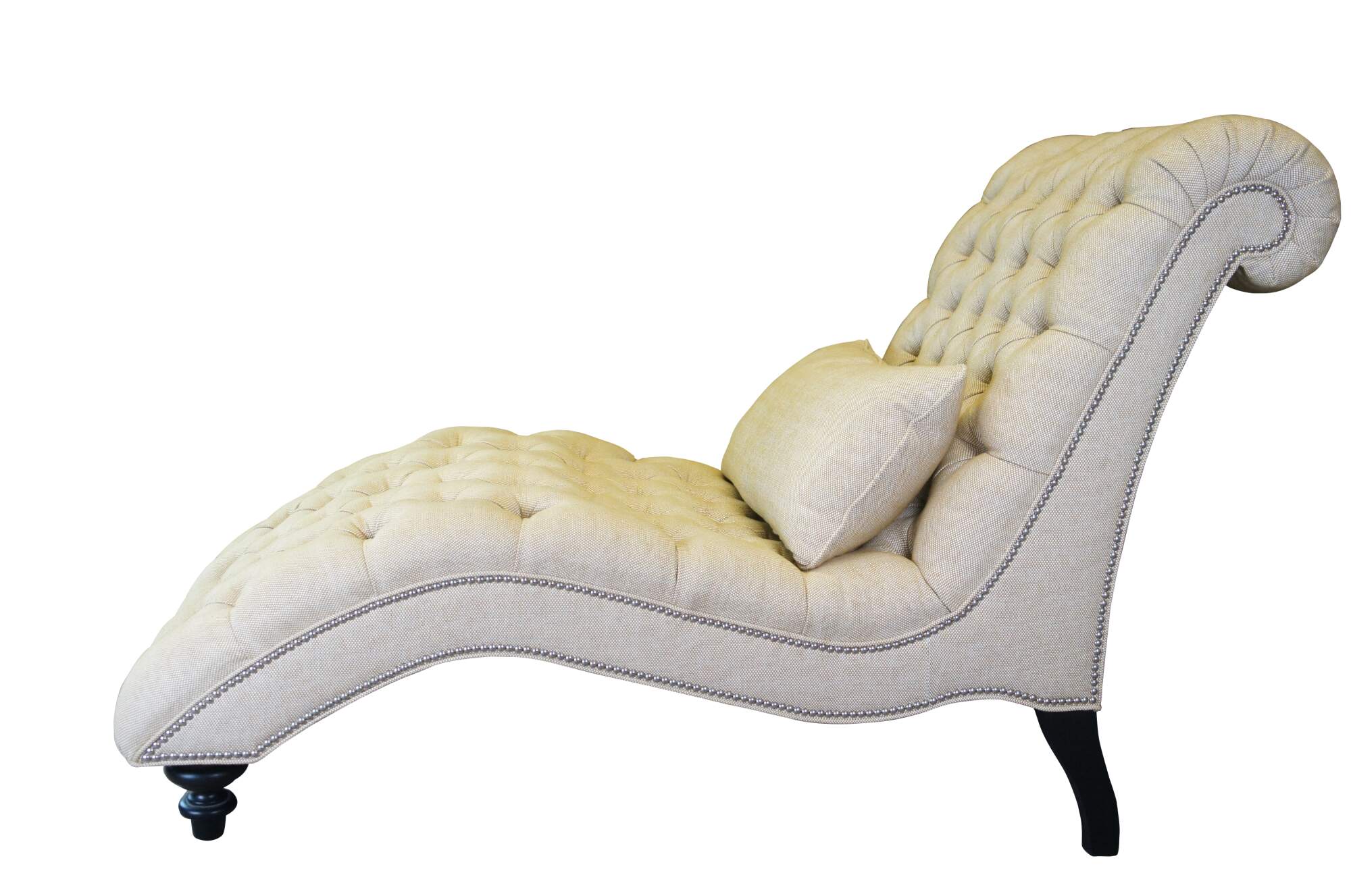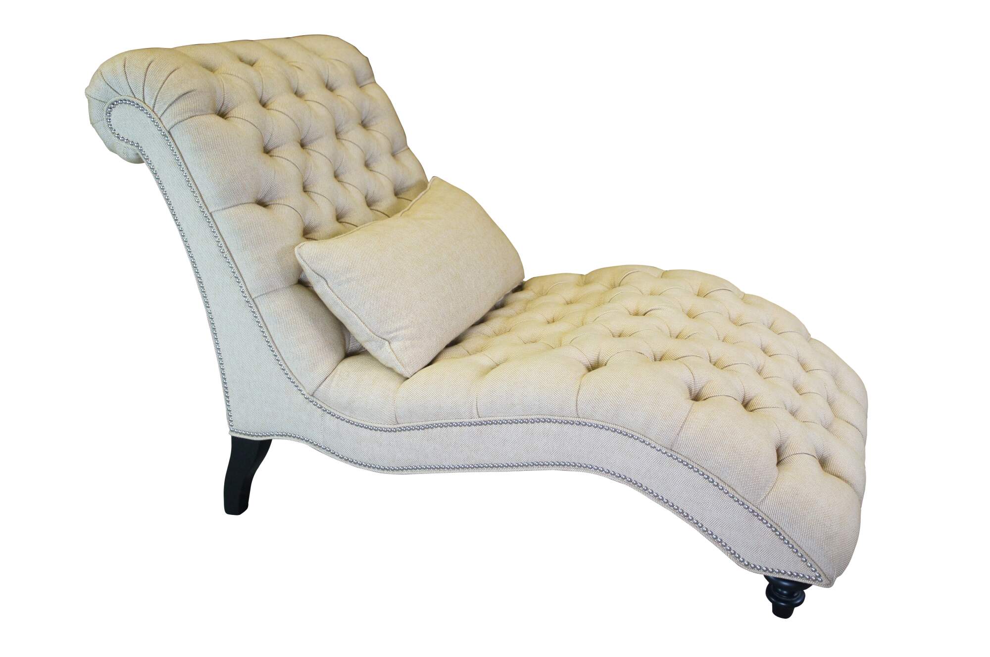 Lexington Upholstery by Lexington Althena Chaise Lounge, ITEM #: 7802-75. Features a traditional form with rolled back, tufted seat and silver nailhead trim over turned legs. Upholstered in beige with 27 x 15" Lux Down Pillow.