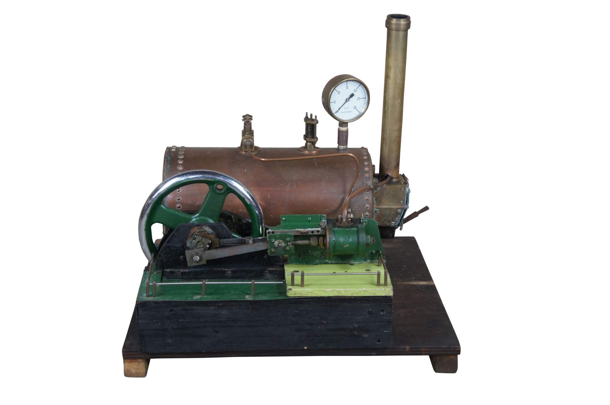 Antique 19th century Schaeffer & Budenberg stationary steam engine model. Made of cast iron featuring copper boiler
