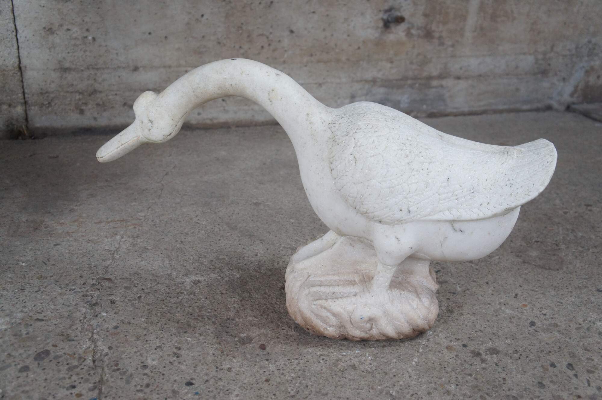 Heavy antique carved marble goose garden sculpture. Made in Italy circa 1930s.