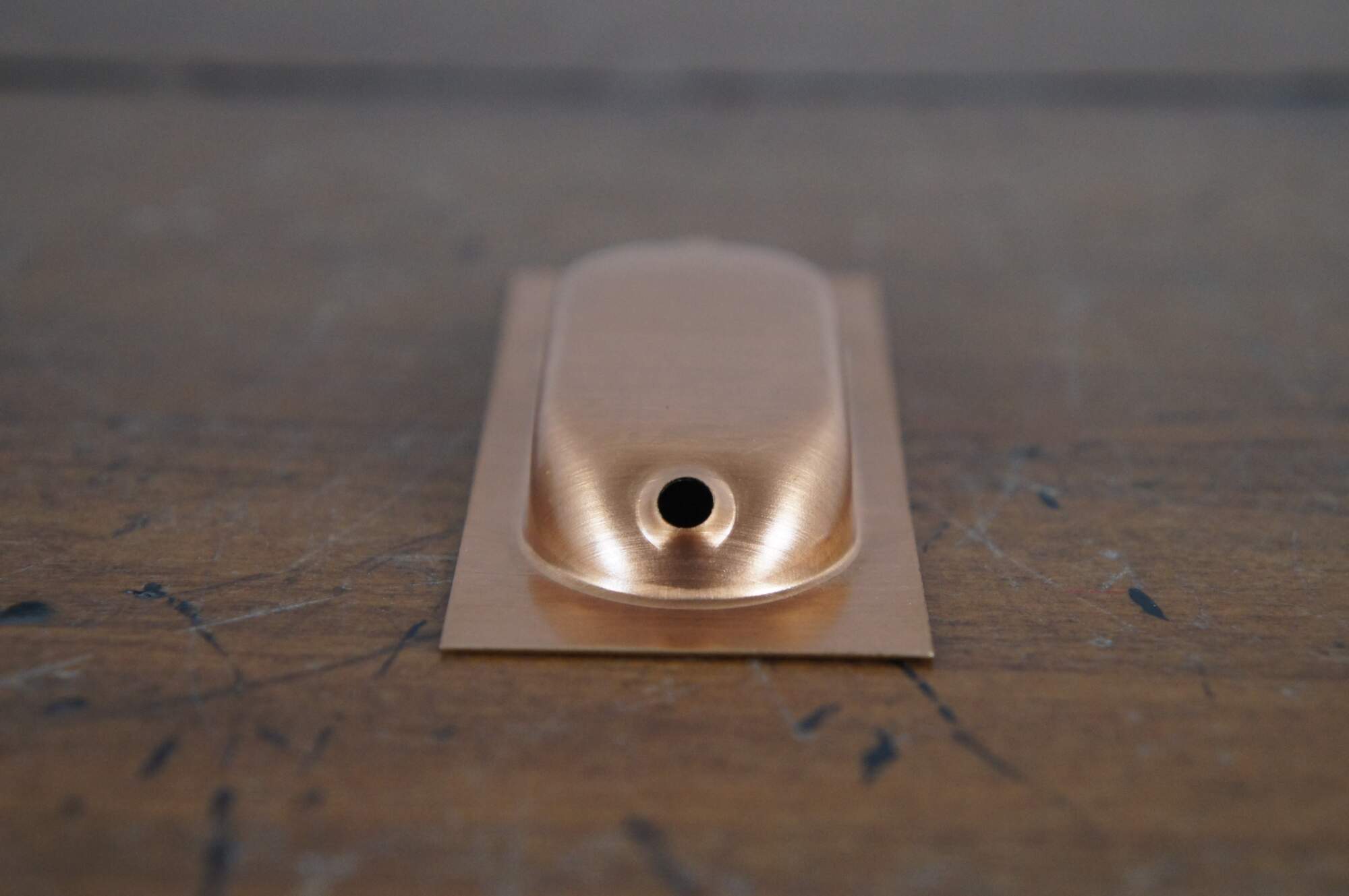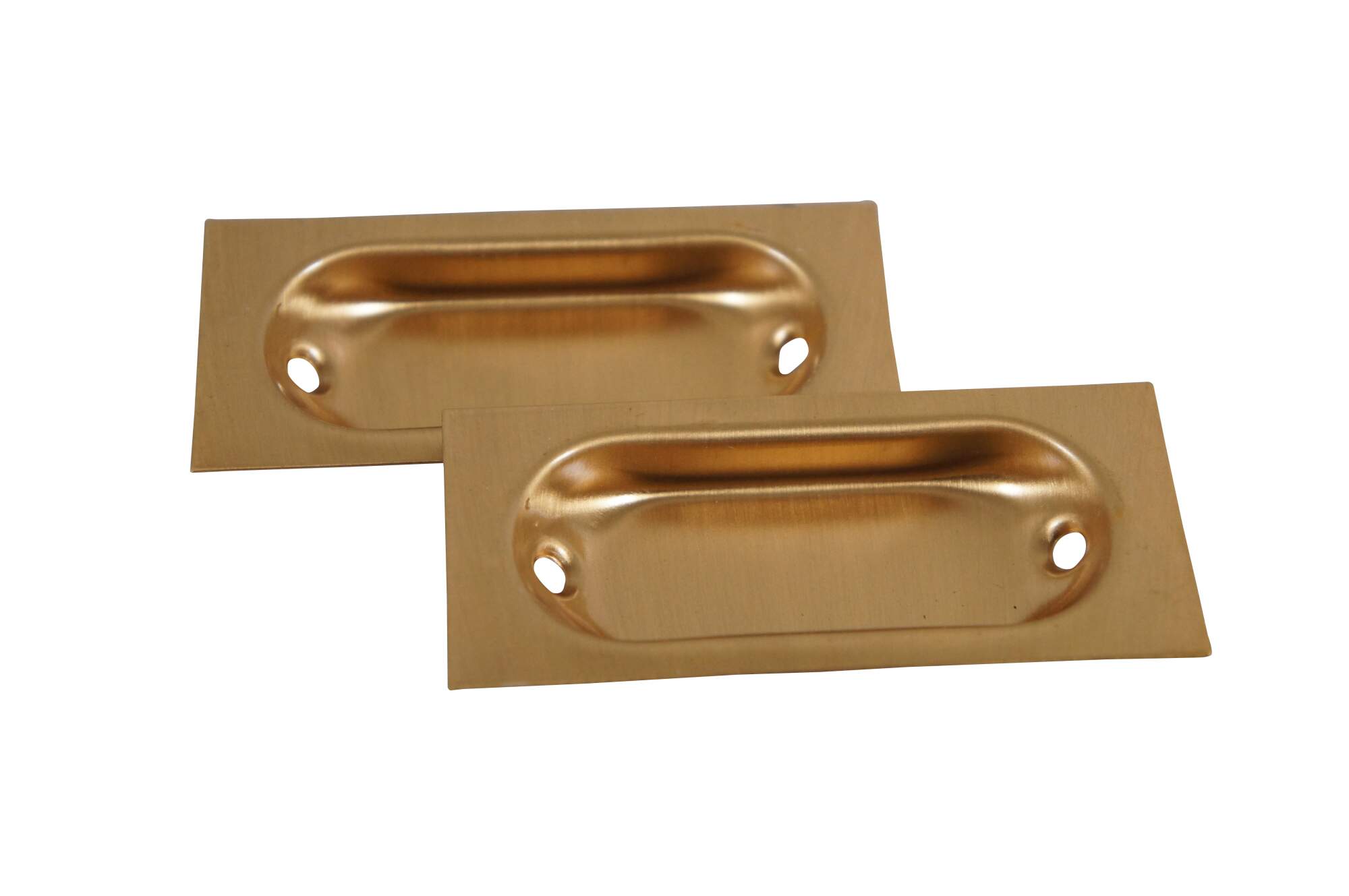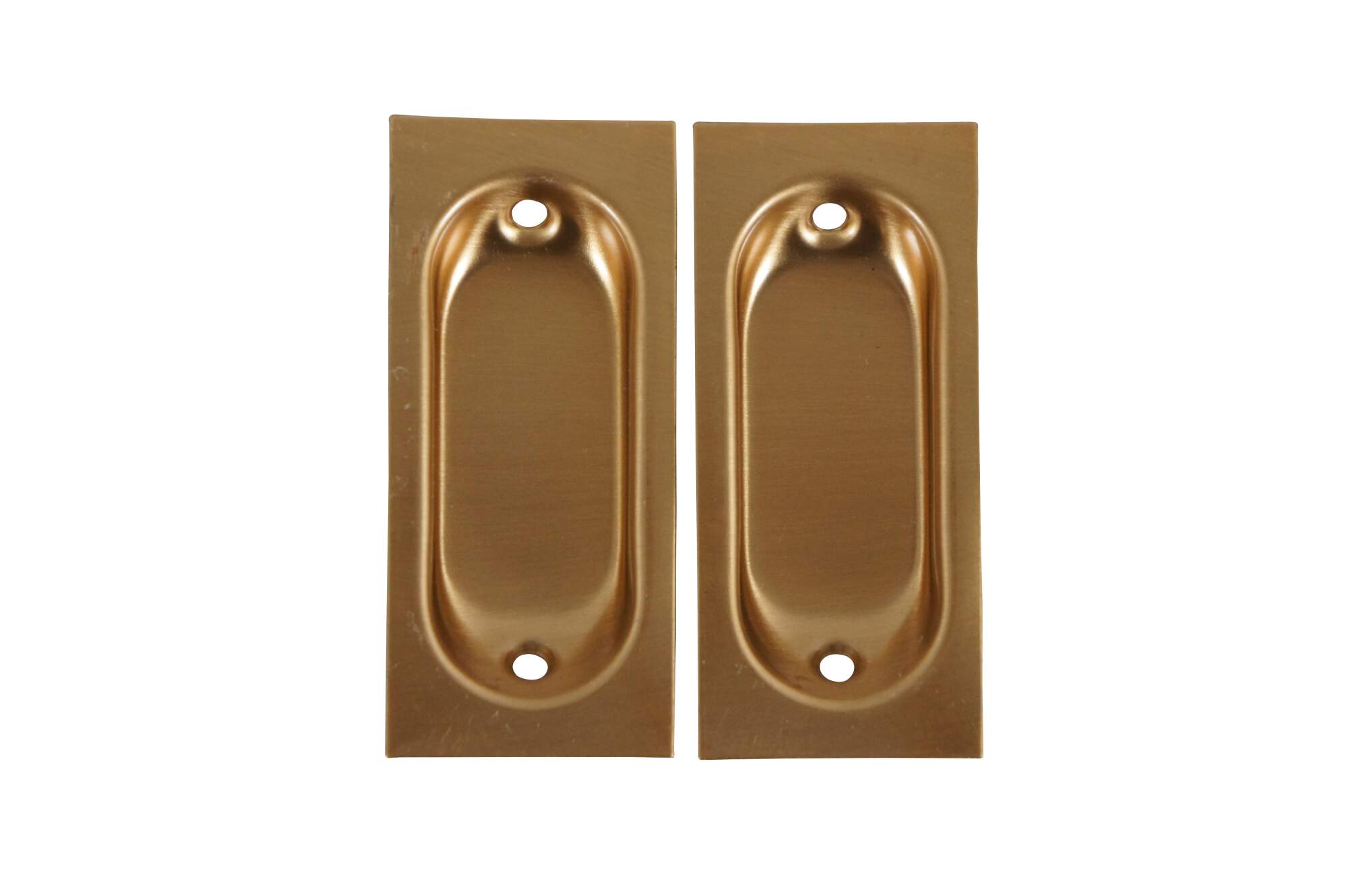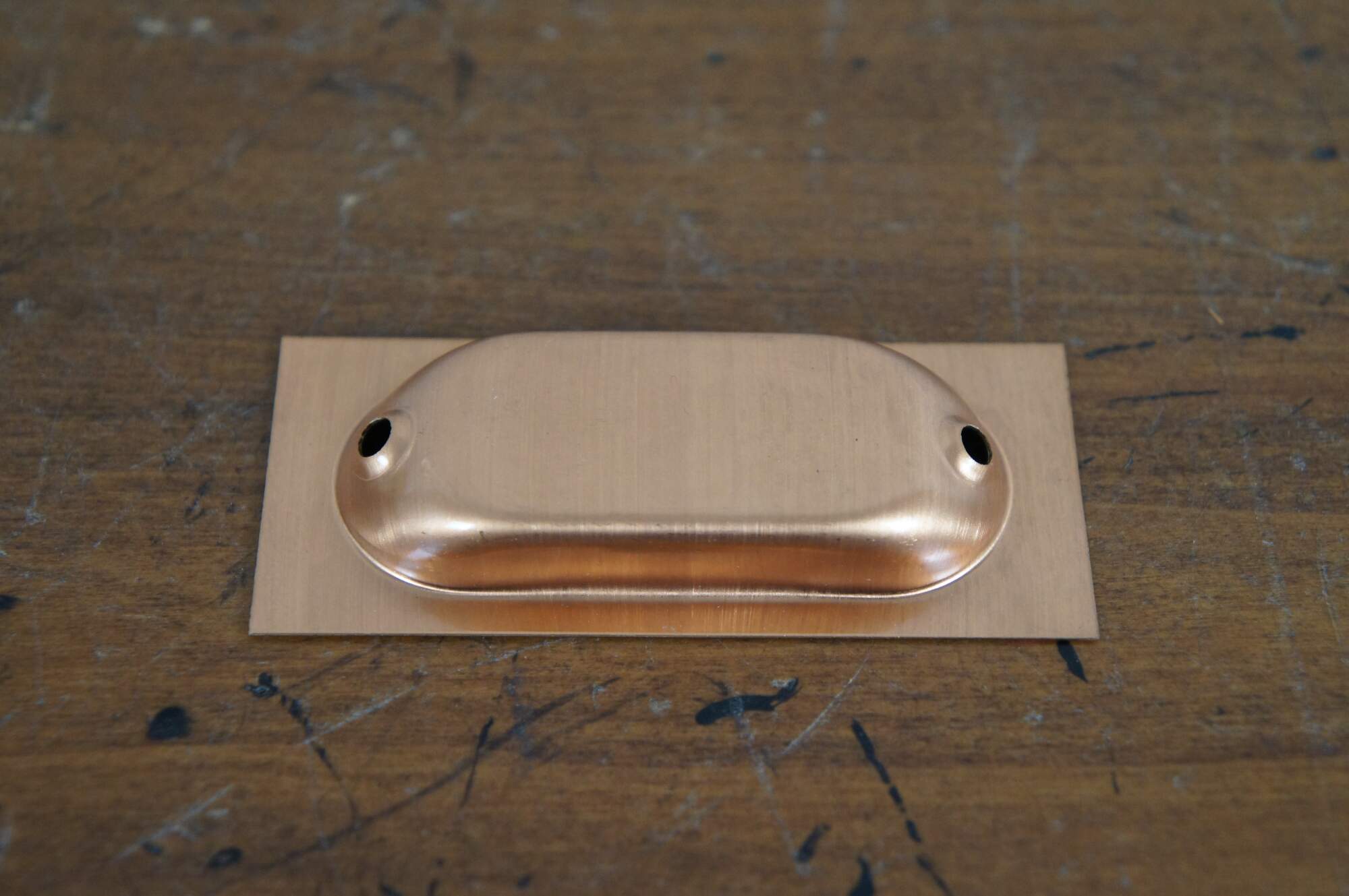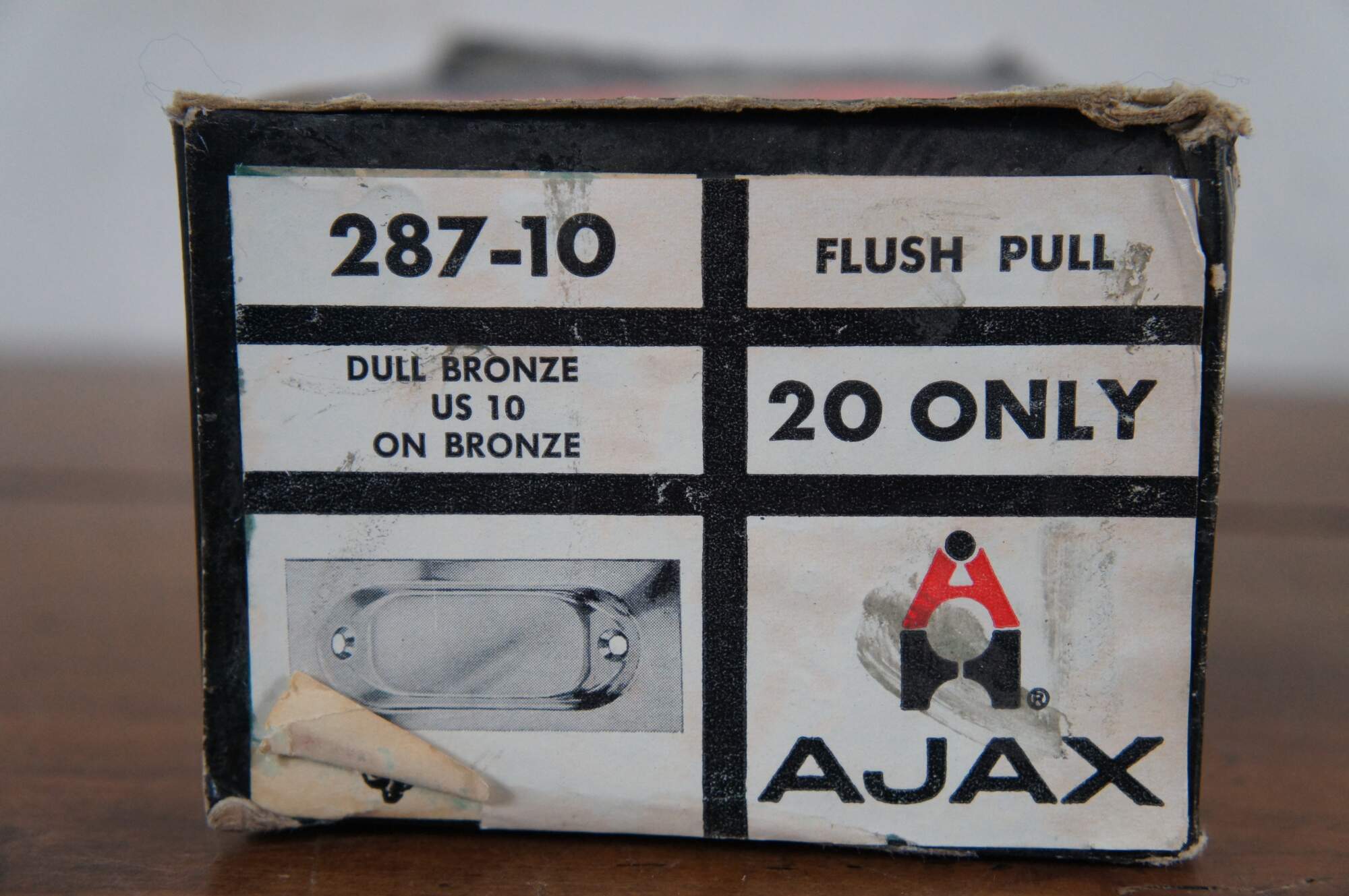 9 Available - Mid to late 20th century old-stock die cast drawer / cabinet pulls. Ajax, item number 287-10 Flush Pull, Dull Bronze. Packaged in sets of two. Simple rectangular plate with recessed lozenge shape.
