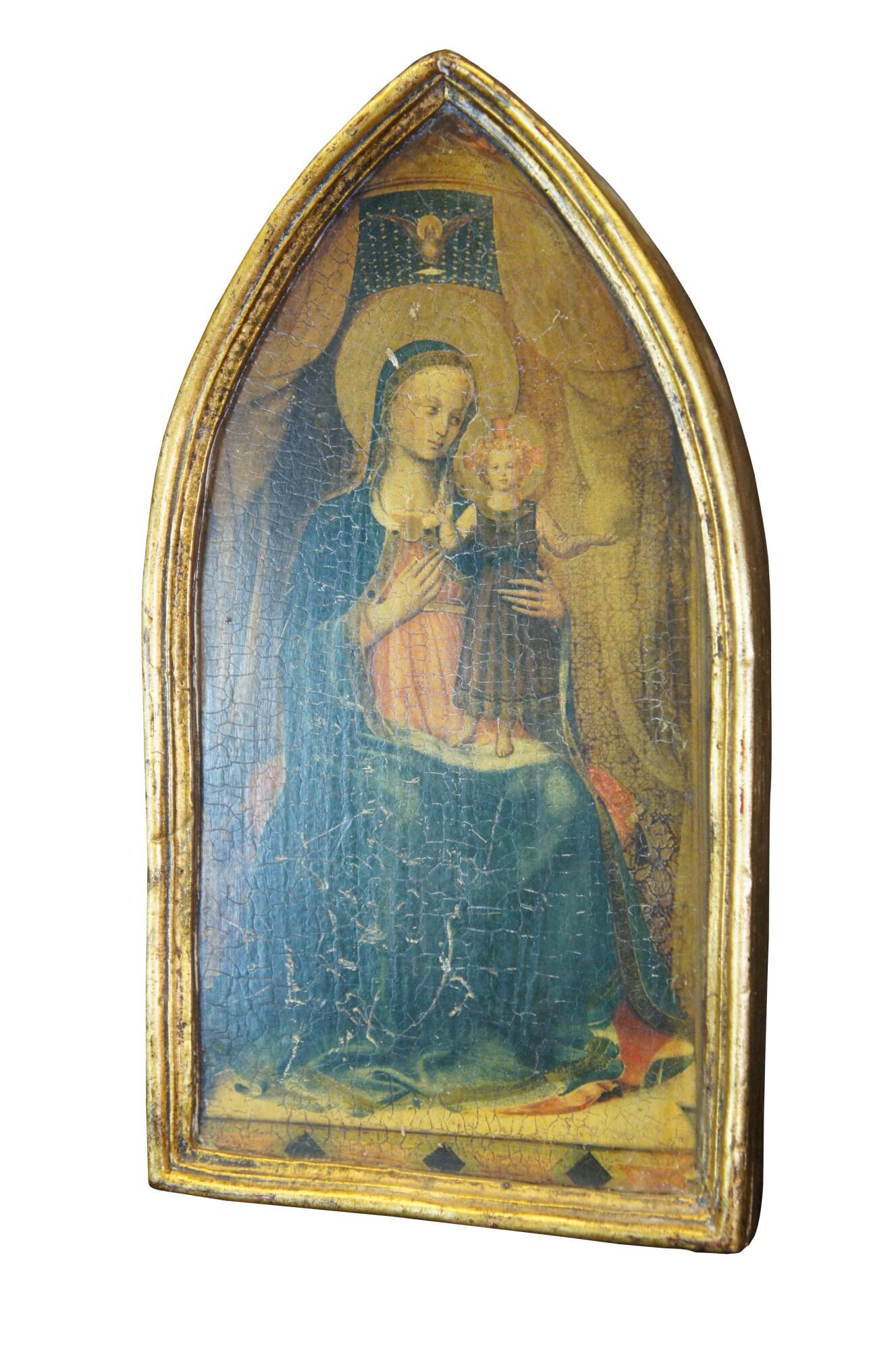 Italian (catholic) Icon of Madonna & Child After Fra Angelico's 'Linaioli Tabernacle'. Painted on board and marked along verso.